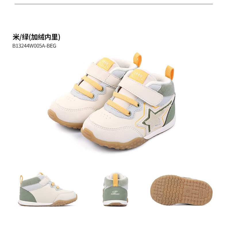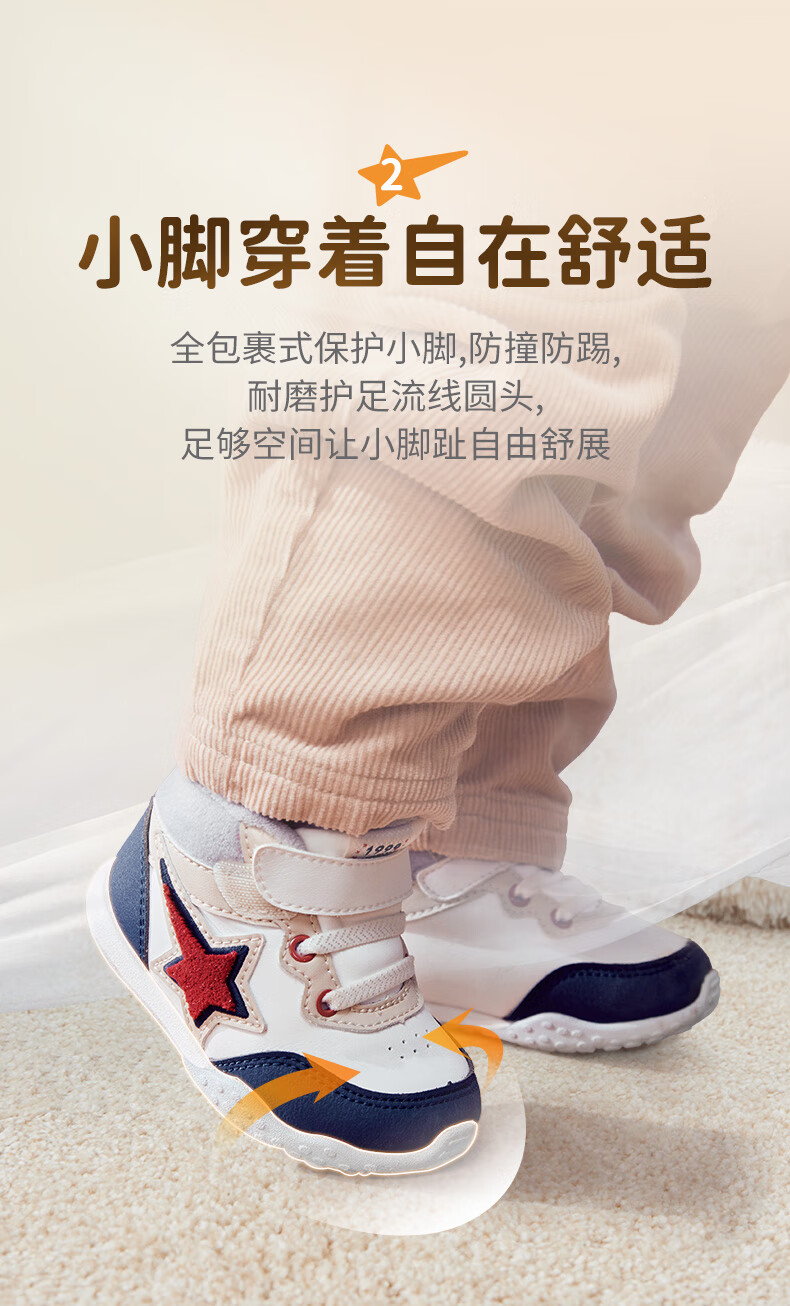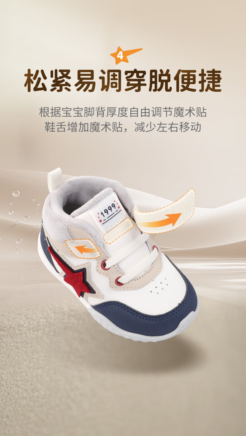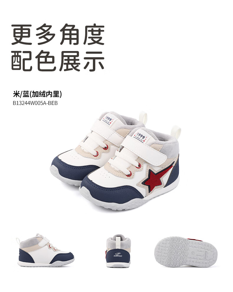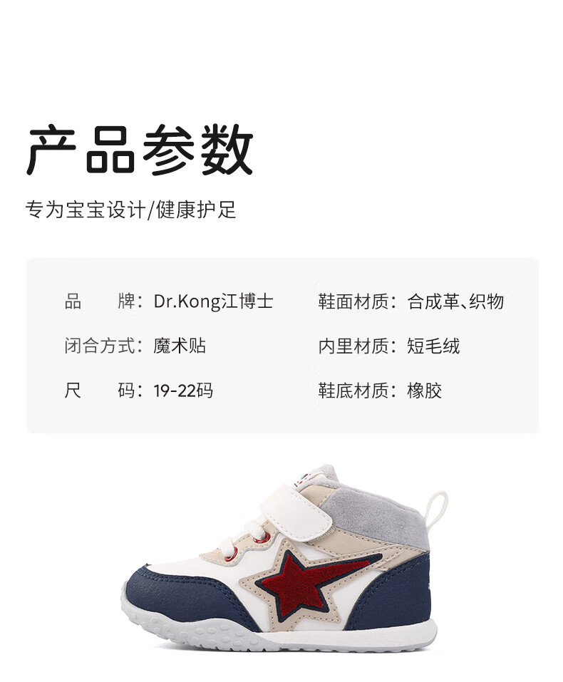 江博士冬季男女儿童魔术贴步前鞋 加绒保暖拼色儿童学步健康鞋 米/蓝(加绒内里) 22 脚长约12.7-13.3