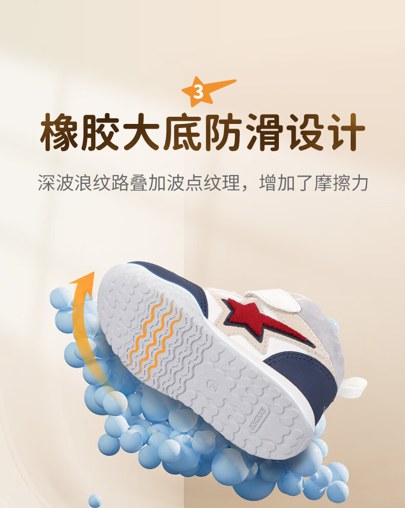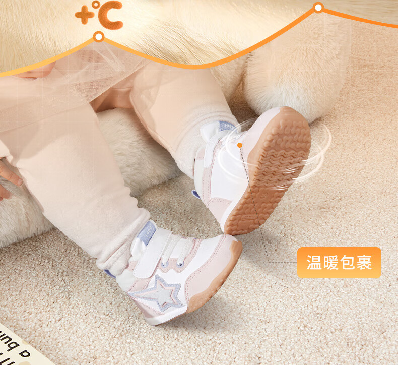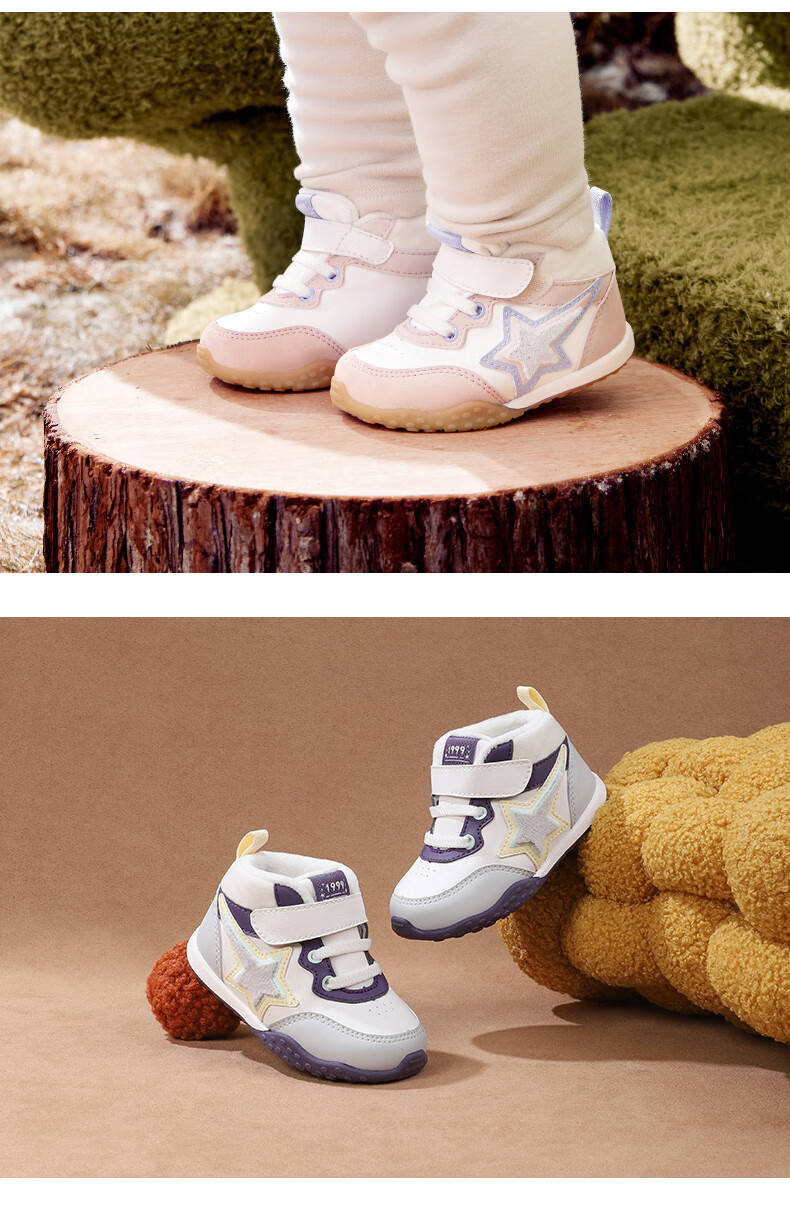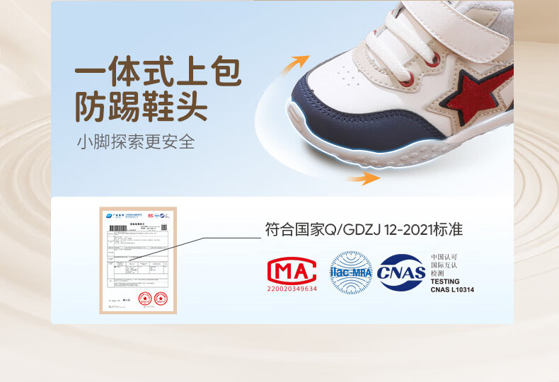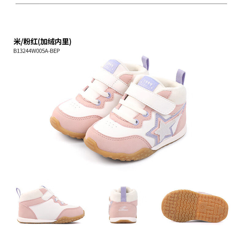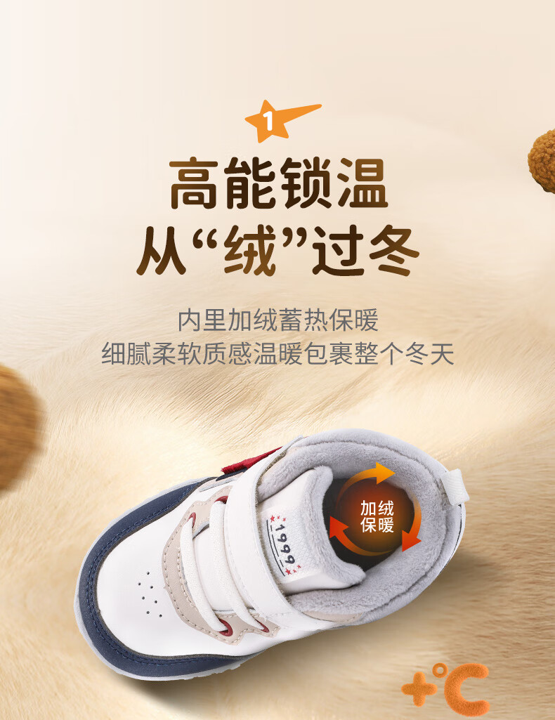 江博士冬季男女儿童魔术贴步前鞋 加绒保暖拼色儿童学步健康鞋 米/蓝(加绒内里) 22 脚长约12.7-13.3