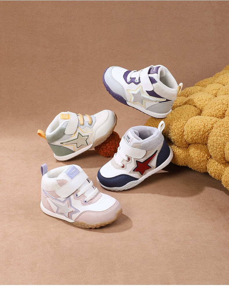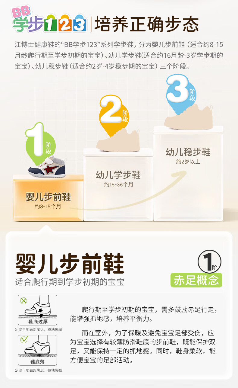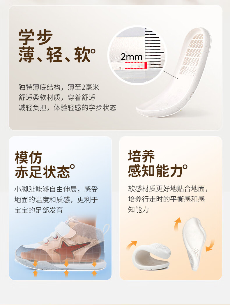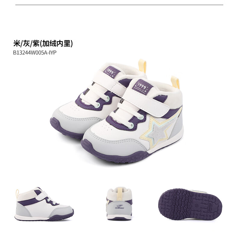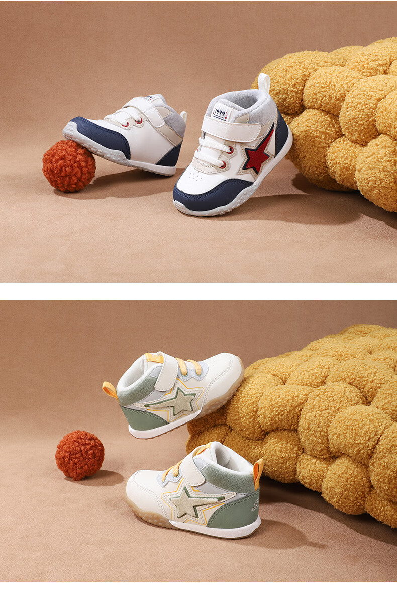 江博士冬季男女儿童魔术贴步前鞋 加绒保暖拼色儿童学步健康鞋 米/蓝(加绒内里) 22 脚长约12.7-13.3