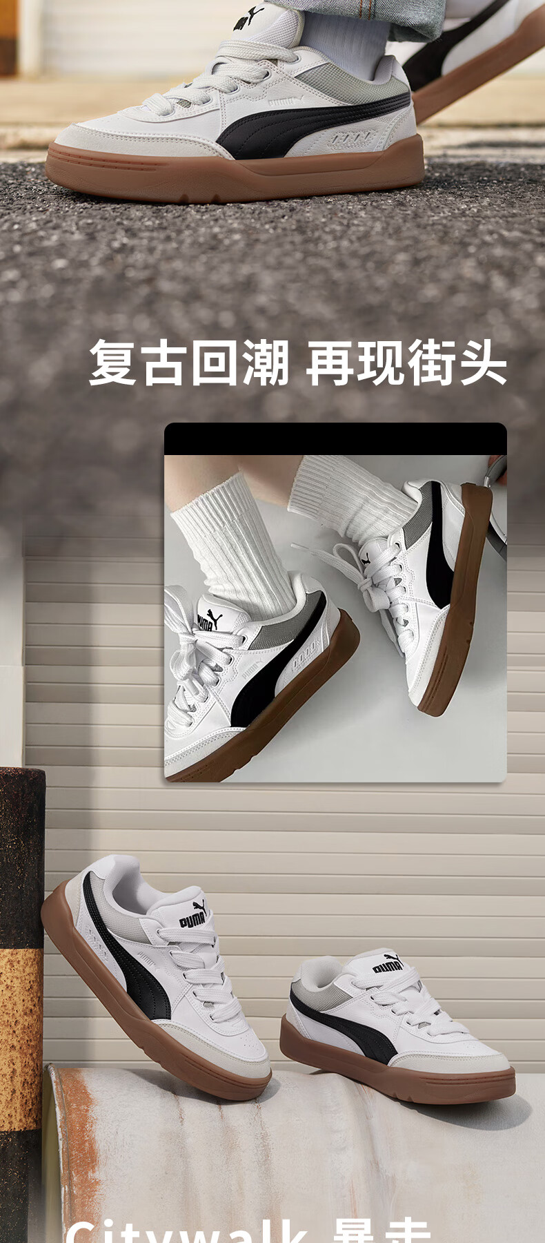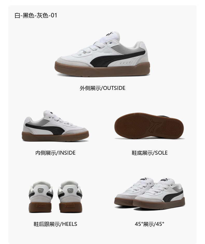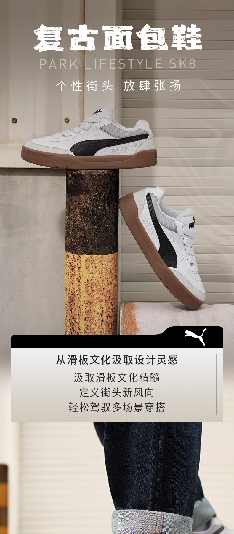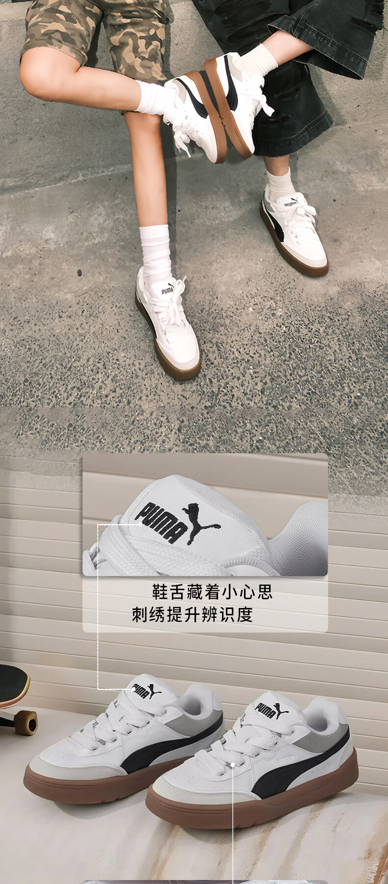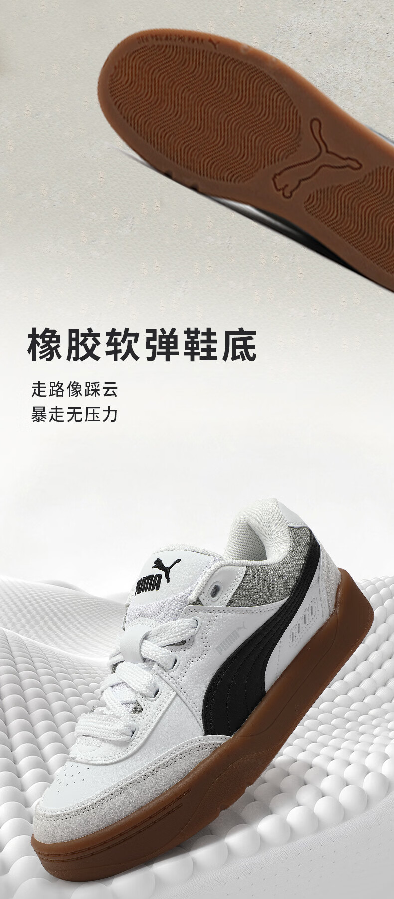 彪马(PUMA)【面包鞋】复古滑板鞋男女新款运动休闲板鞋PARK400497 白-黑色-灰色-01 42