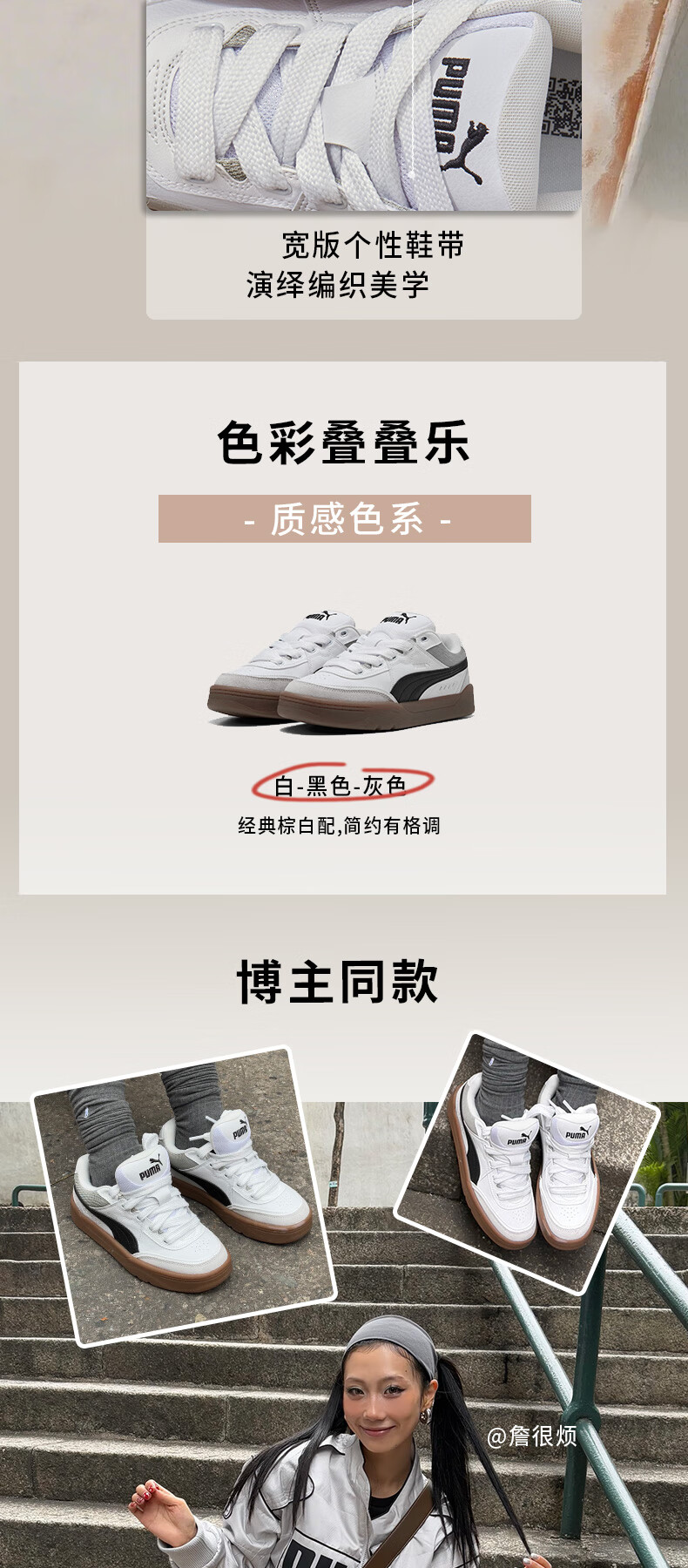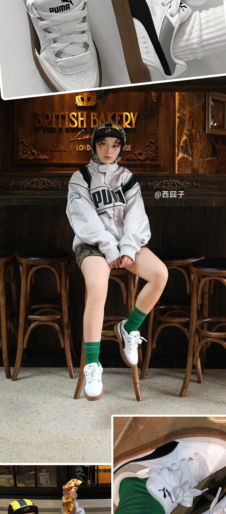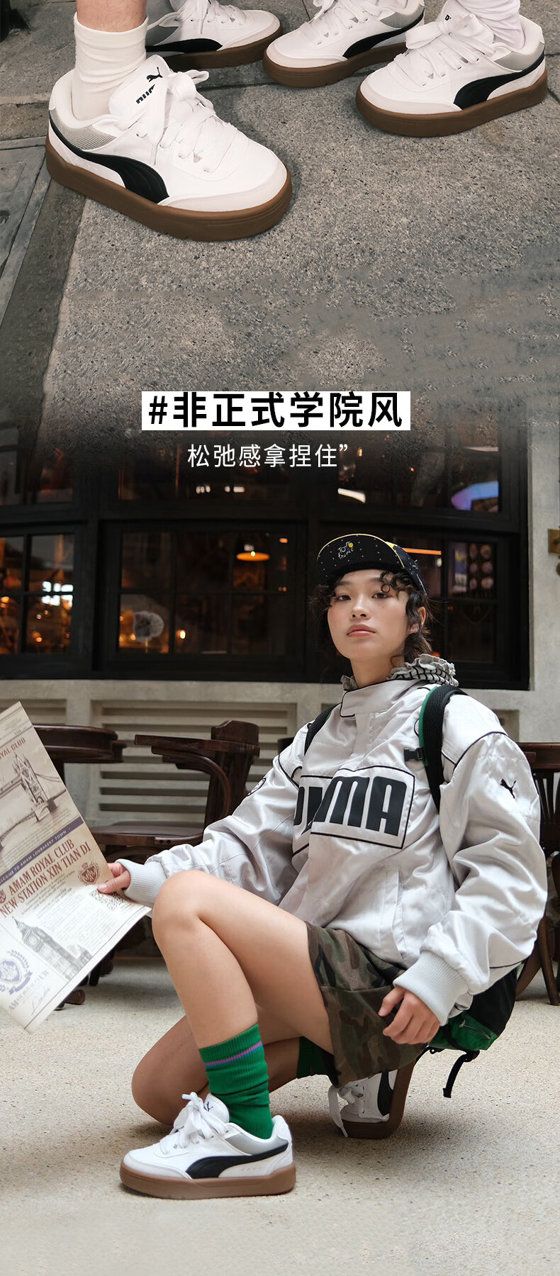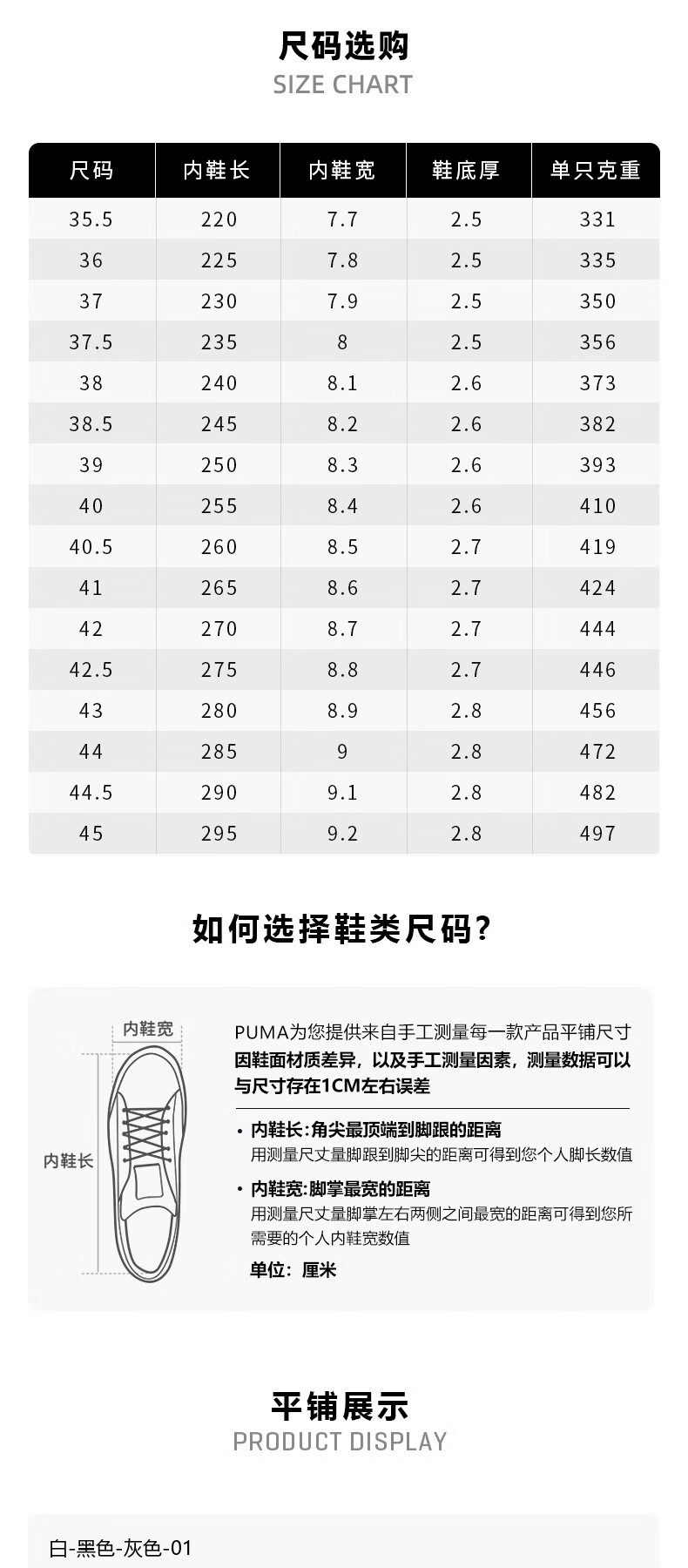 彪马(PUMA)【面包鞋】复古滑板鞋男女新款运动休闲板鞋PARK400497 白-黑色-灰色-01 42