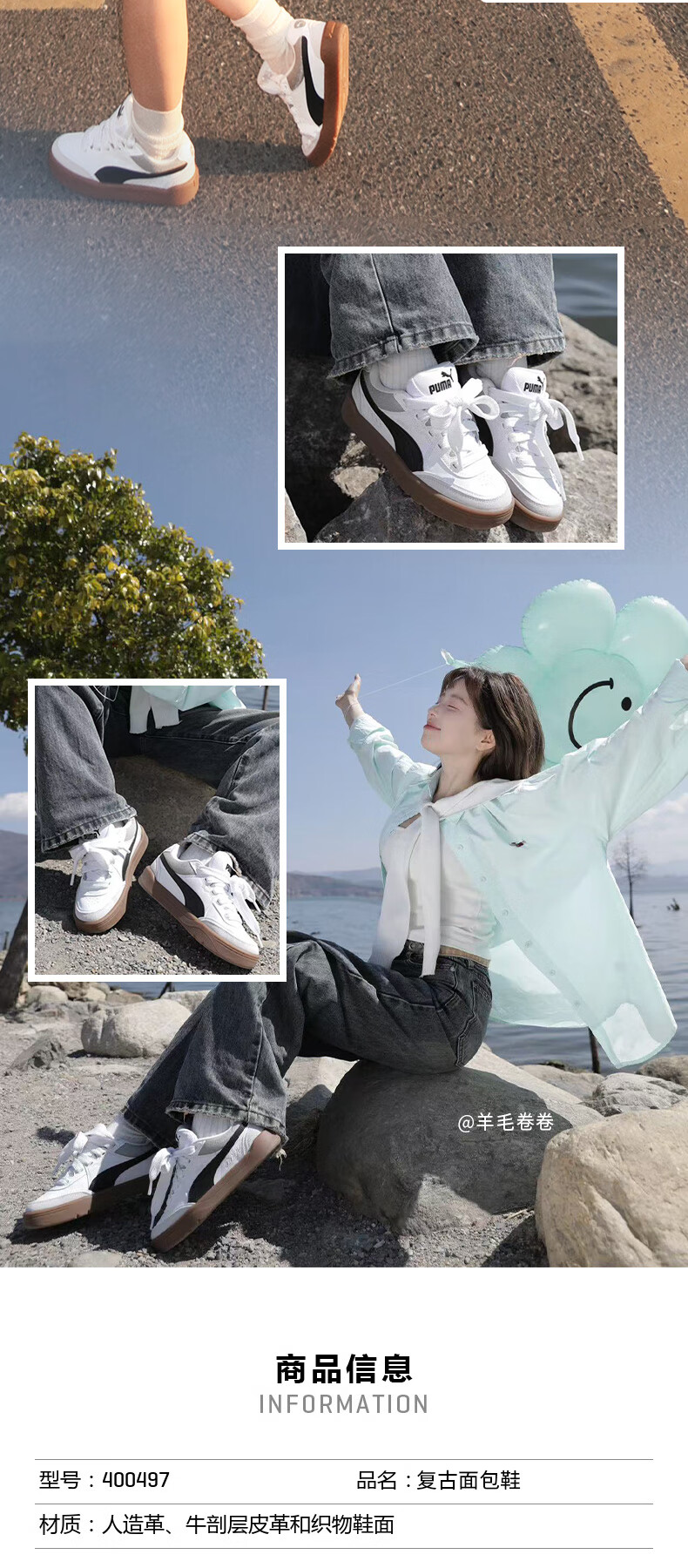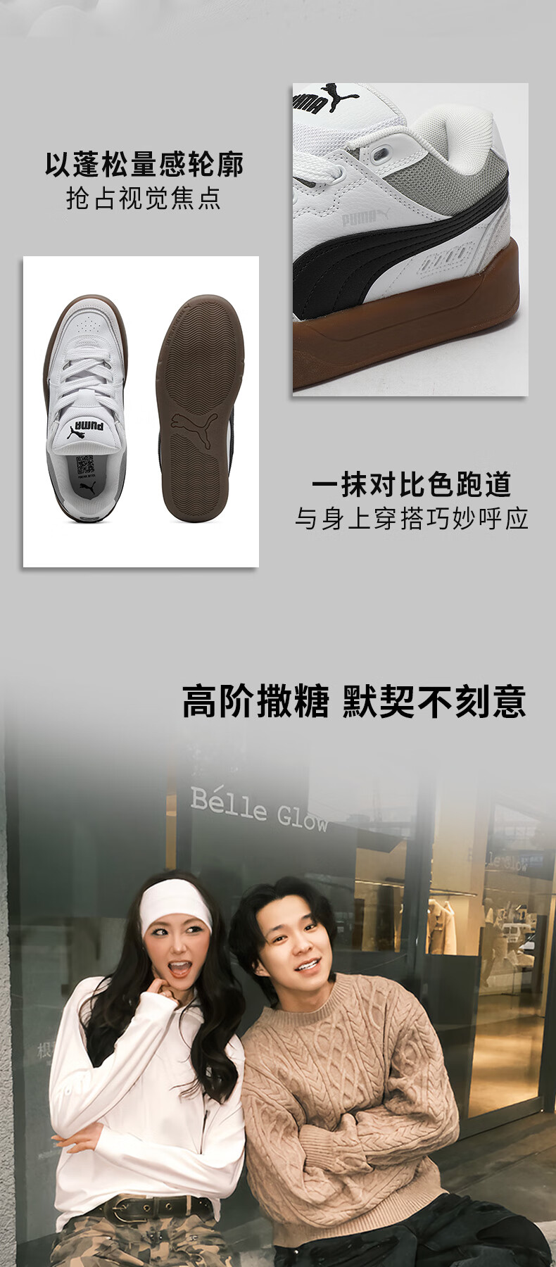 彪马(PUMA)【面包鞋】复古防滑透气滑板鞋运动休闲鞋男女PARK400707 暖白-黑色-08 42