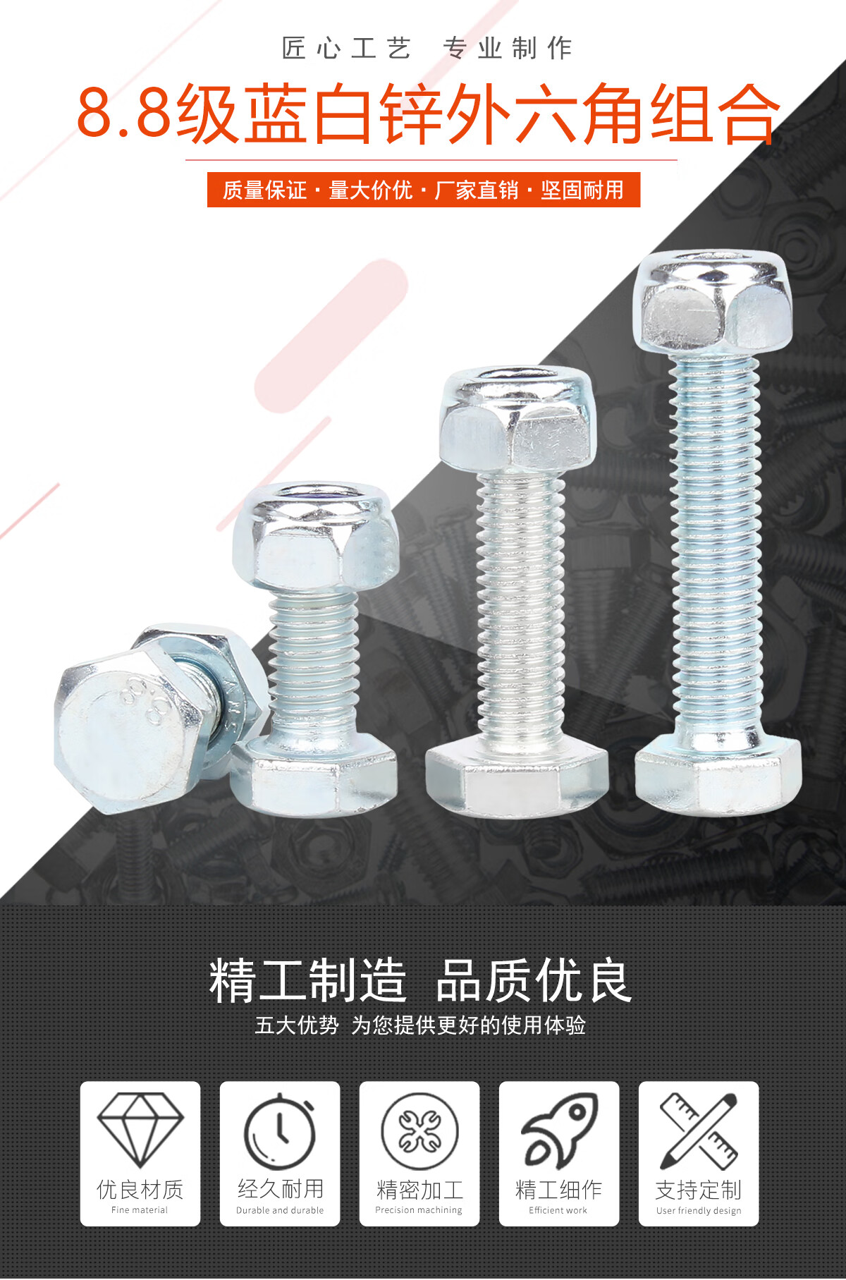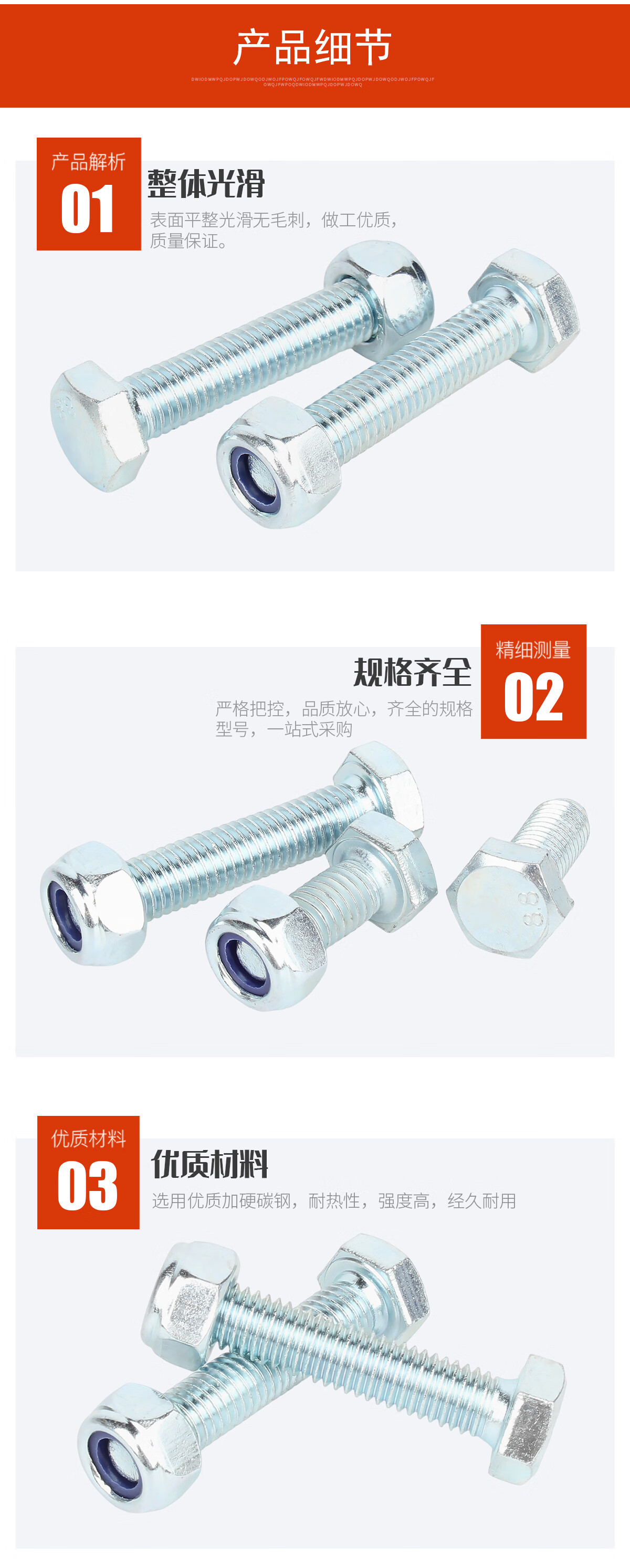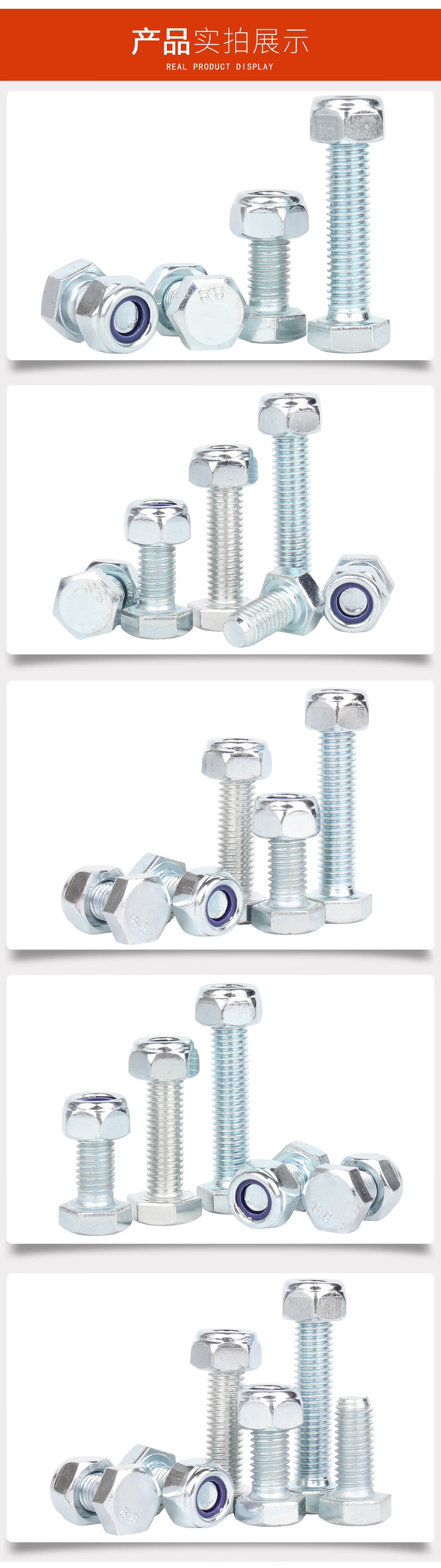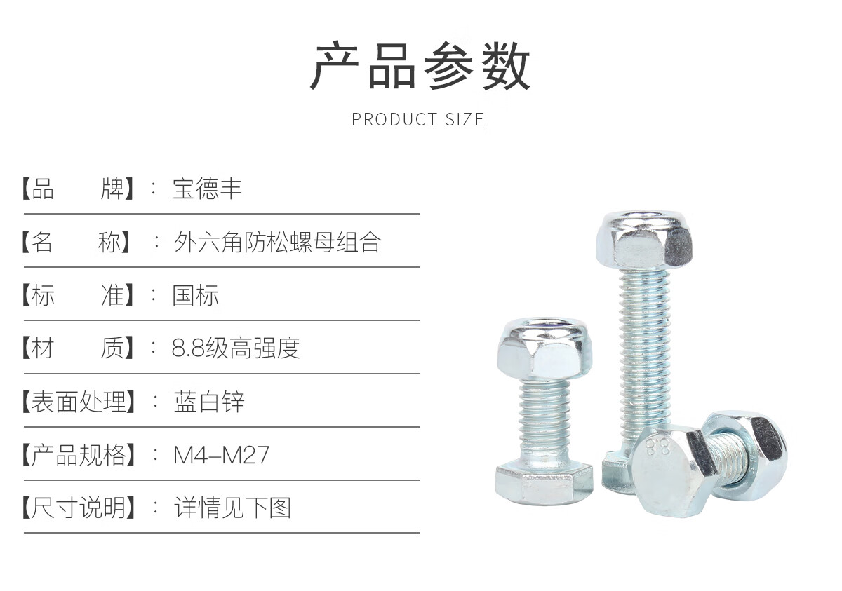 宝德丰高强度8.8级镀锌外六角螺丝螺母套装防松螺丝母组合长螺栓M4-M27 M4x6 全牙[50套]