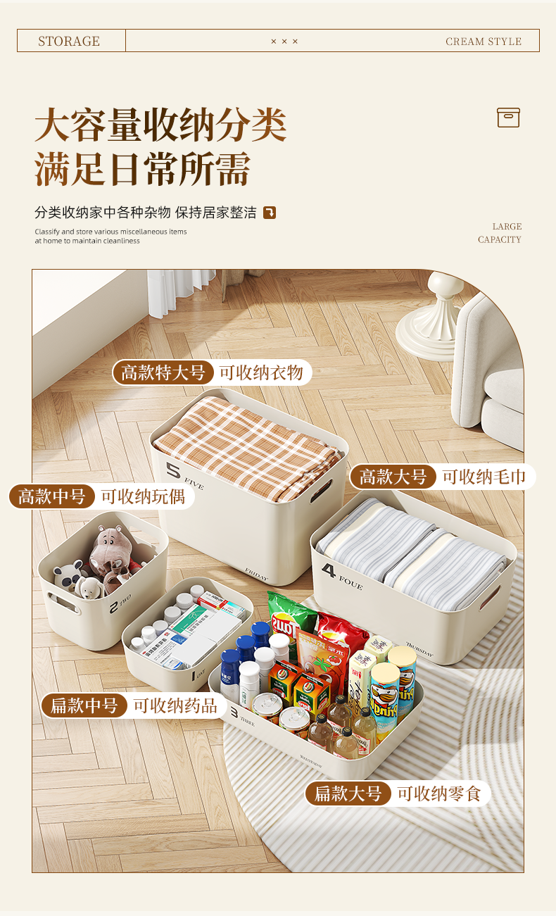 BABY VIEW桌面收纳盒大容量零食玩具整理箱储物盒杂物化妆品防尘塑料收纳筐 高款特大号/无盖【狗头款】