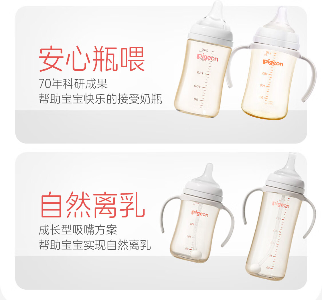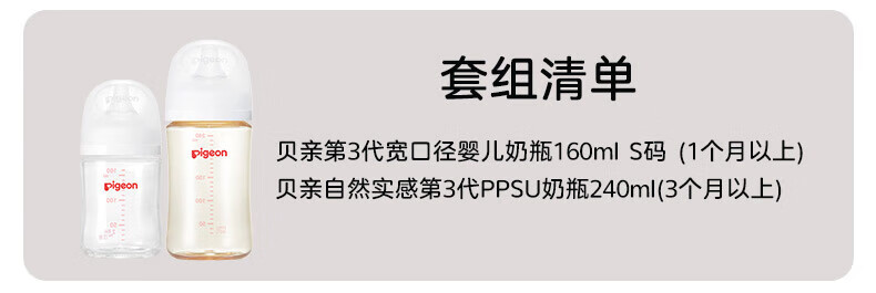 贝亲(Pigeon)玻璃奶瓶160mlS码+PPSU奶瓶240mlM码 1-6个月奶瓶套装