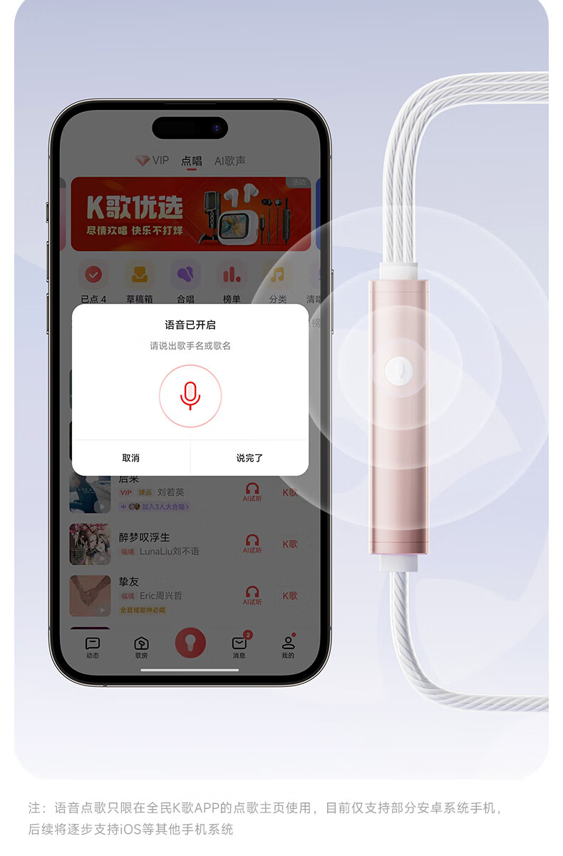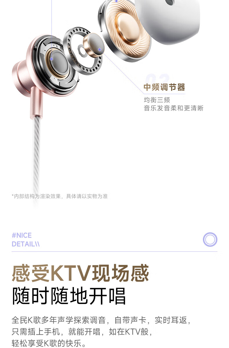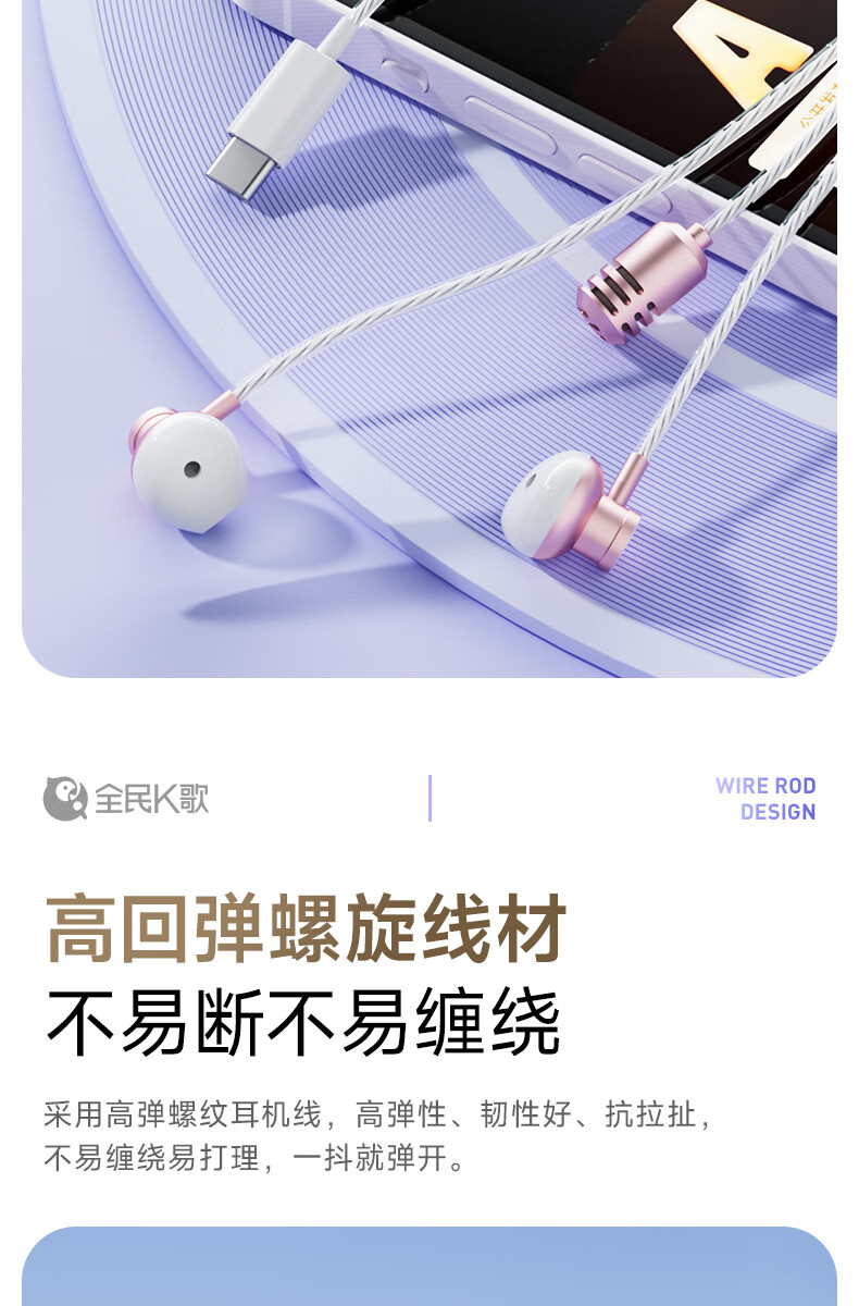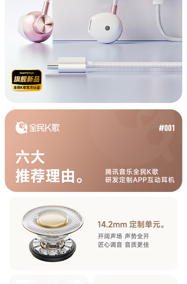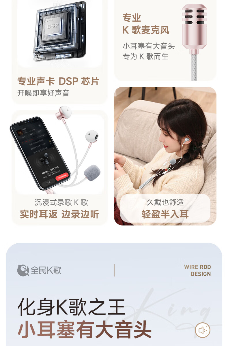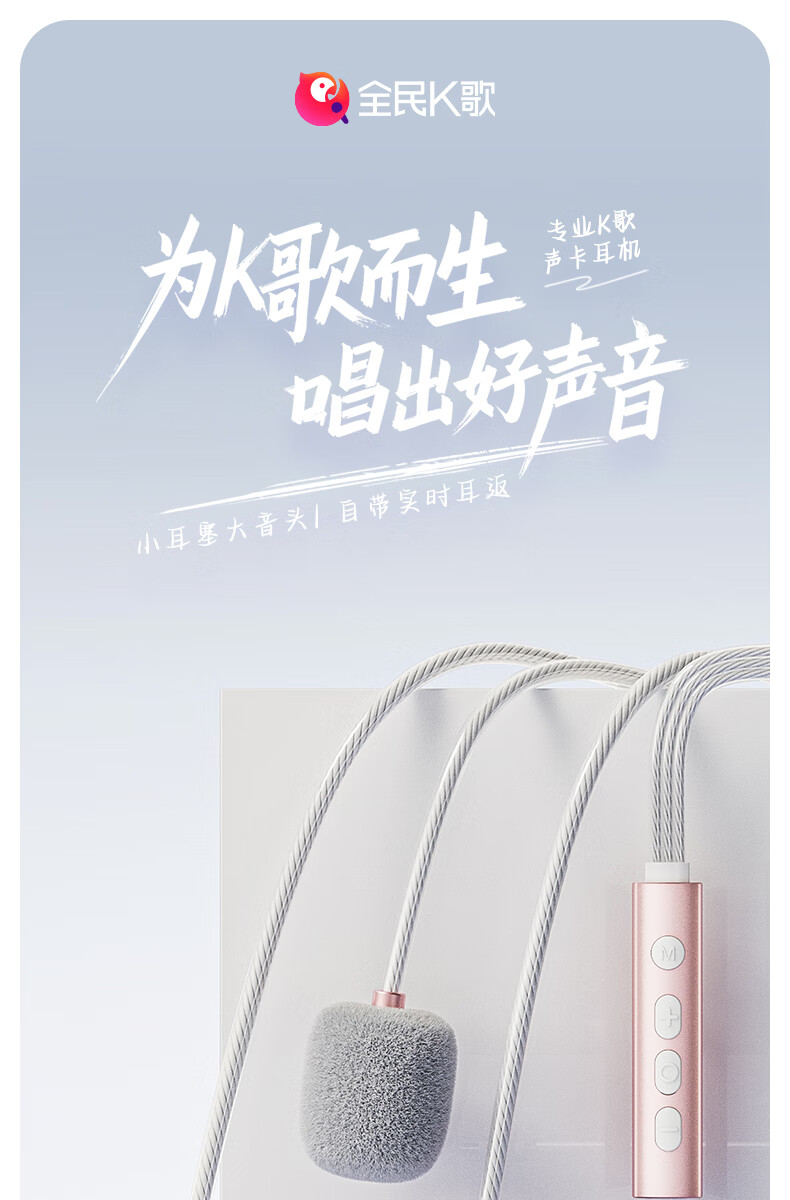 全民K歌【抖音同款】腾讯音乐联合定制电脑声卡K歌耳机麦克风音箱自带打分直播唱歌录音Kpods SE鎏金粉
