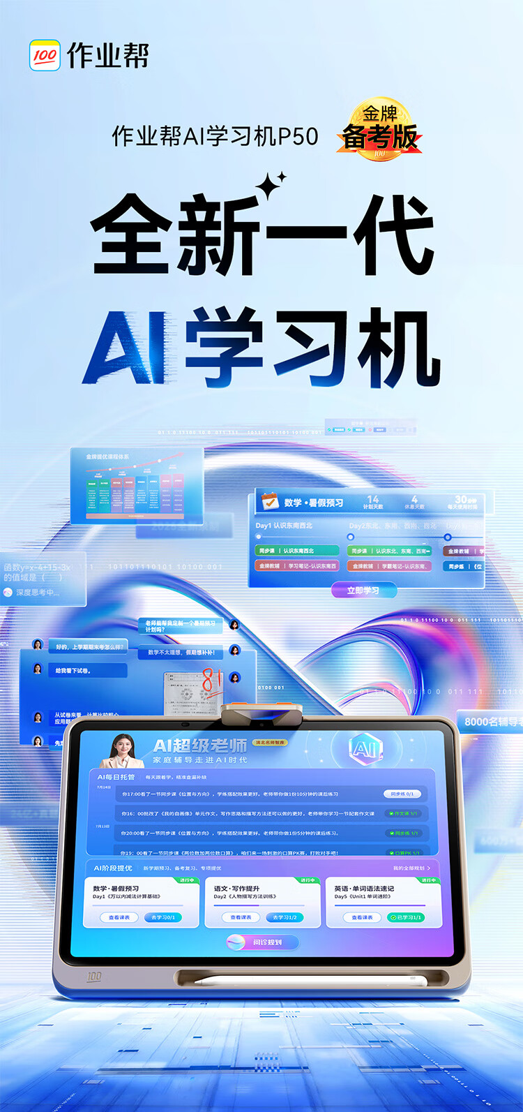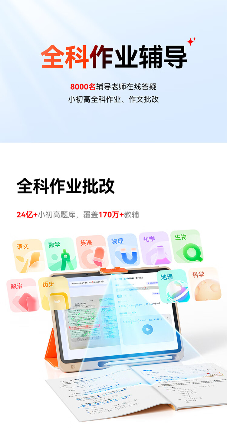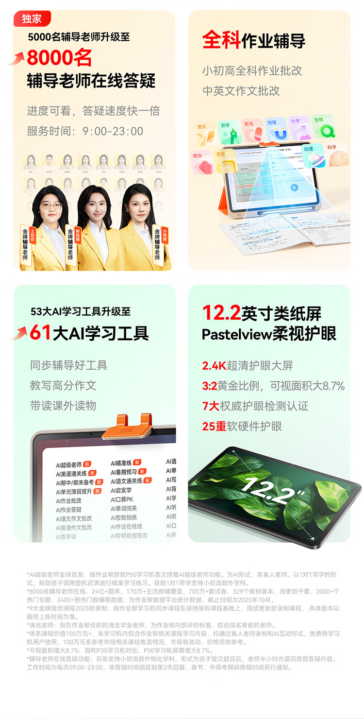 作业帮学习机P50 AI超级老师1对1精准教学 平板电脑小学到高中学练一体机家教机辅导机12.2''6+128G