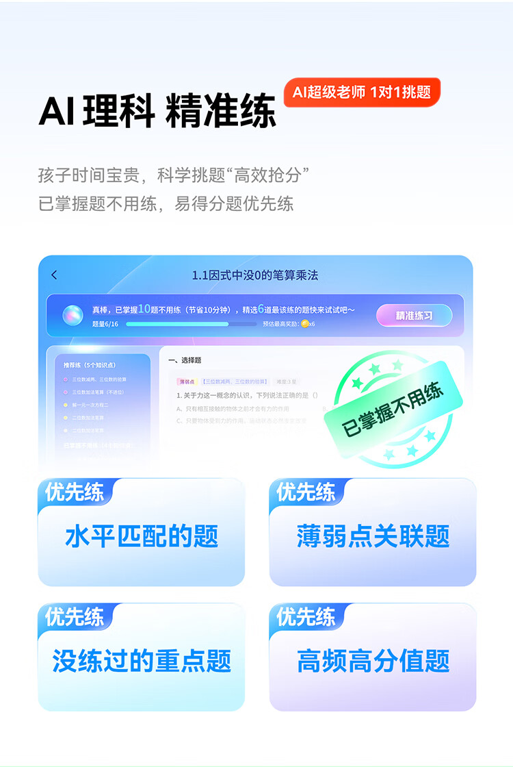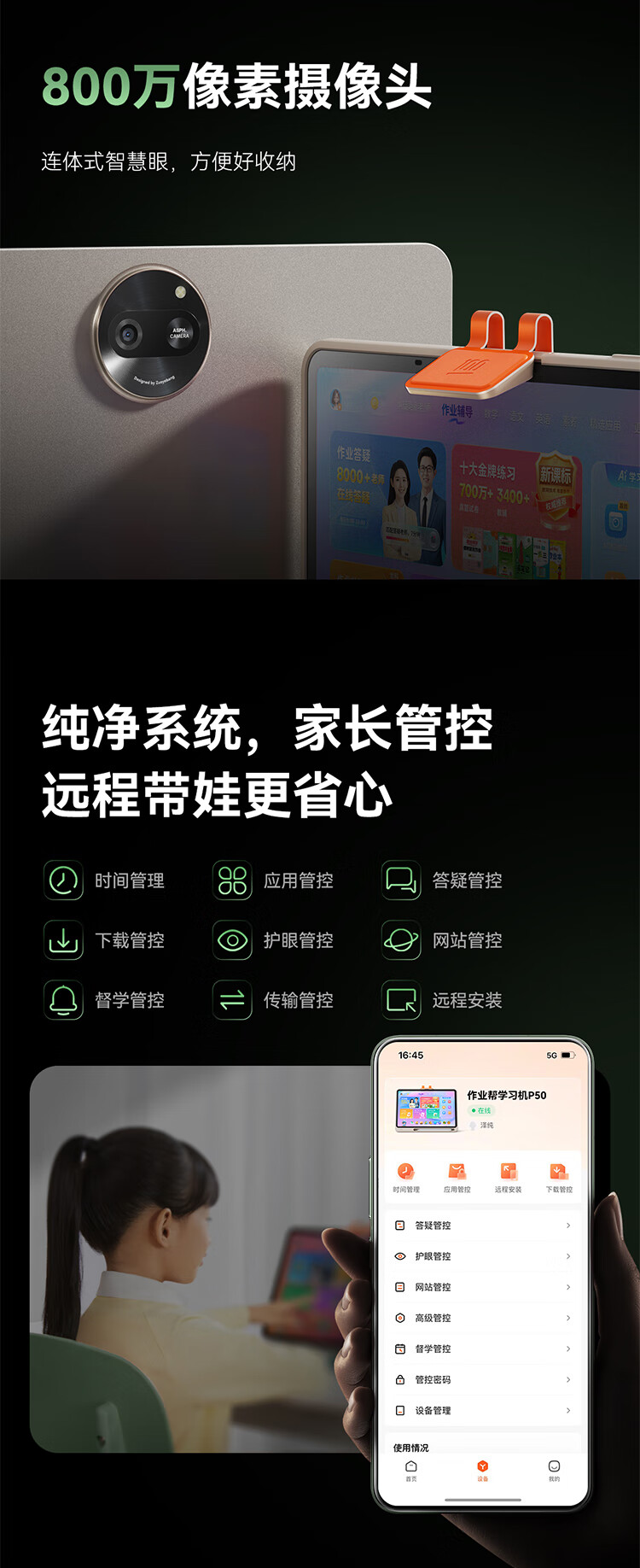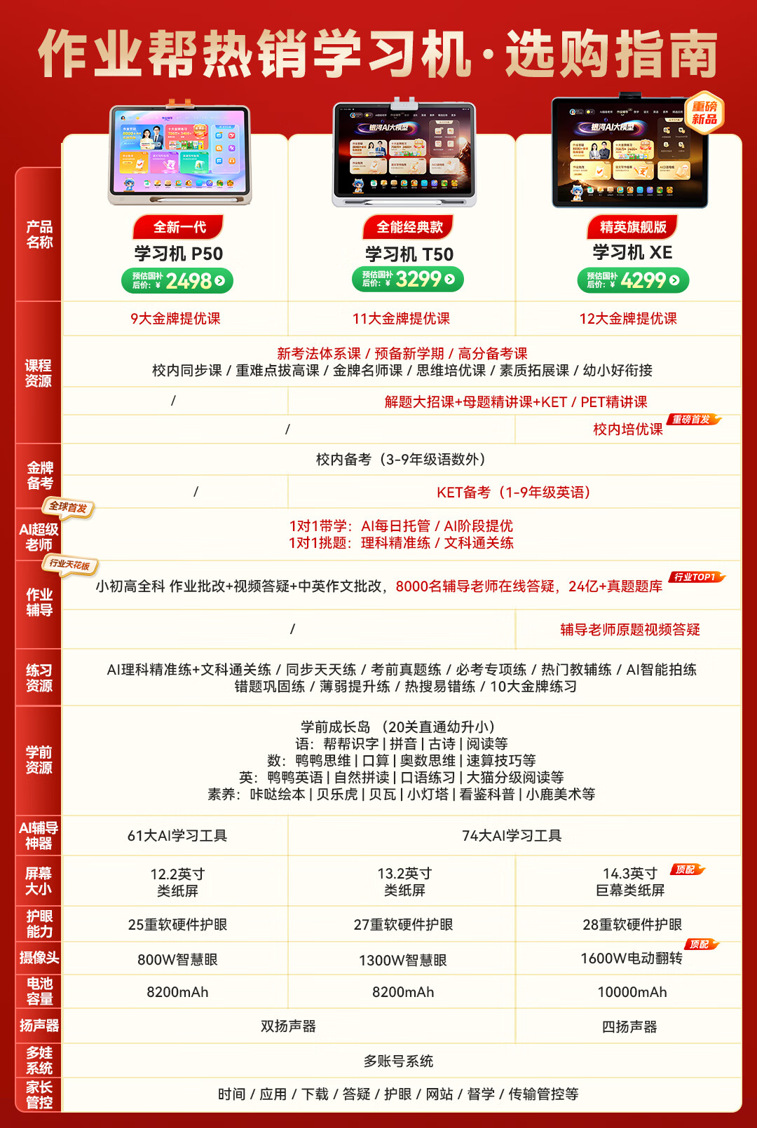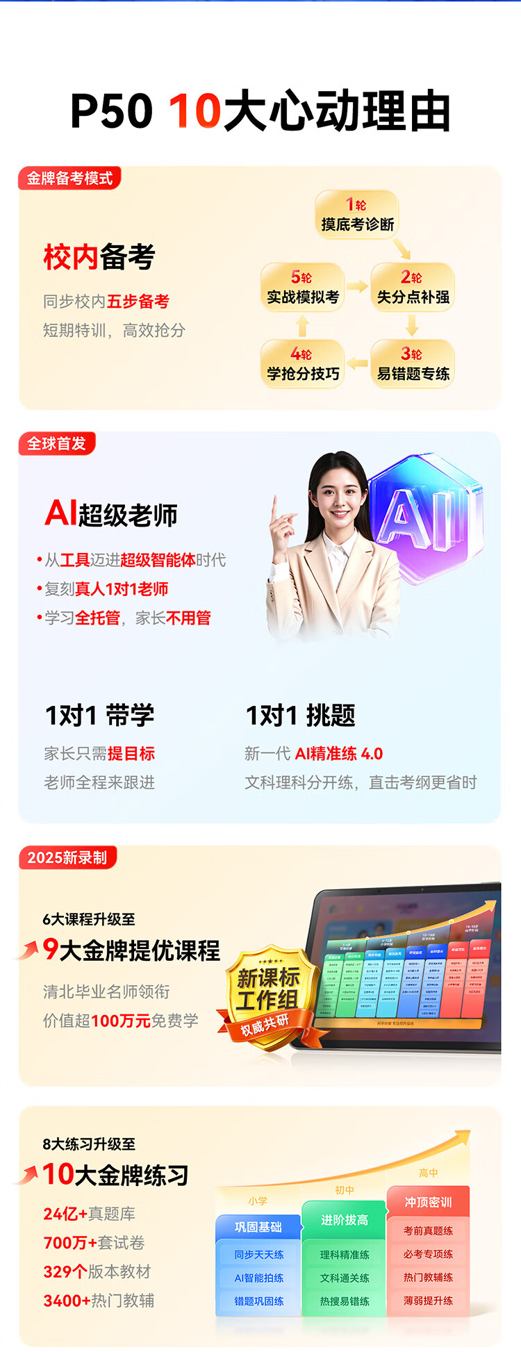 作业帮学习机P50 AI超级老师1对1精准教学 平板电脑小学到高中学练一体机家教机辅导机12.2''6+128G