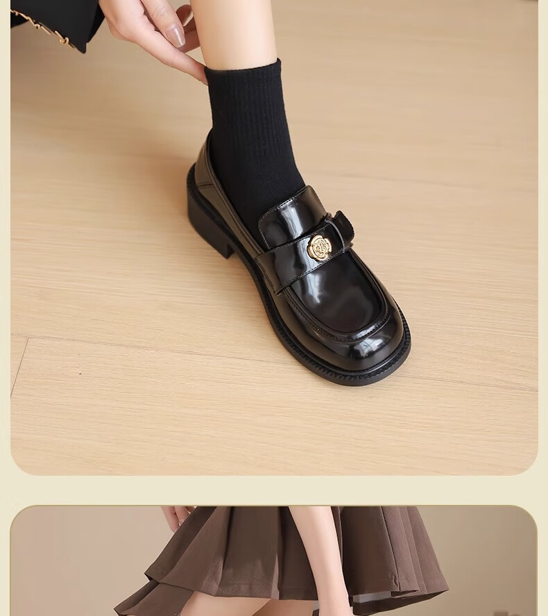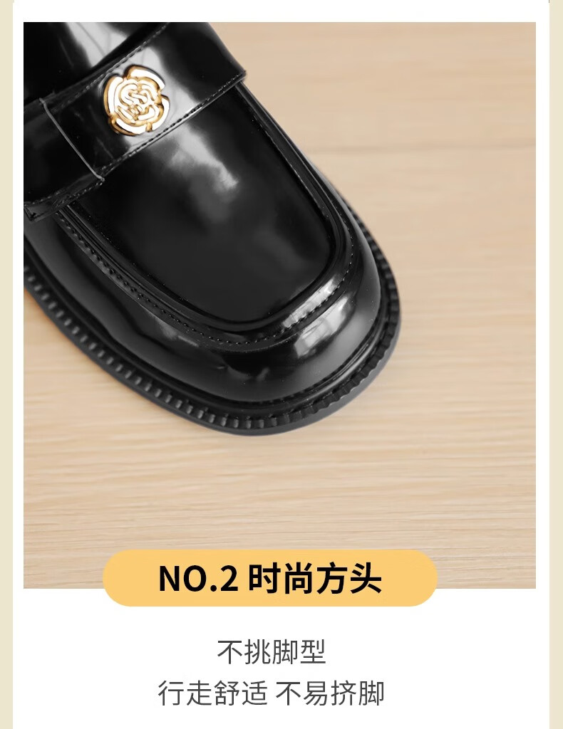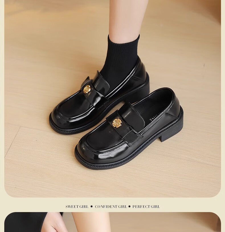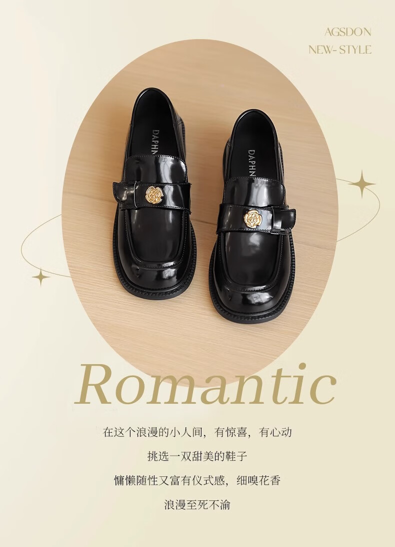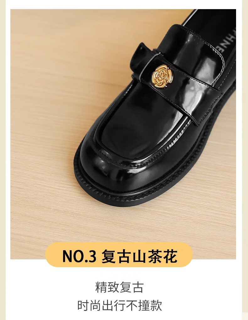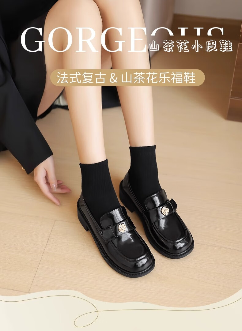 达芙妮厚底乐福鞋女2026春季新款山茶花复古单鞋英伦风黑色小皮鞋女JL 黑色【复古山茶花-跟高3.5cm】 36