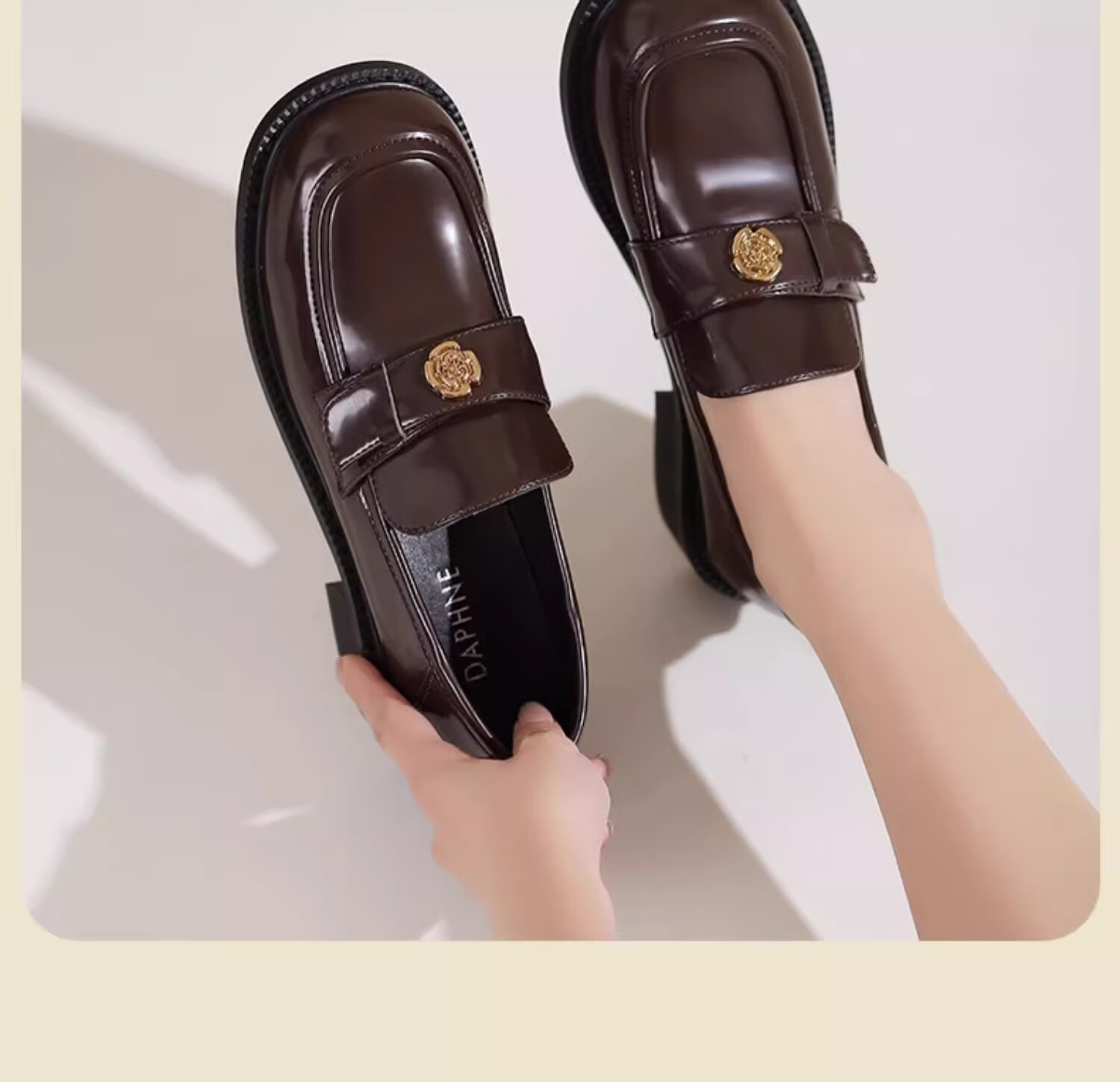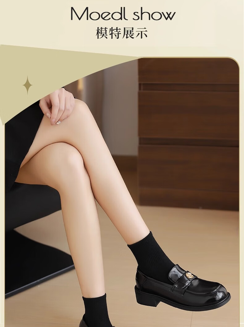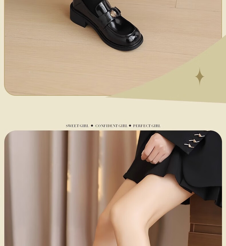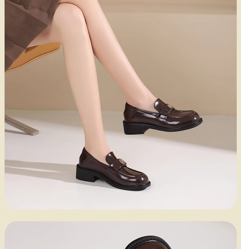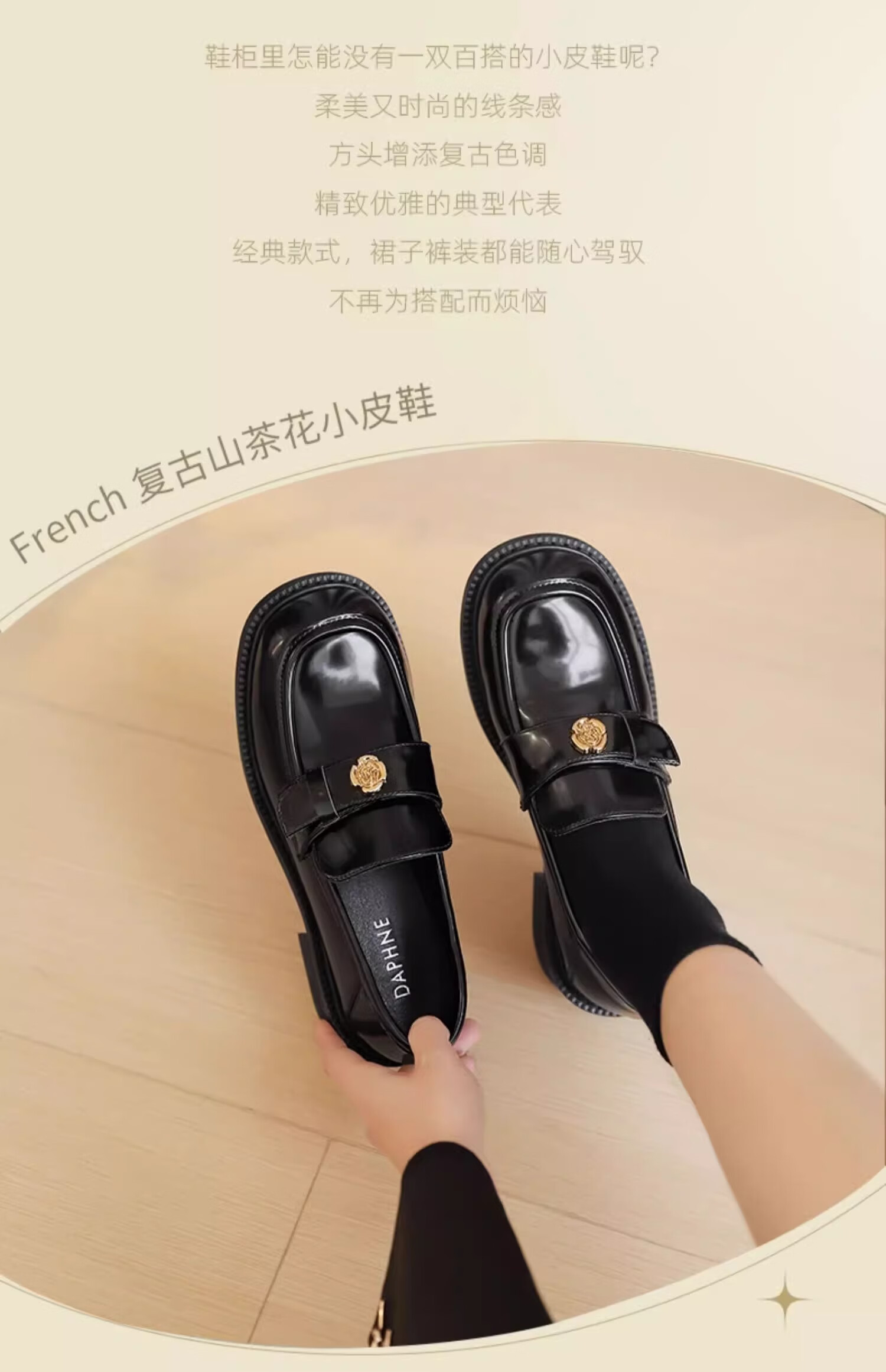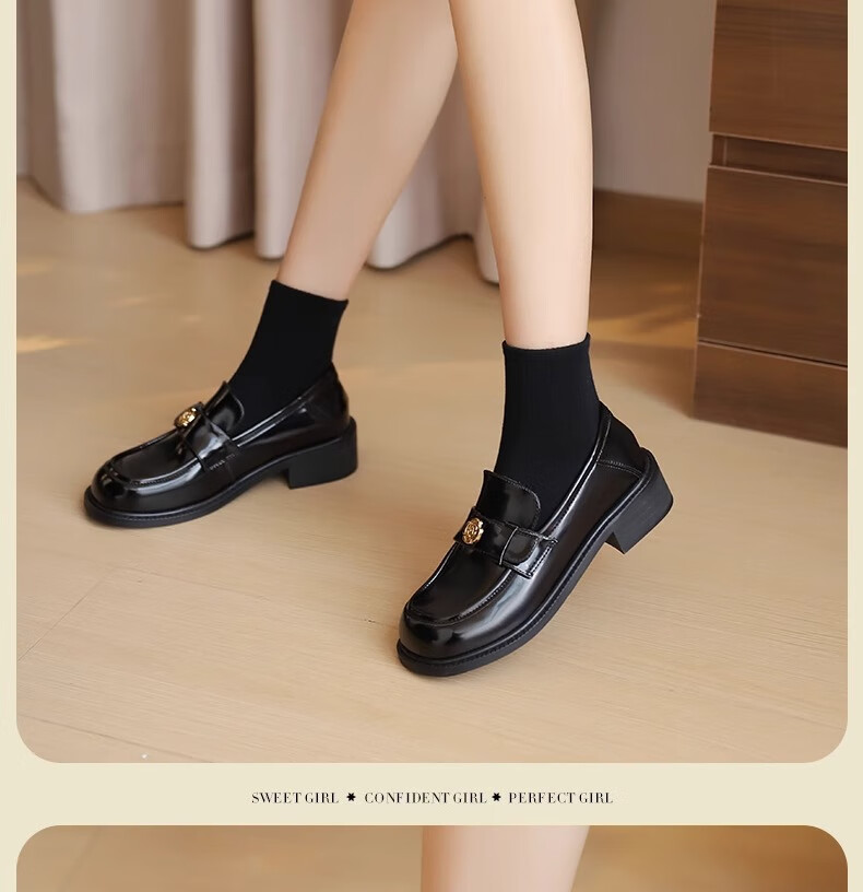 达芙妮厚底乐福鞋女2026春季新款山茶花复古单鞋英伦风黑色小皮鞋女JL 黑色【复古山茶花-跟高3.5cm】 36