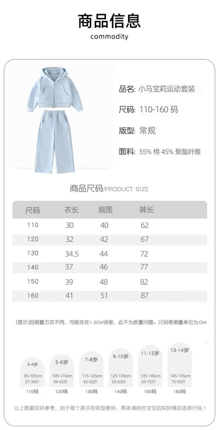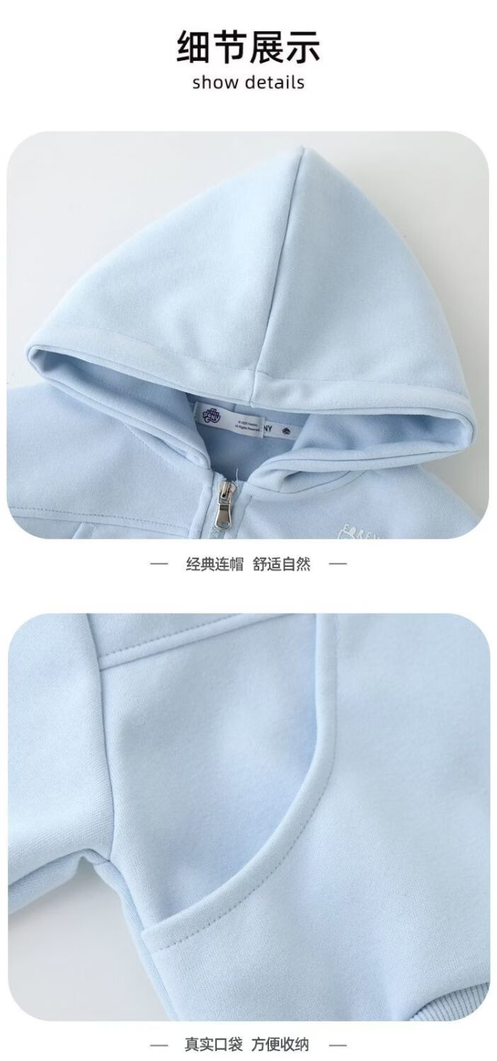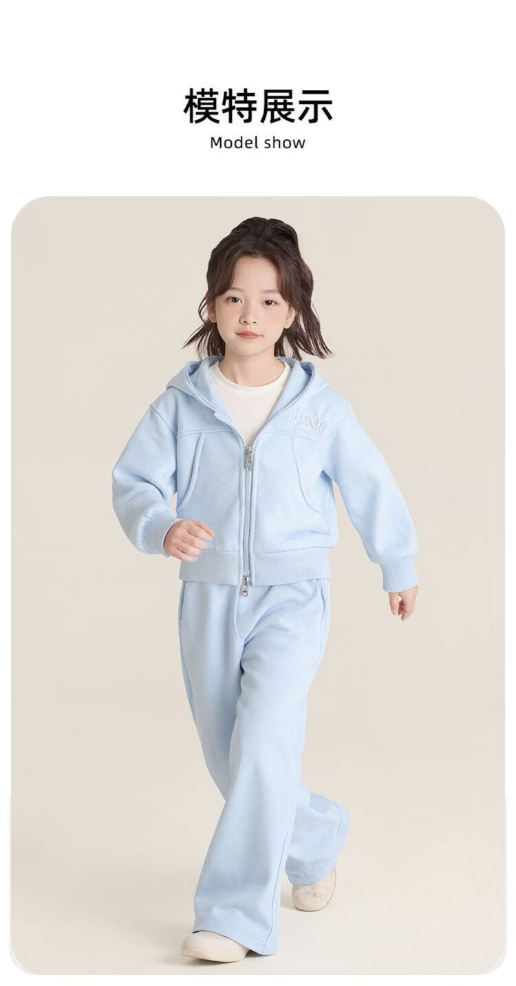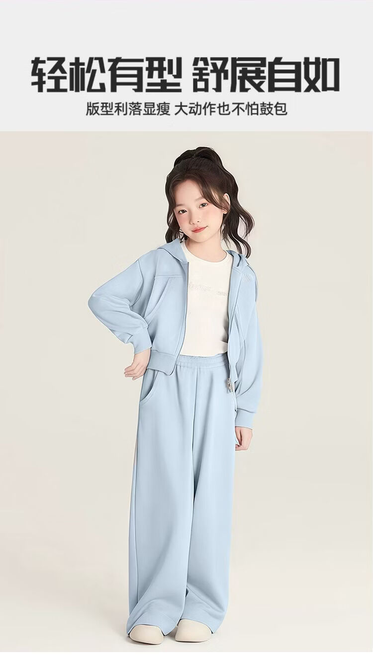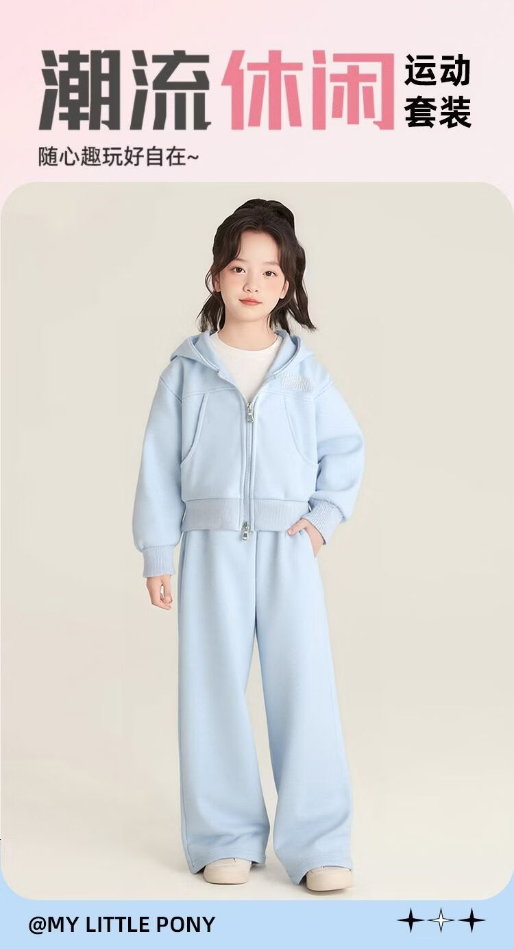 小马宝莉(MY LITTLE PONY)女童外套套装2026春秋新款女孩卫衣阔腿裤中大童洋气两件套 淡蓝色拉链衫套装 【短款上衣】 130 建议115-125cm