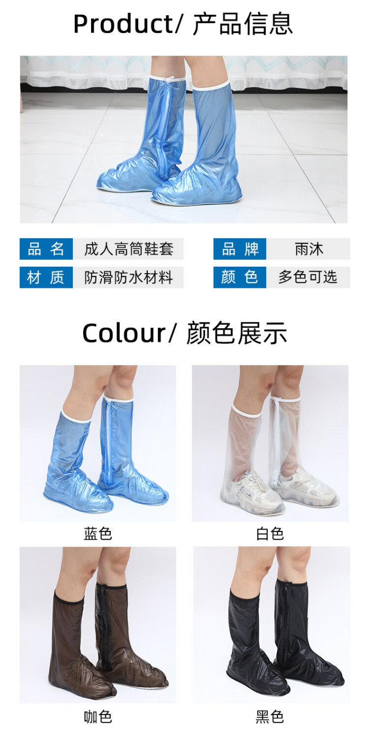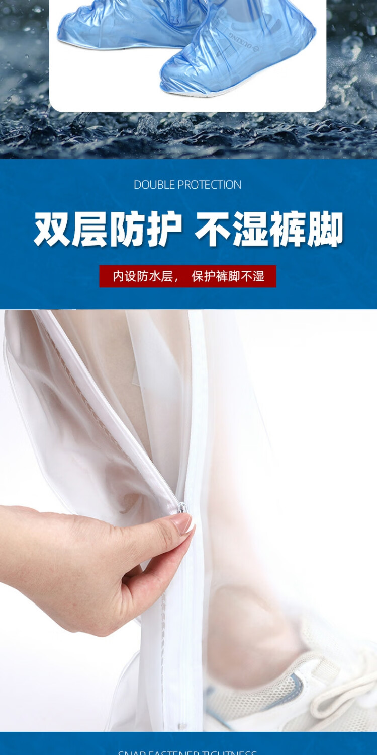旅行鞋套长筒防水鞋套防滑耐磨加厚防护雨鞋套雨天防雨防户外鞋套 白色 M适合36-37码