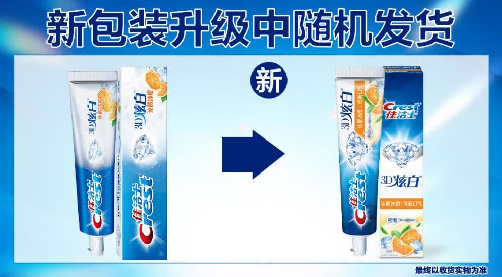 佳洁士【工厂直供】牙膏3D炫白沁醒冰橙牙膏120g 防蛀 含氟牙膏淡黄 清 3D炫白沁醒冰橙牙膏 120g 1支