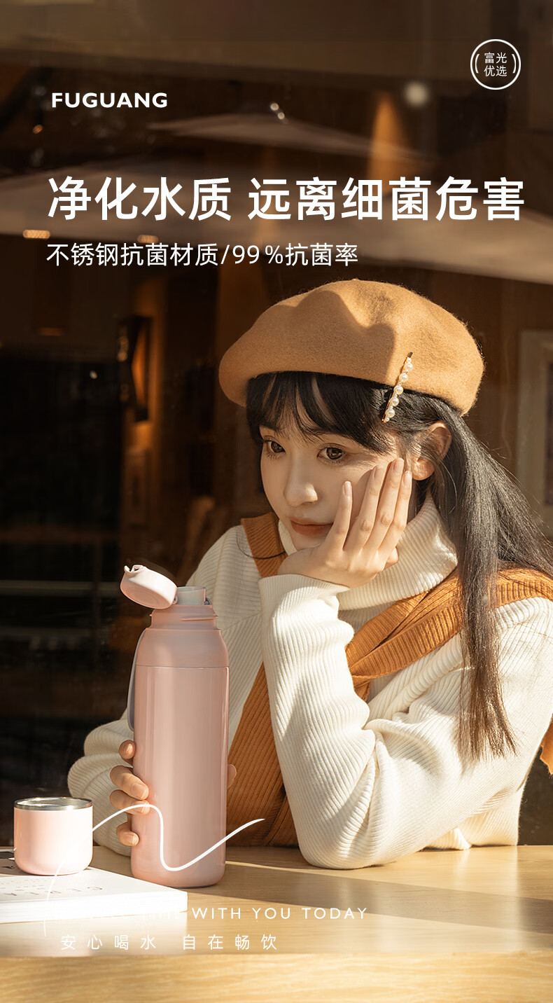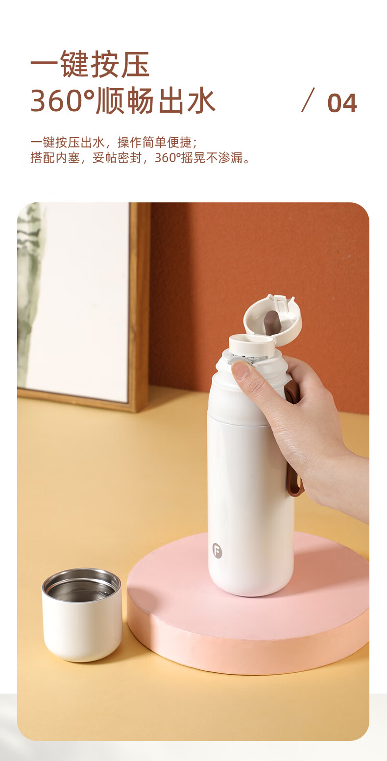 富光 闪电保温杯女士学生杯盖可喝水男士高颜值大容量便携式户外水杯 450ml白色