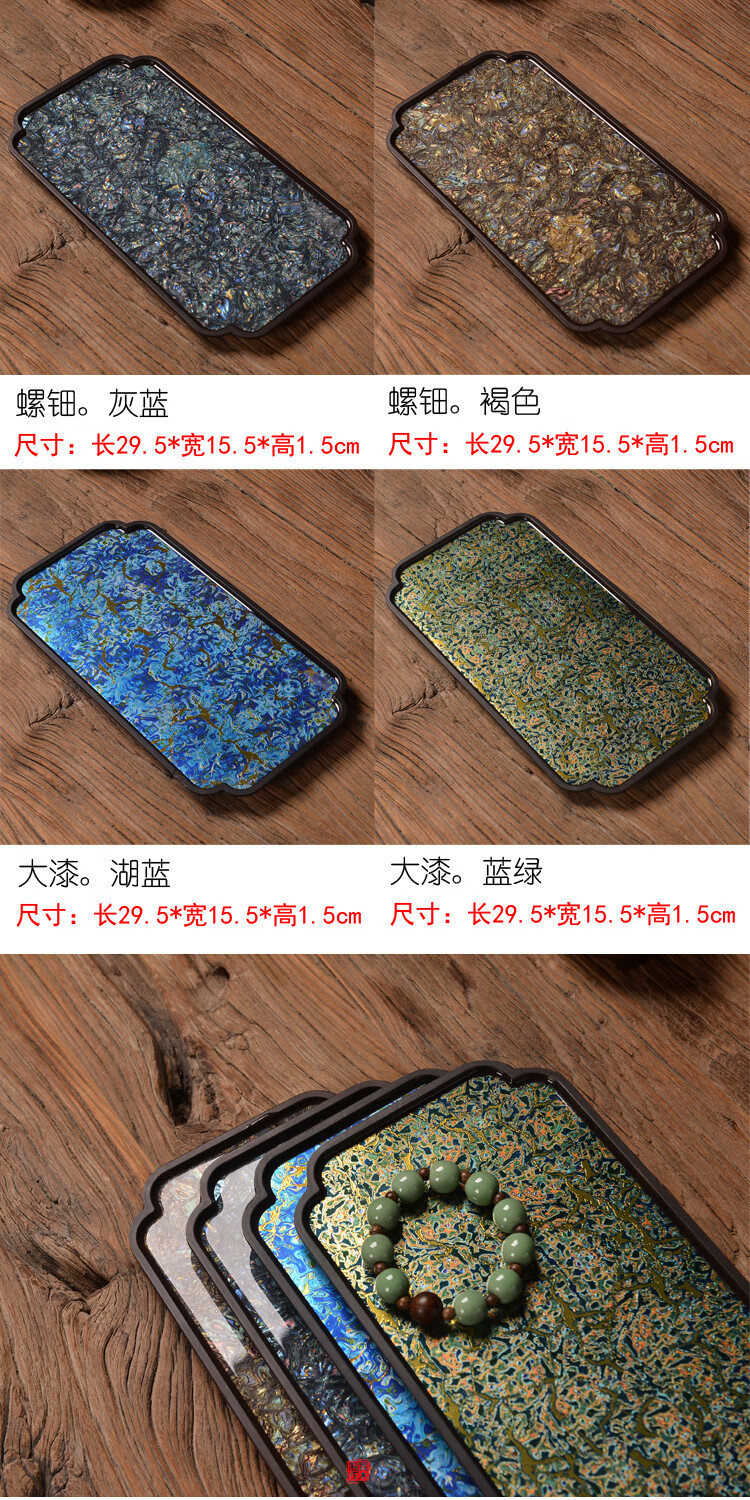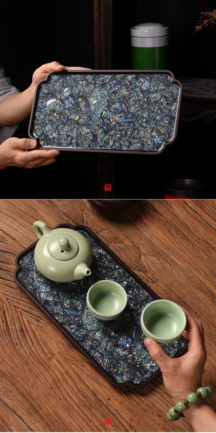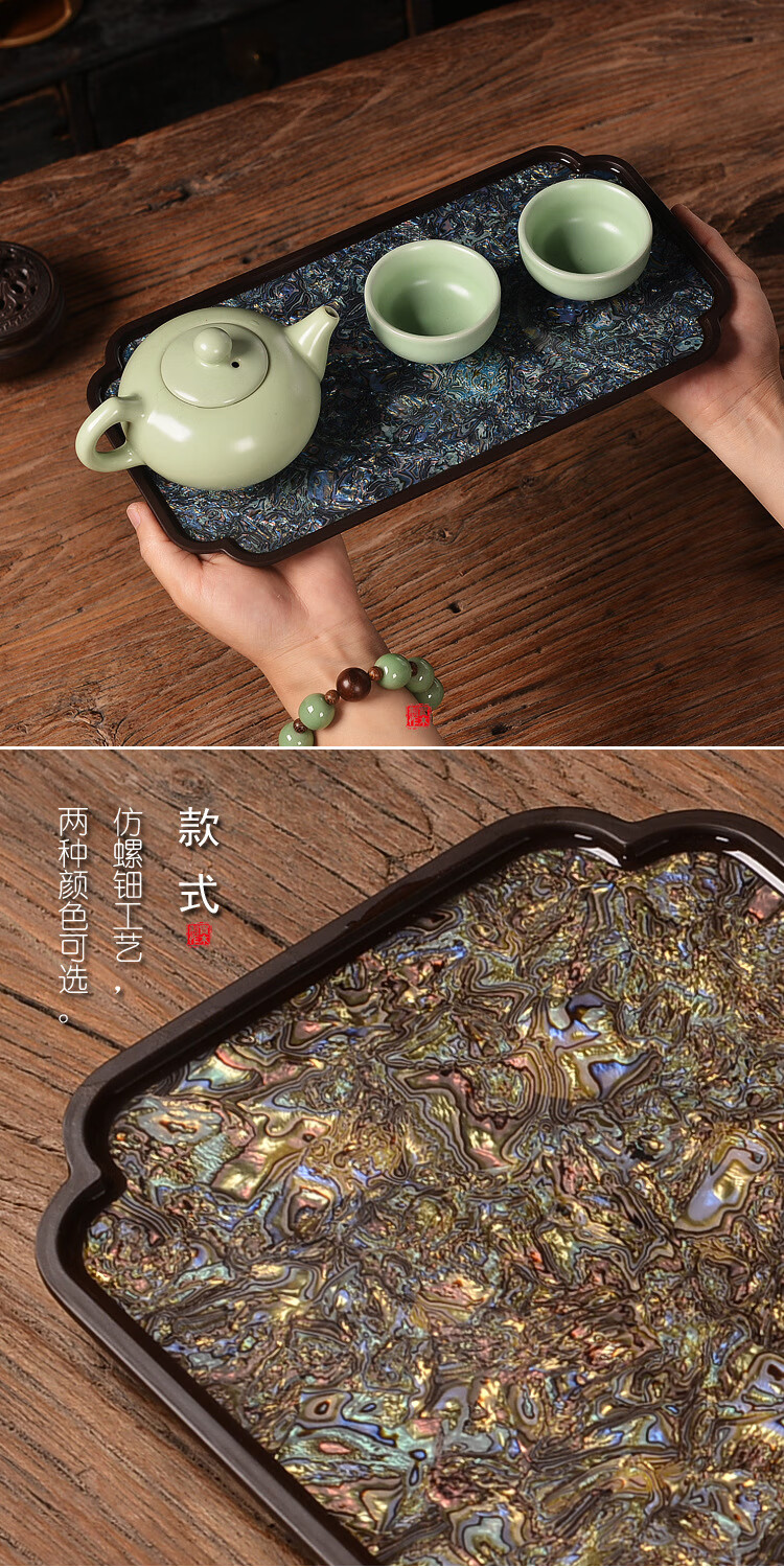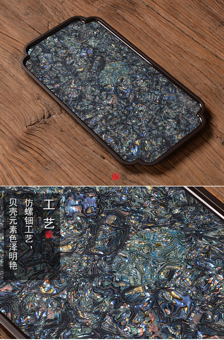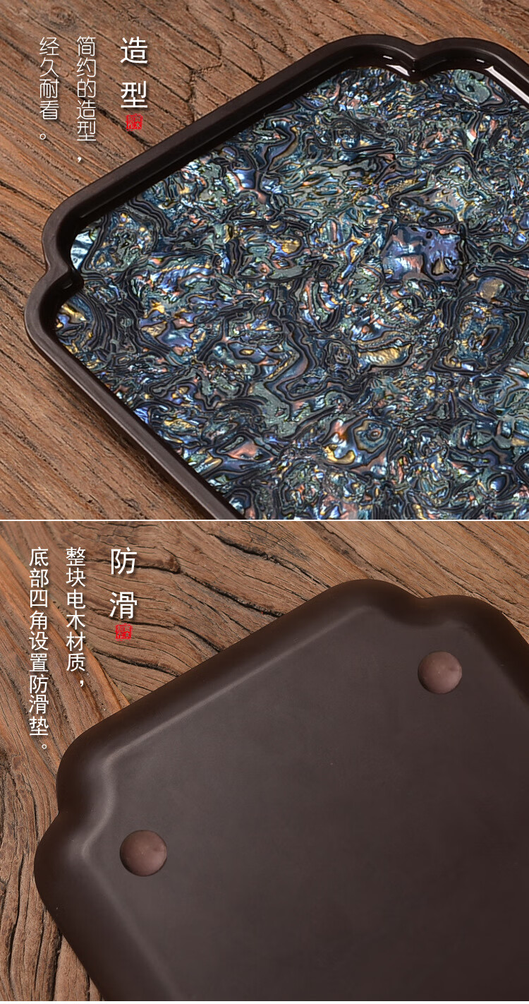 艾木枫靓电木茶盘干泡茶托盘果盘功夫茶道茶具收纳杯子螺钿大漆复 螺钿褐色 29.5*15.5*1.5