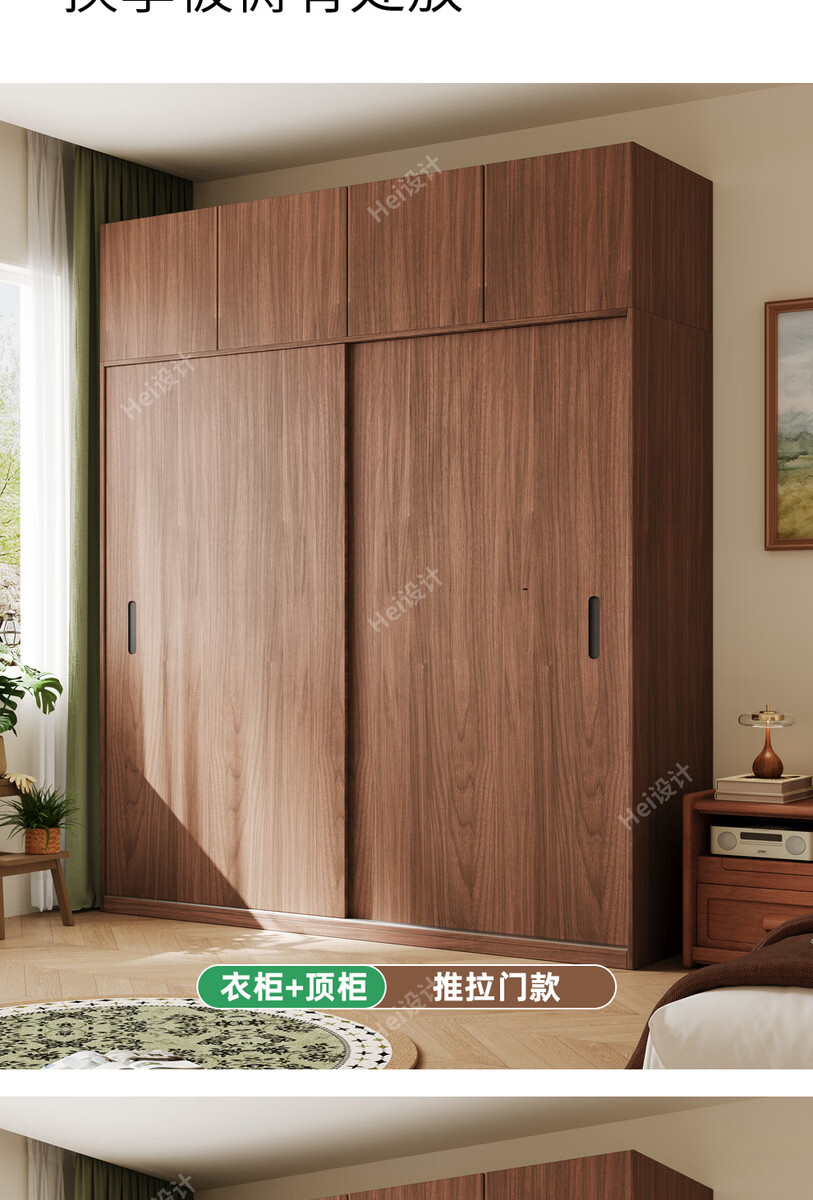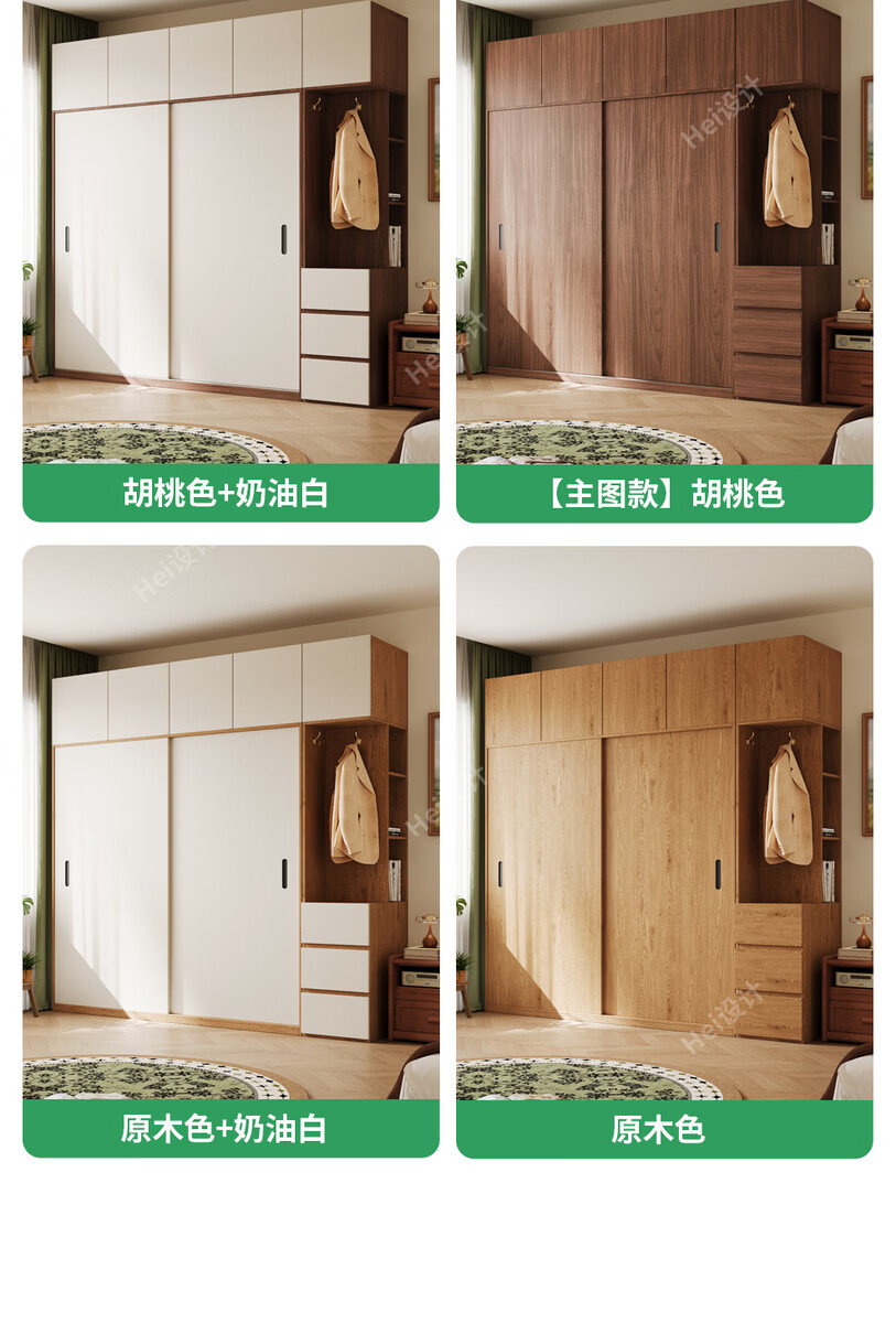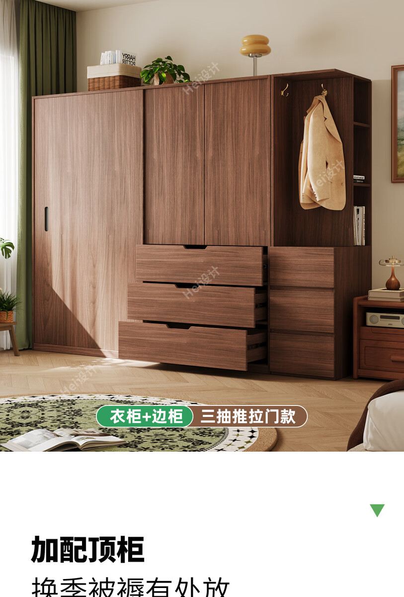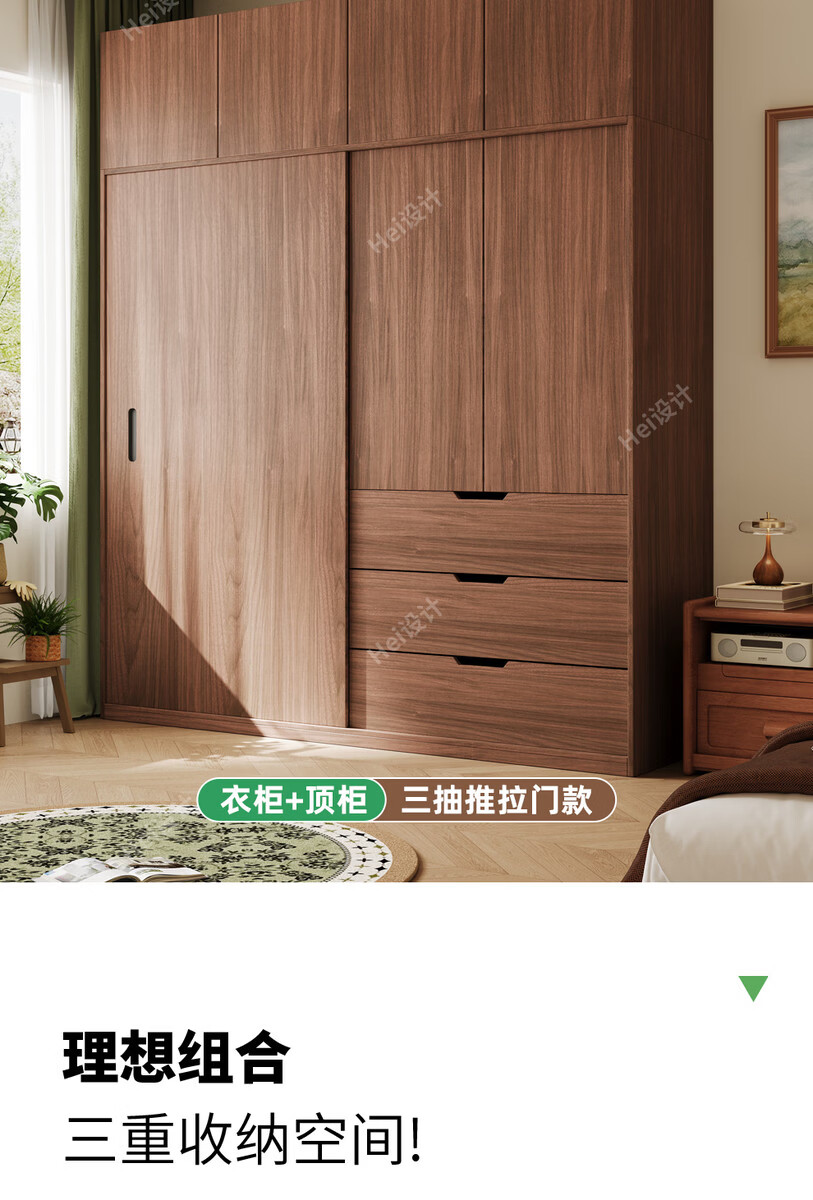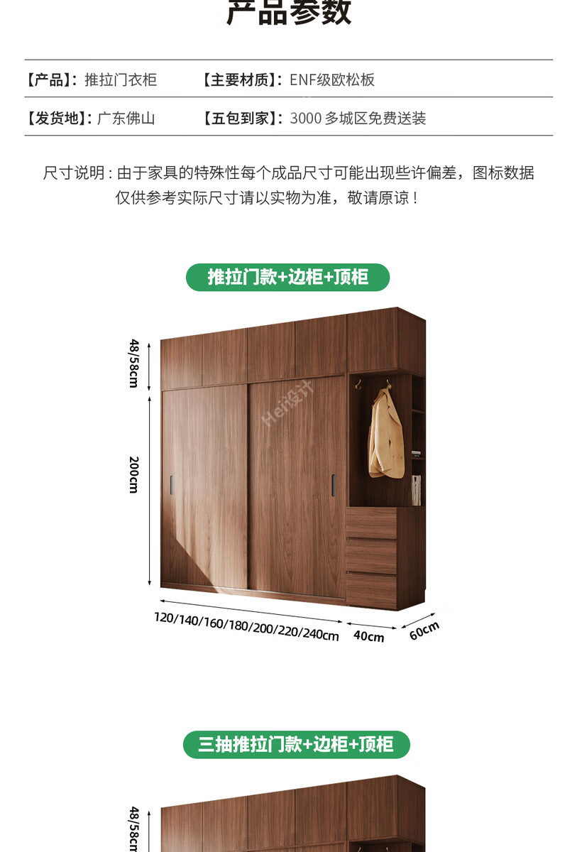 溥畔2026新款爆款欧松板推拉门衣柜卧室收纳柜子小户型移滑门衣橱 2.0米二门衣柜+顶柜+边柜[2.58米高](三抽