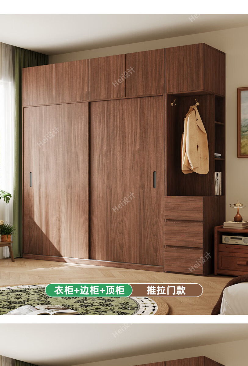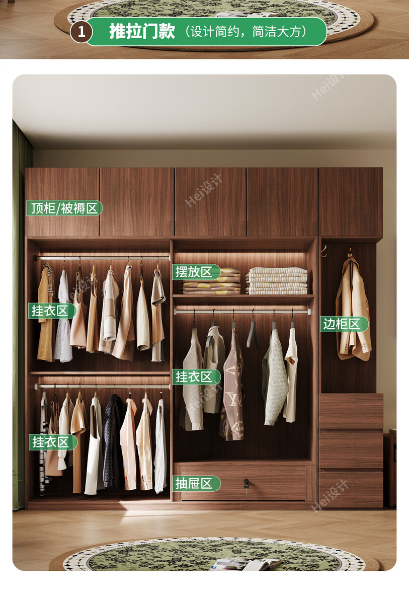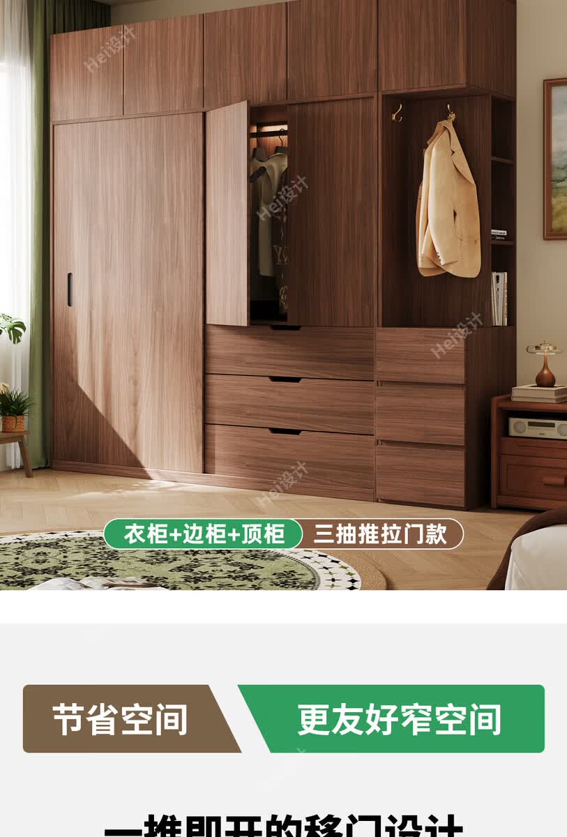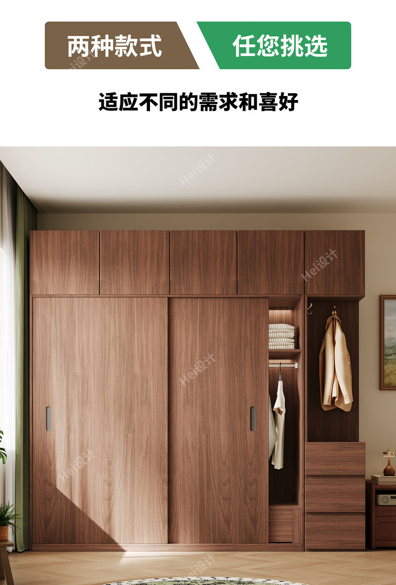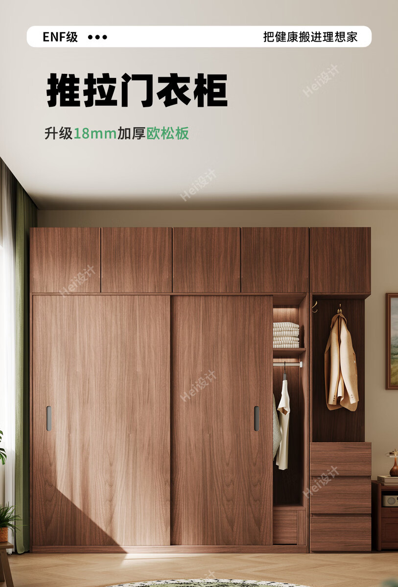 溥畔2026新款爆款欧松板推拉门衣柜卧室收纳柜子小户型移滑门衣橱 2.0米二门衣柜+顶柜+边柜[2.58米高](三抽
