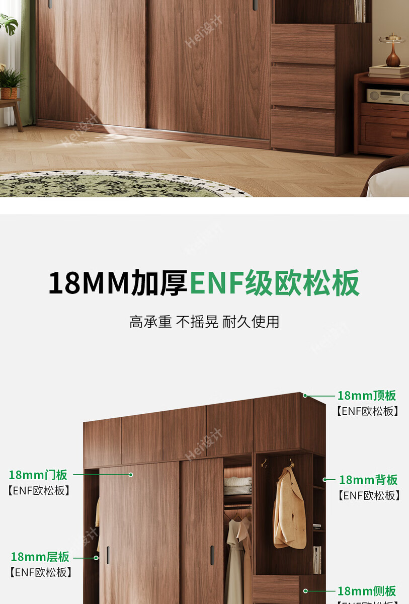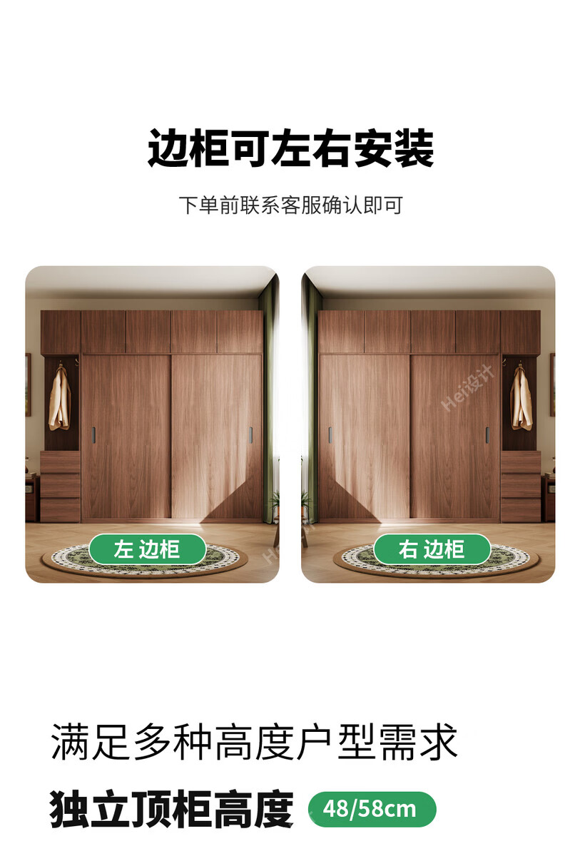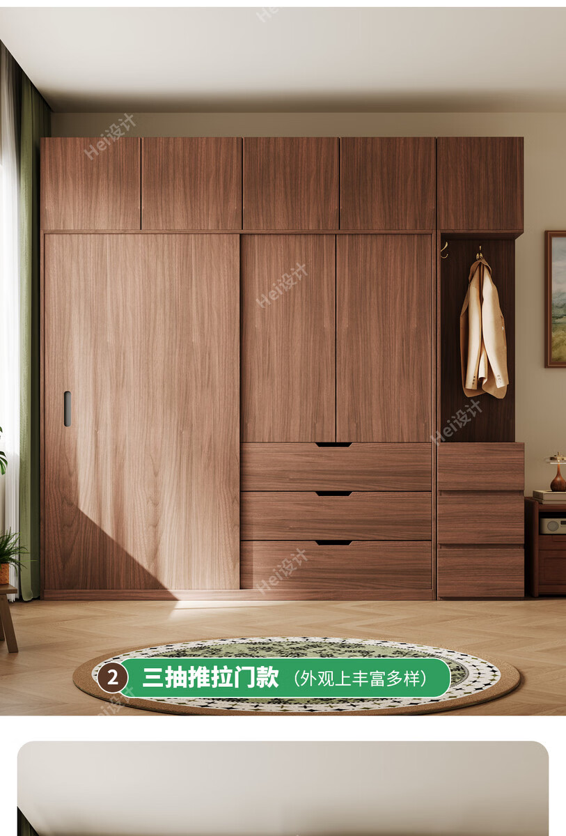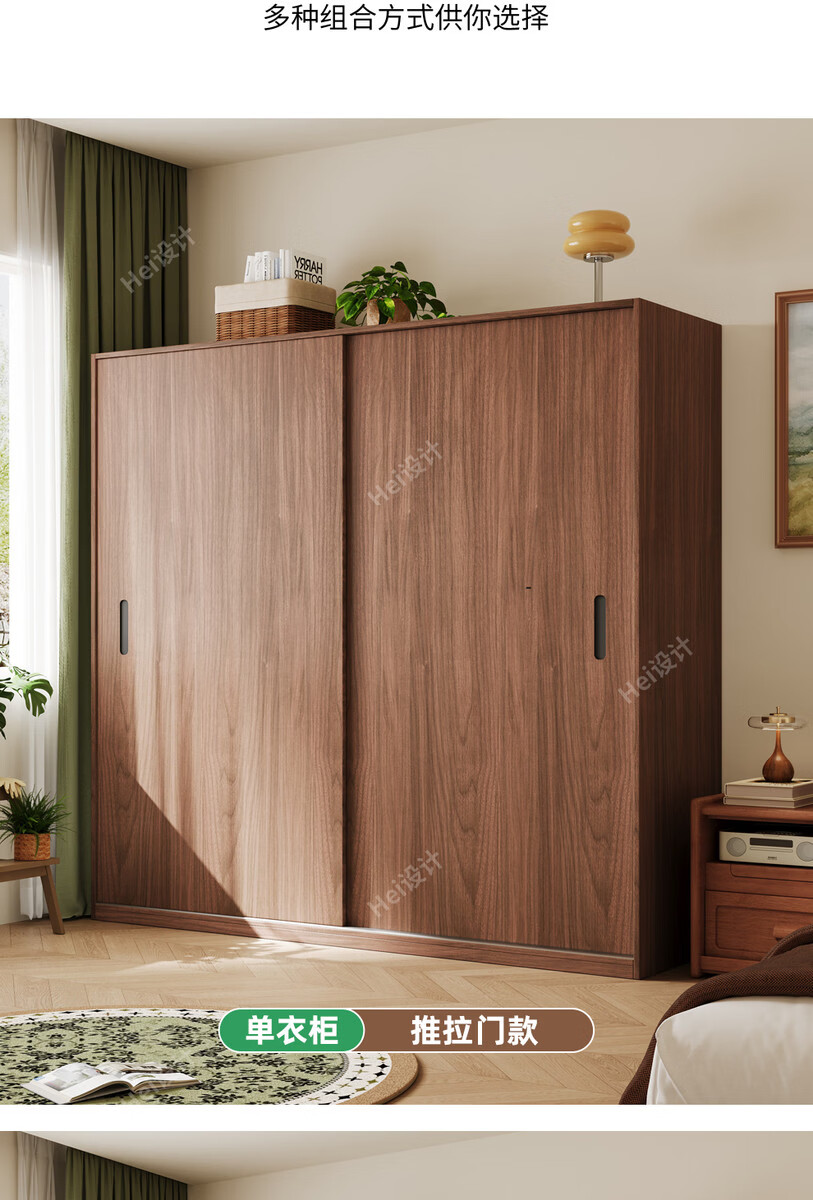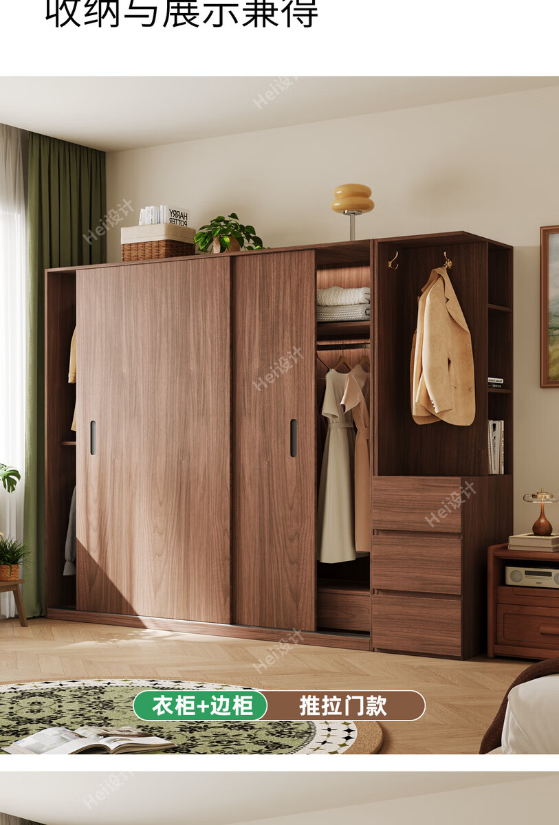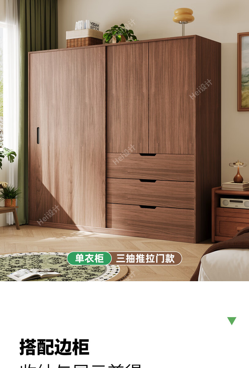 溥畔2026新款爆款欧松板推拉门衣柜卧室收纳柜子小户型移滑门衣橱 2.0米二门衣柜+顶柜+边柜[2.58米高](三抽