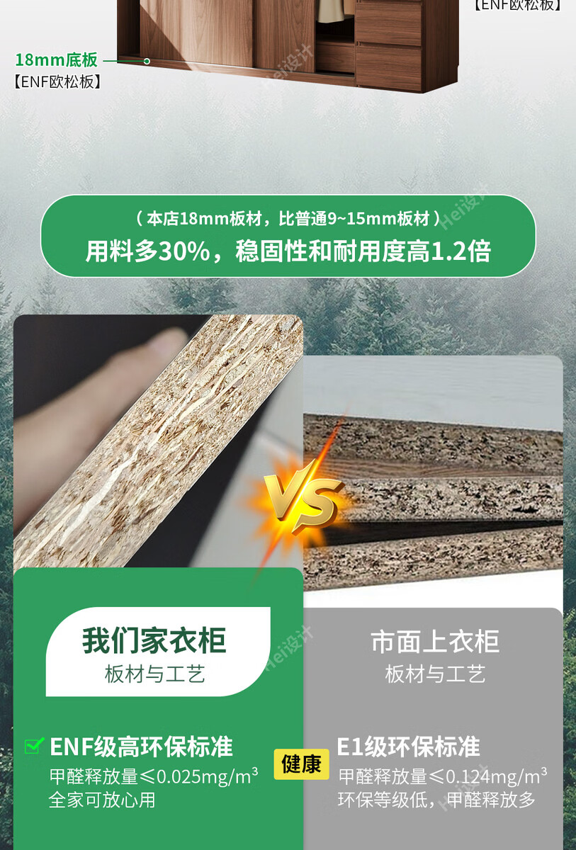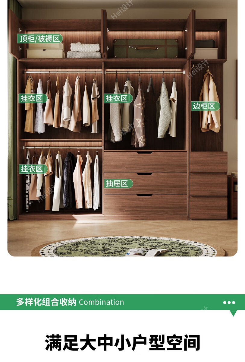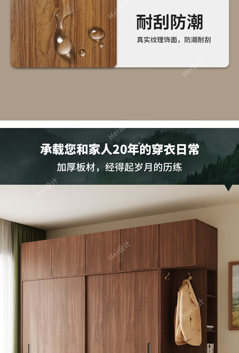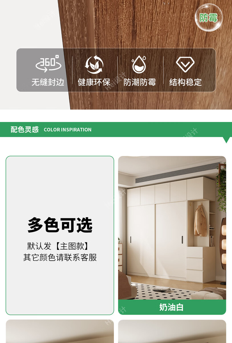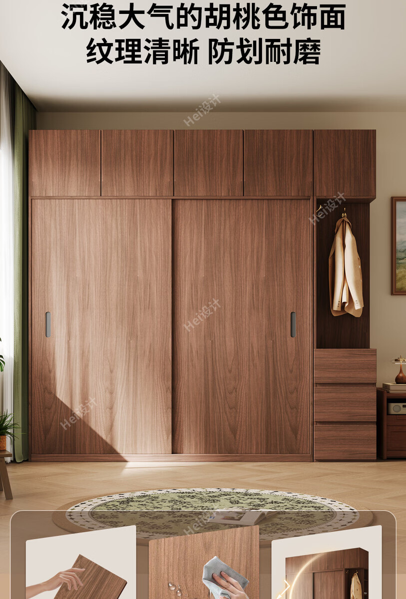 溥畔2026新款爆款欧松板推拉门衣柜卧室收纳柜子小户型移滑门衣橱 2.0米二门衣柜+顶柜+边柜[2.58米高](三抽