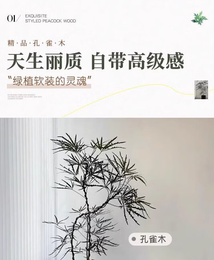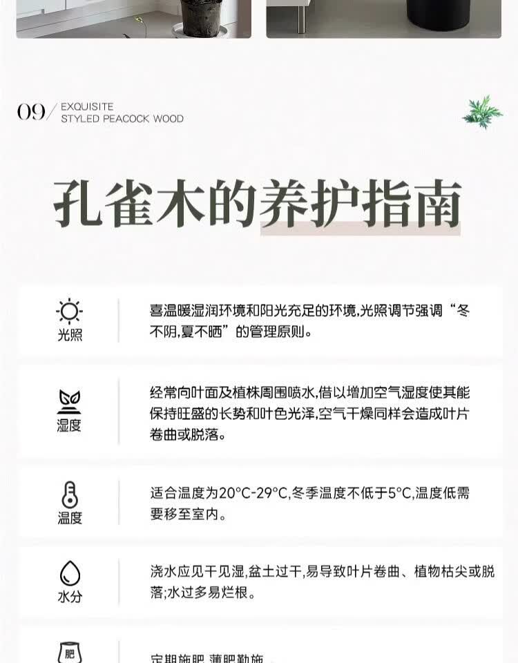 雅致孔雀木绿植室内大型盆栽客厅办公室网红观叶植物落地大号四季好养 精品飘枝孔雀木1.7-1.9米【白色仿直筒树脂盆】