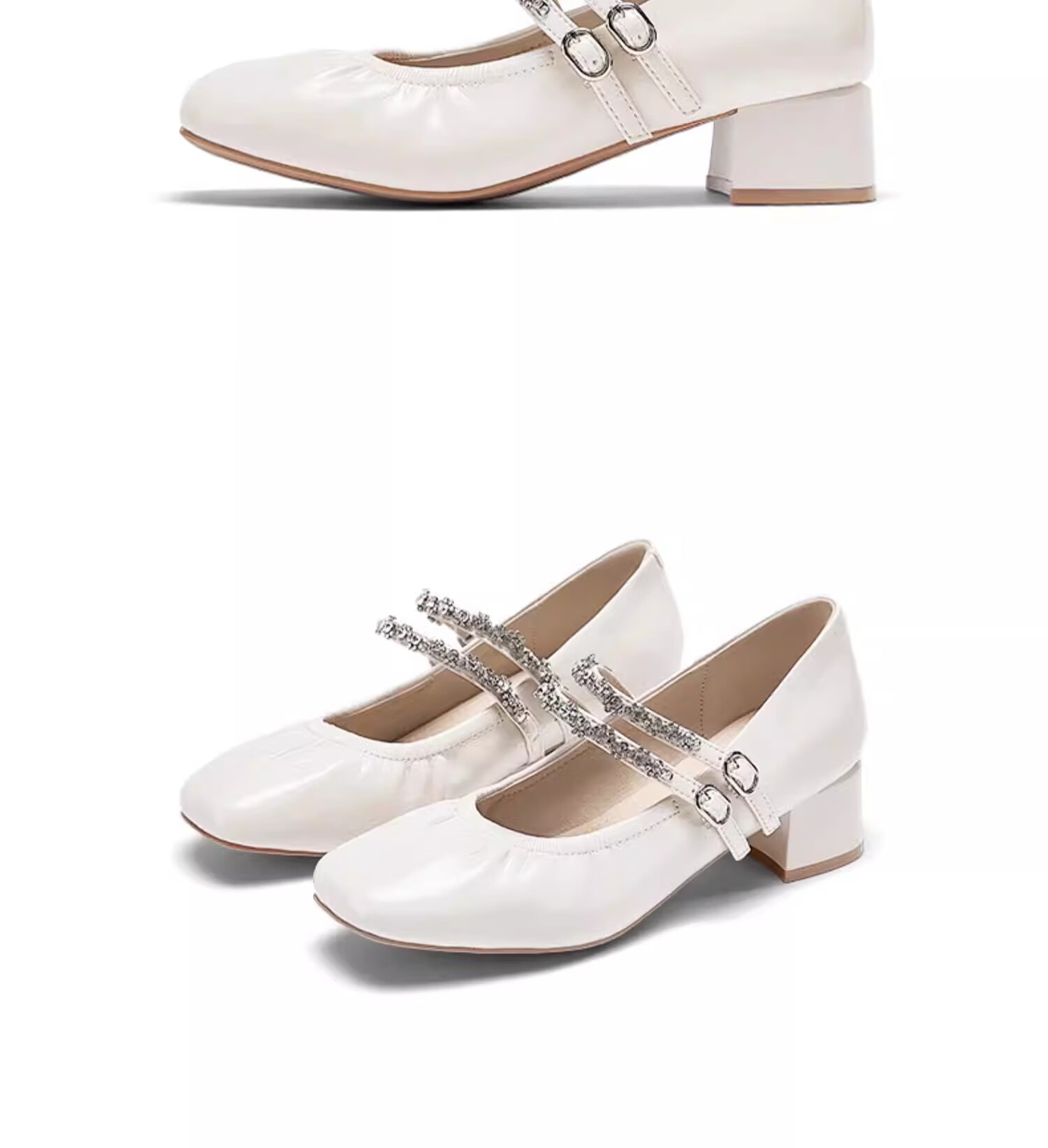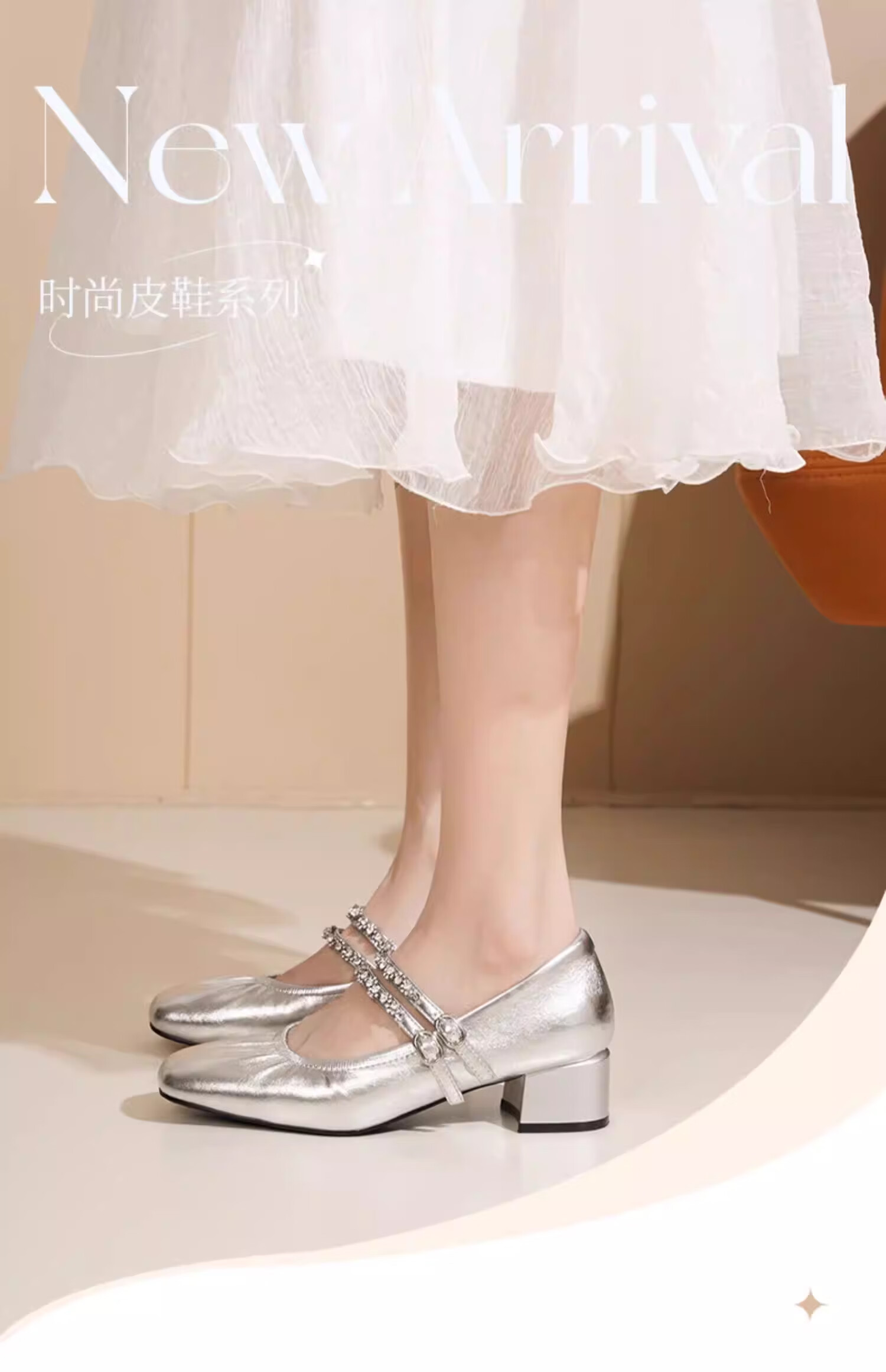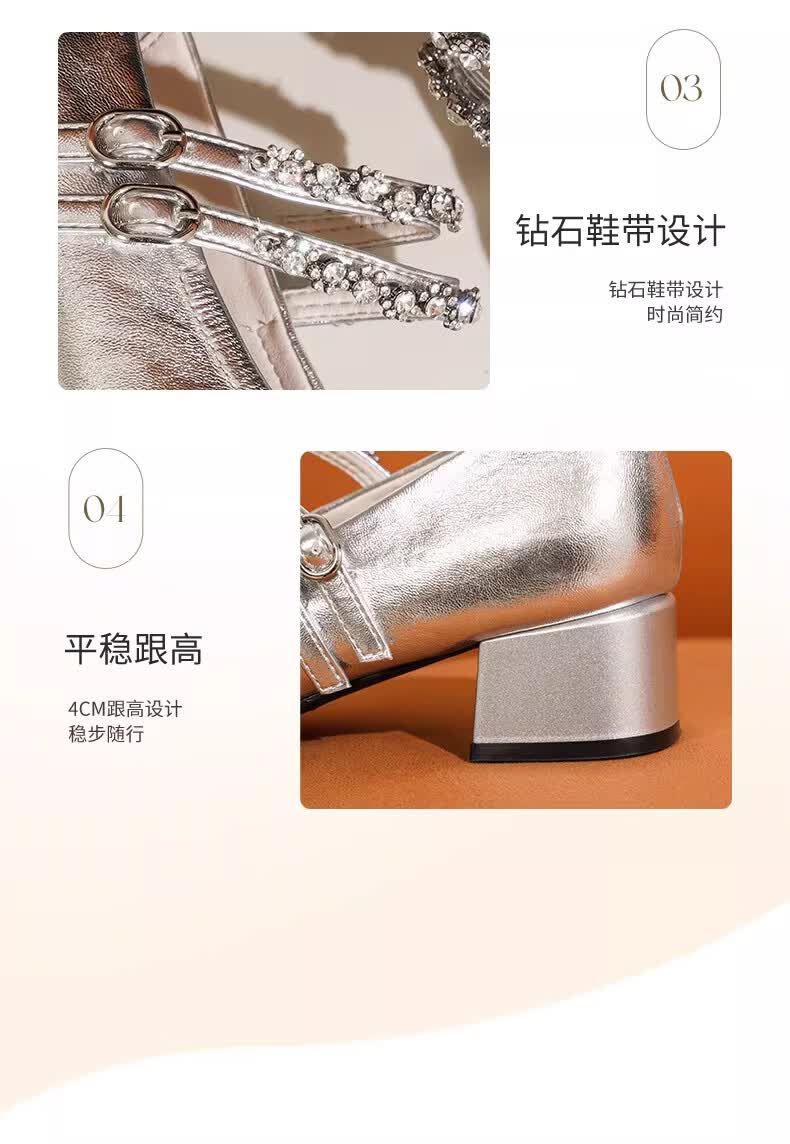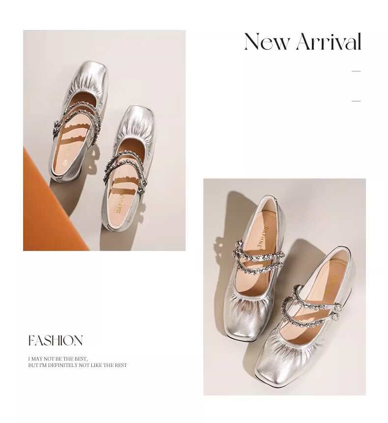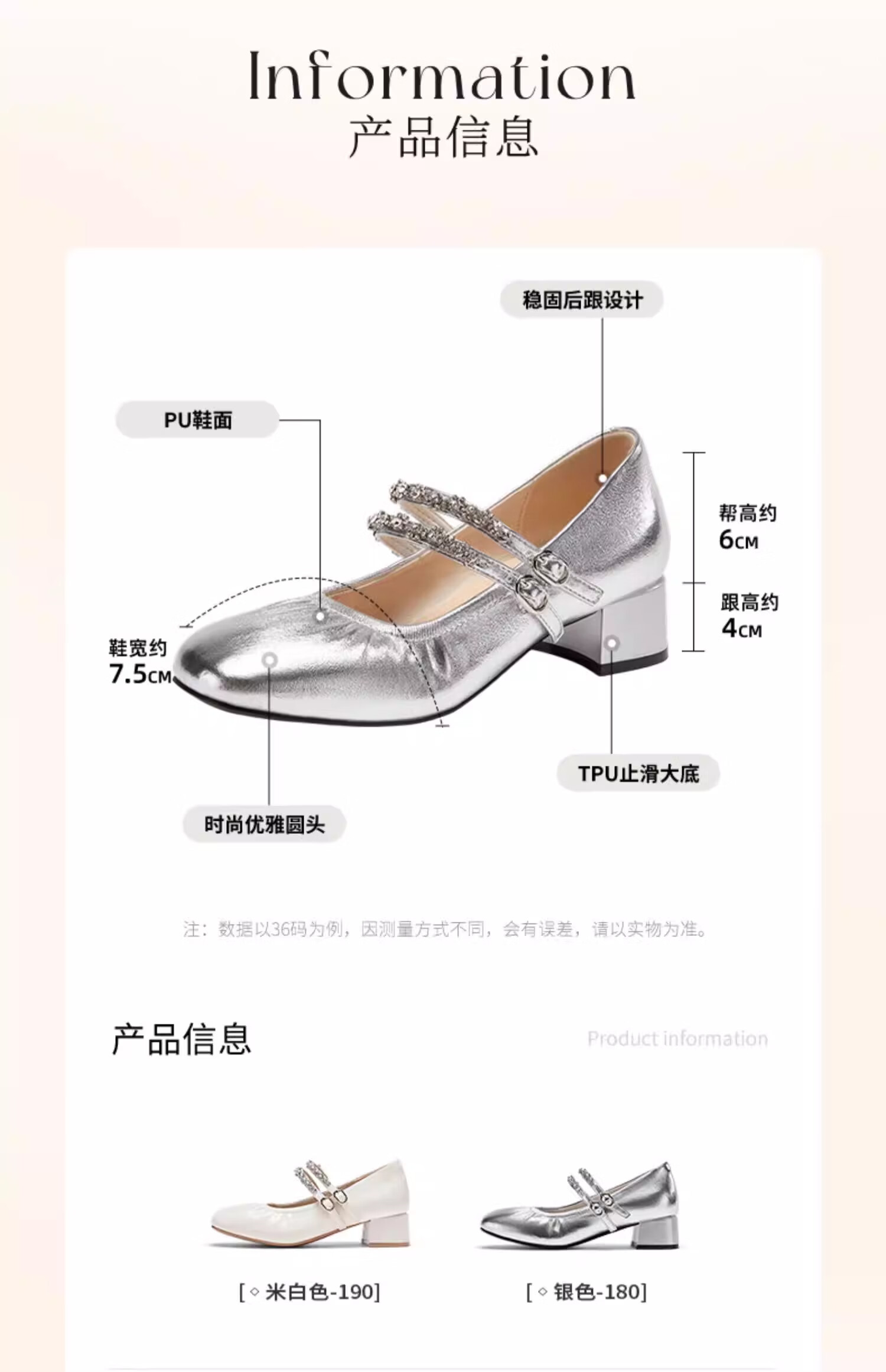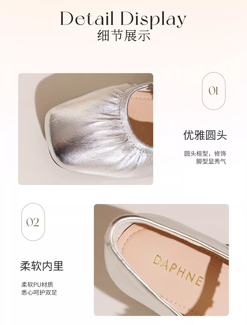 达芙妮银色单鞋女新品2026春夏爆款软底芭蕾舞鞋法式浅口玛丽珍女鞋ZJ 米白色双带【4cm粗跟】 37