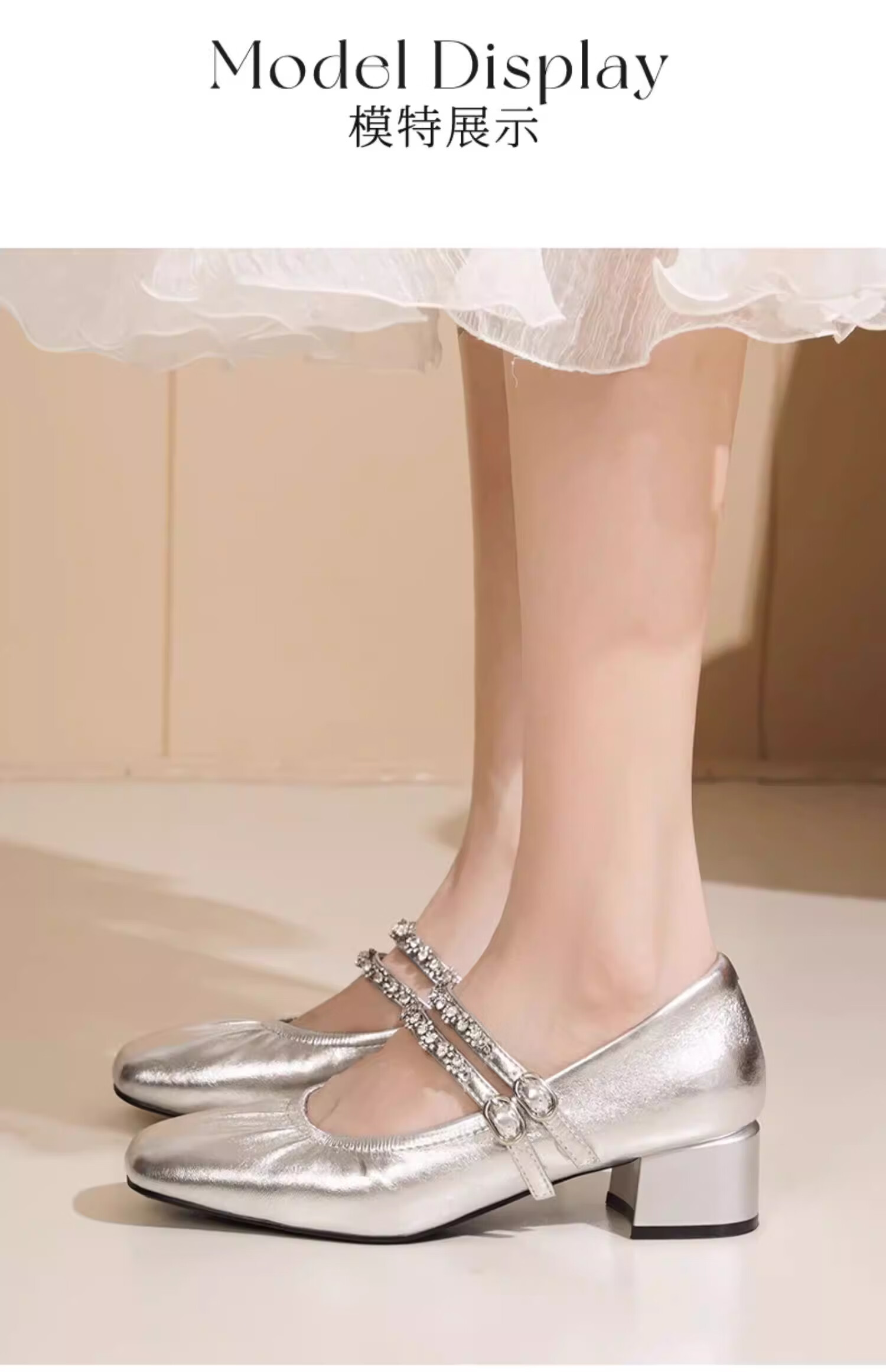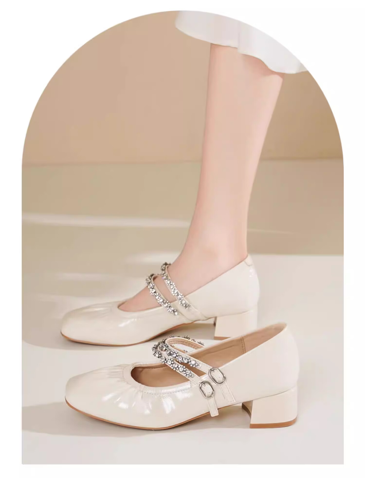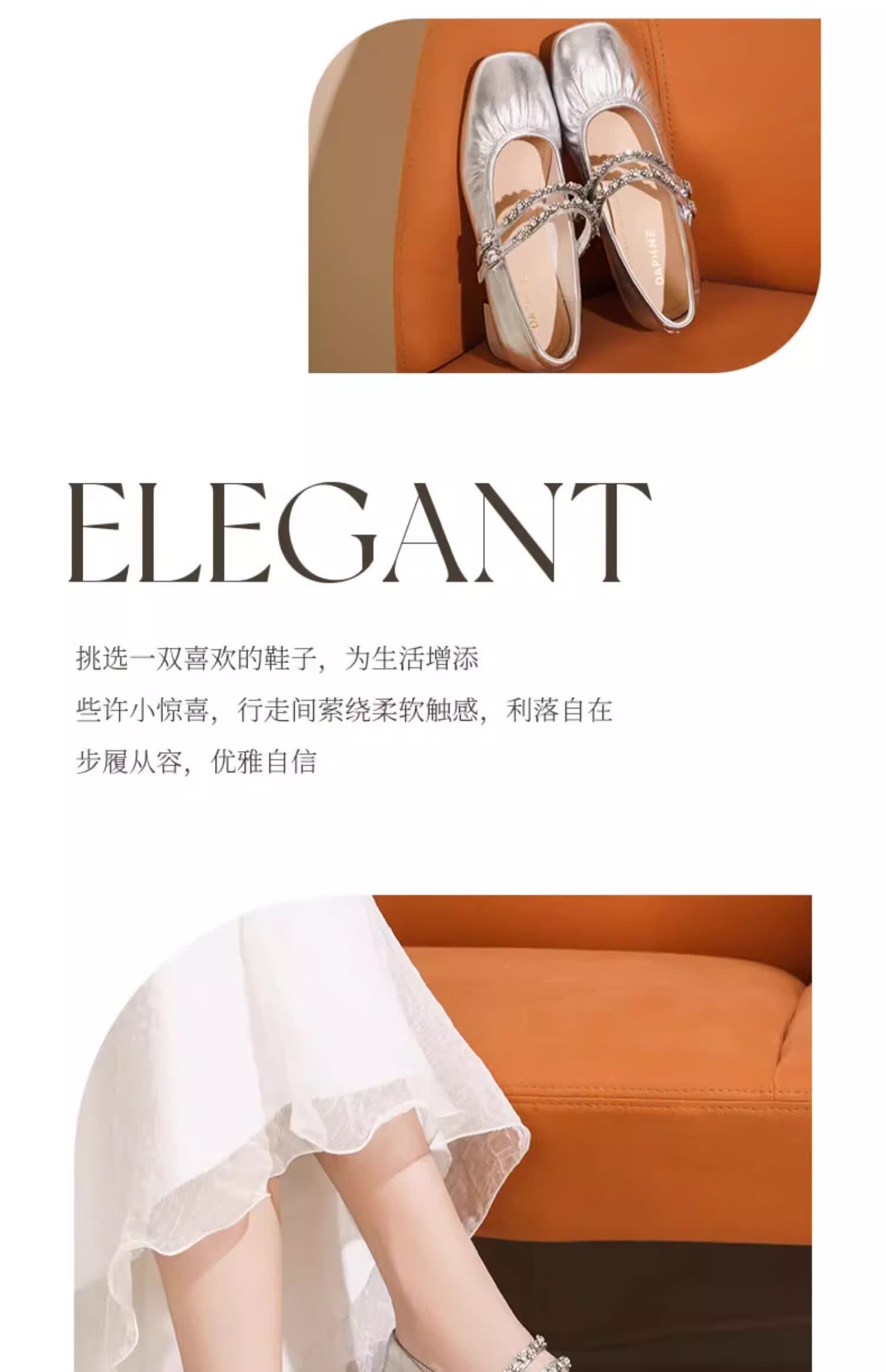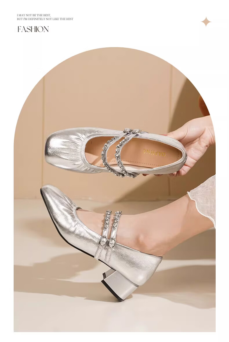达芙妮银色单鞋女新品2026春夏爆款软底芭蕾舞鞋法式浅口玛丽珍女鞋ZJ 米白色双带【4cm粗跟】 37
