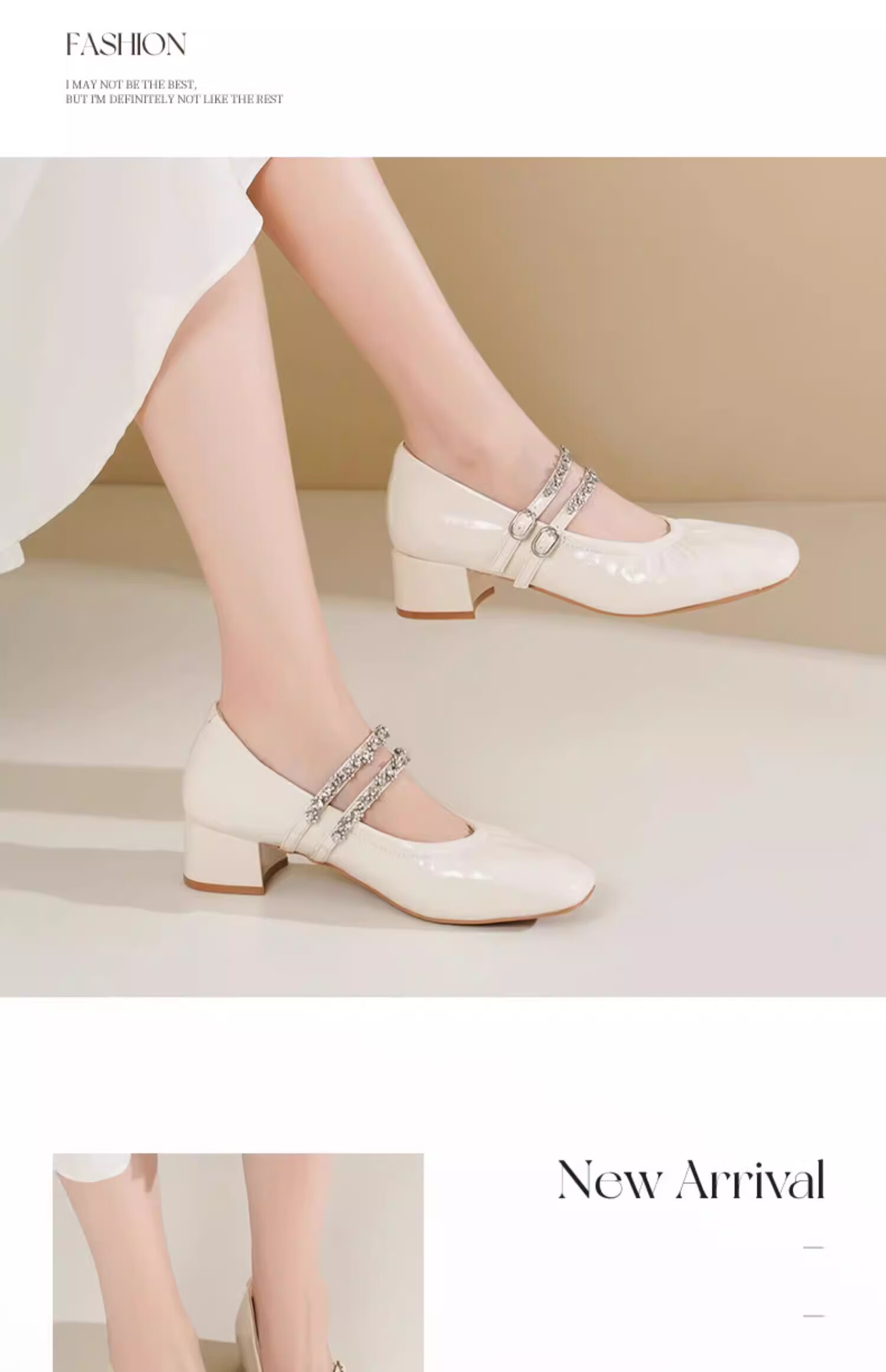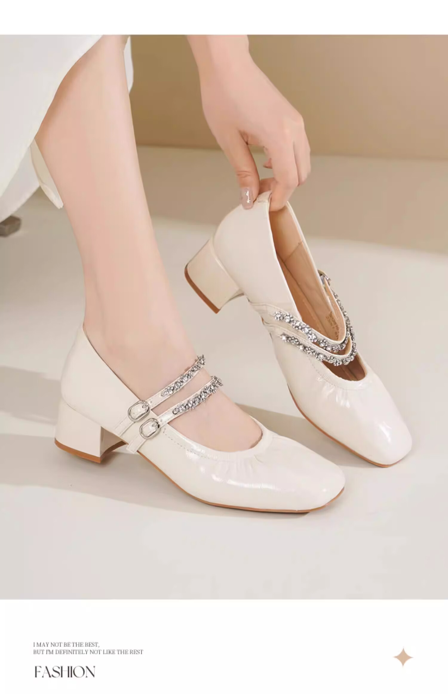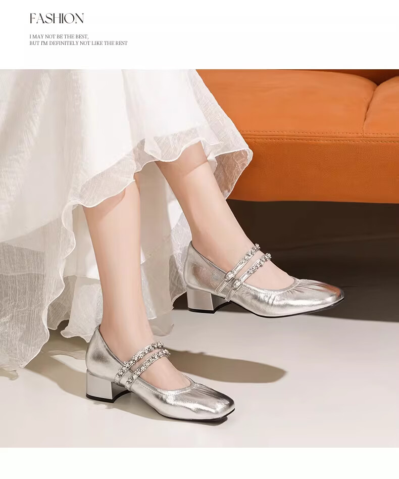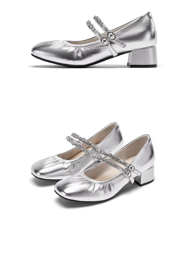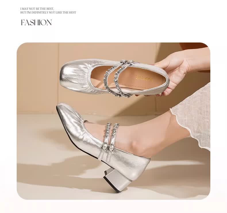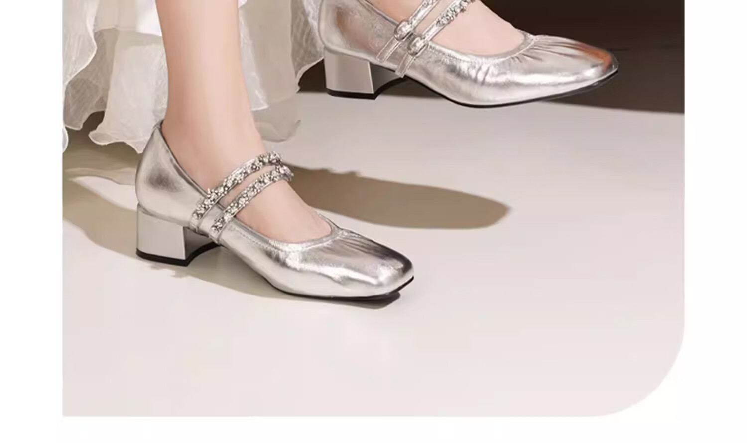 达芙妮银色单鞋女新品2026春夏爆款软底芭蕾舞鞋法式浅口玛丽珍女鞋ZJ 米白色双带【4cm粗跟】 37