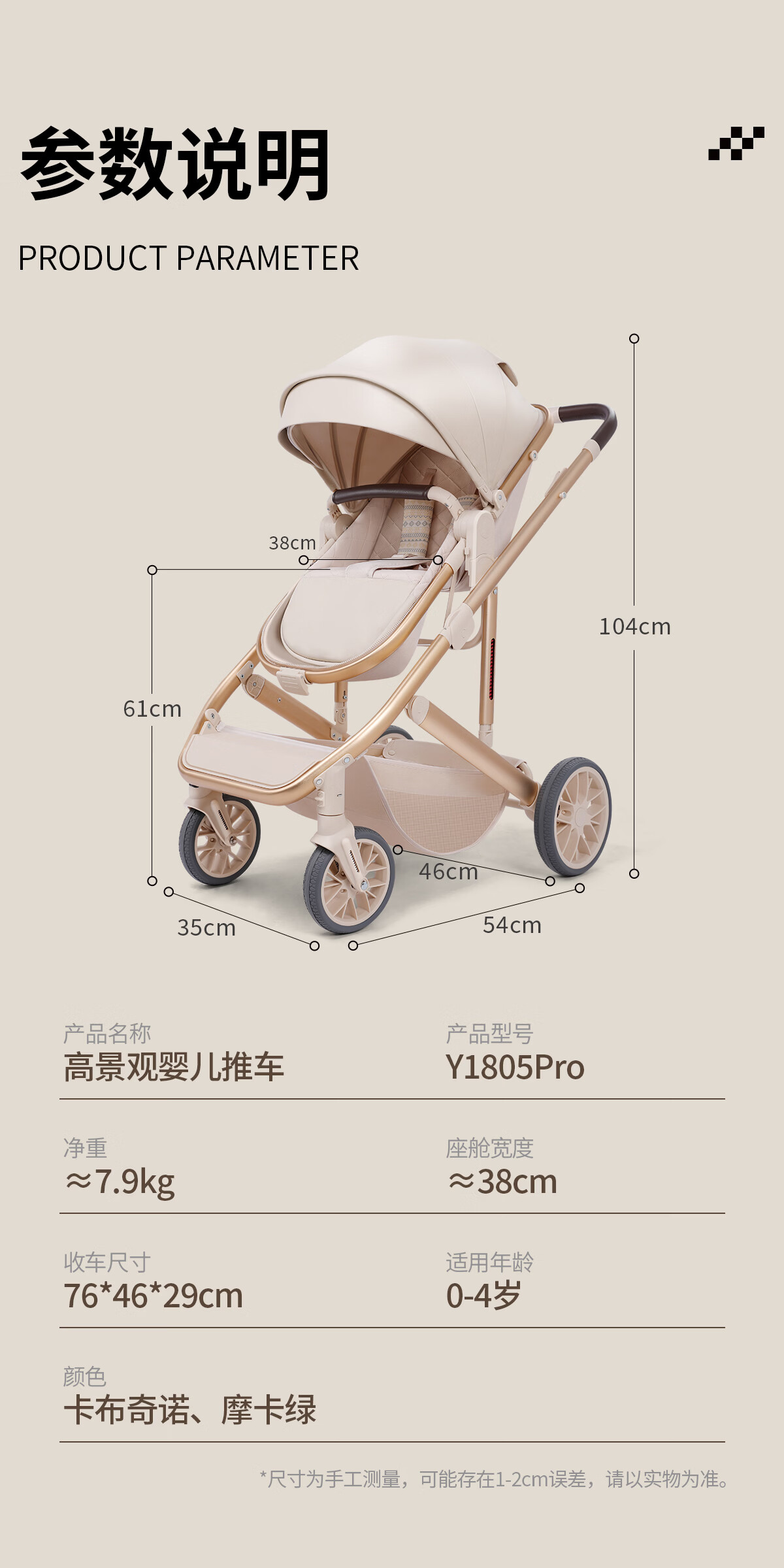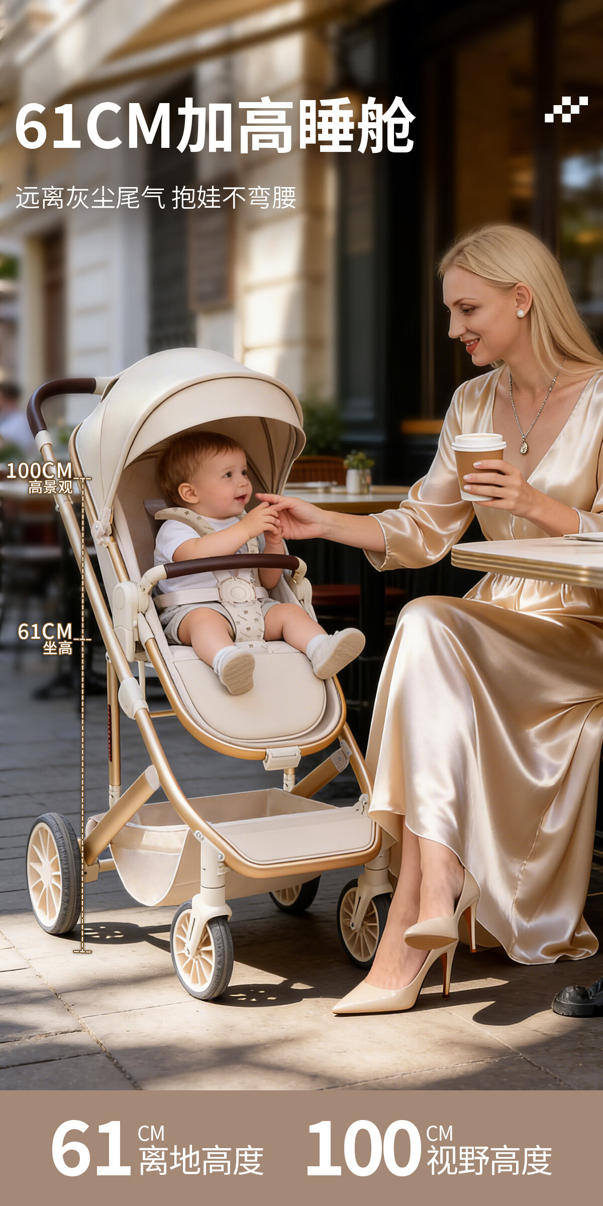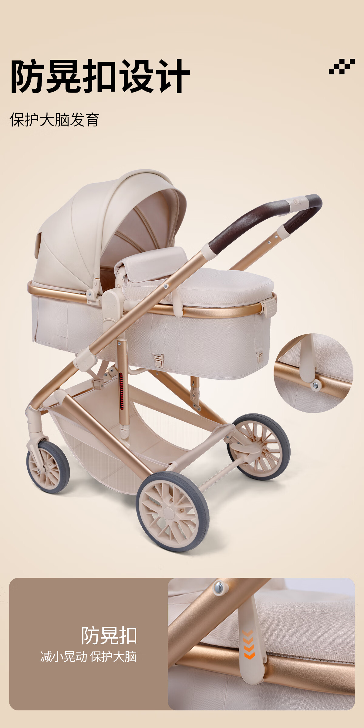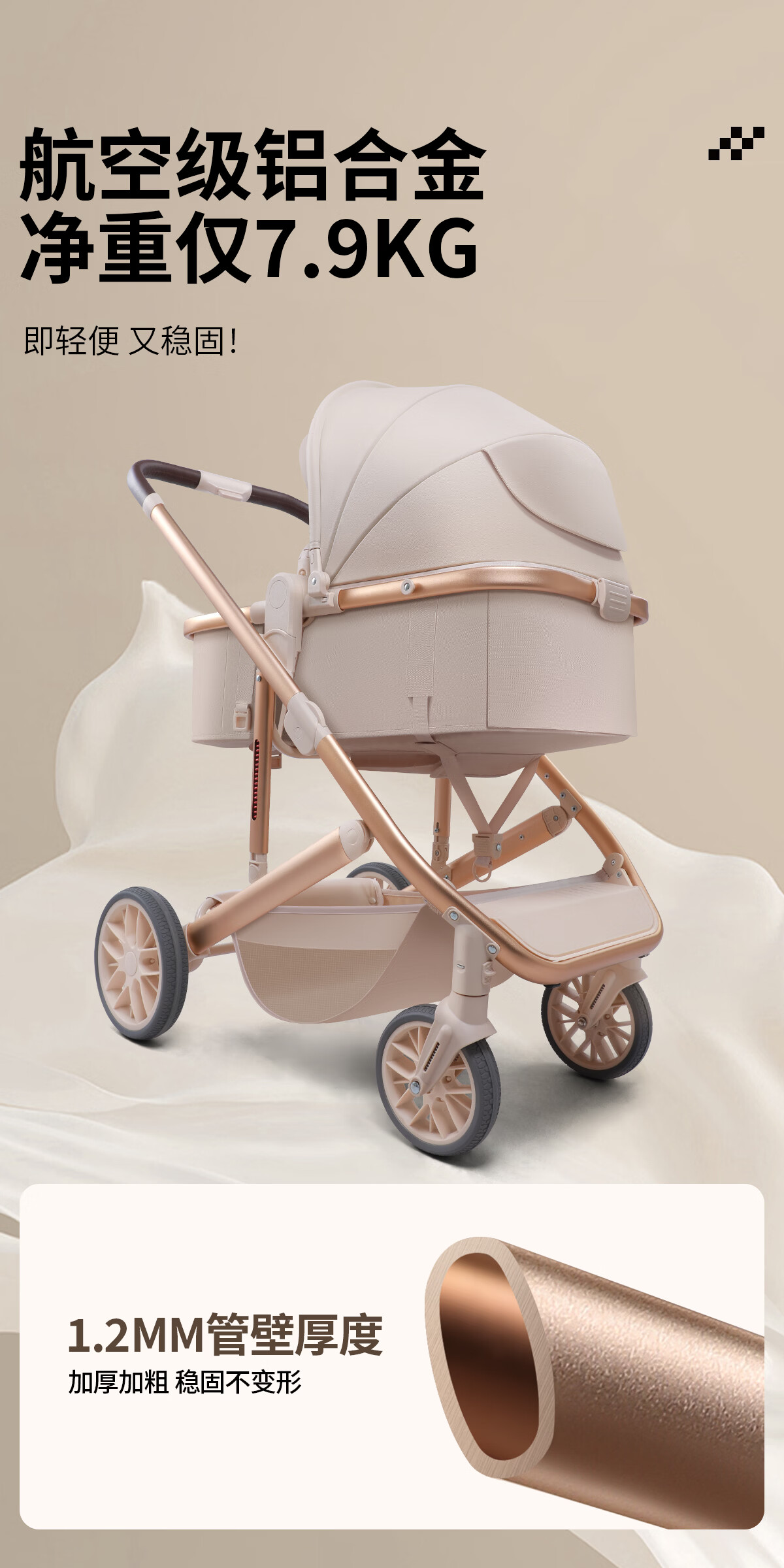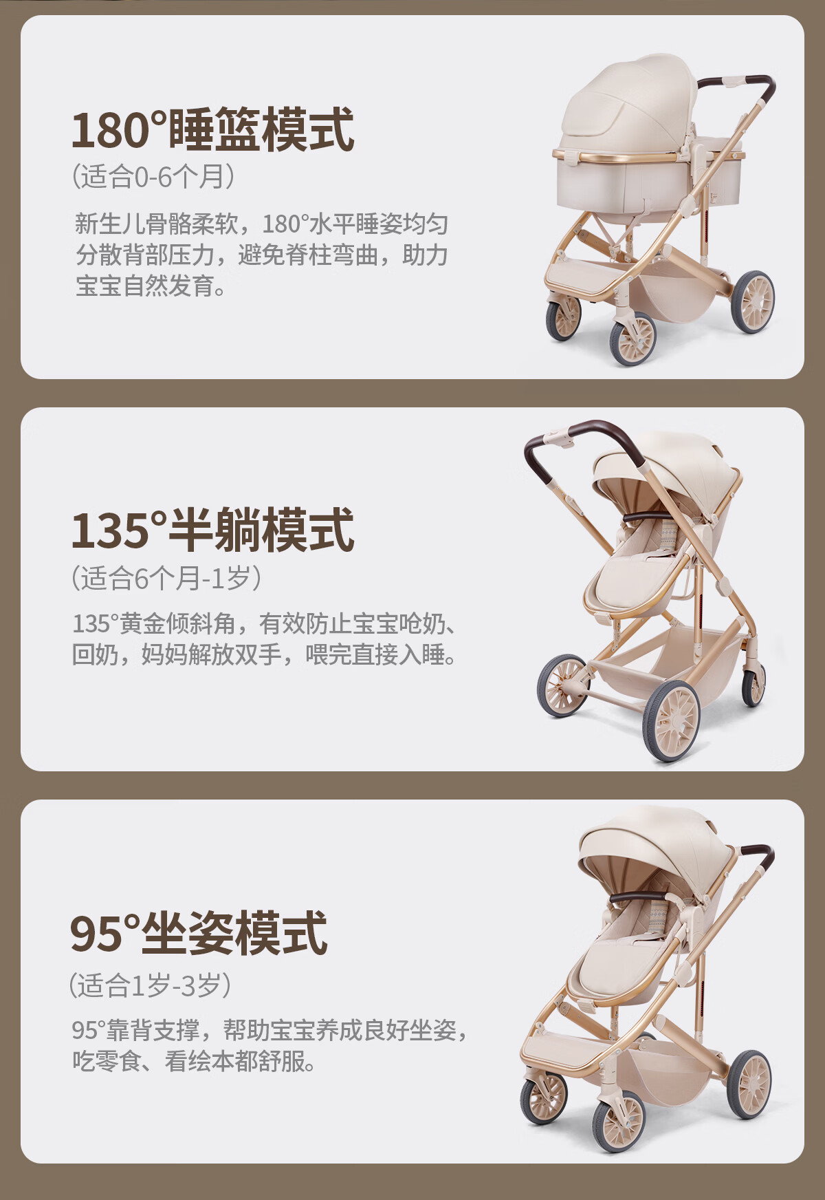 TianRui婴儿推车0-3岁可坐可躺一键折叠高景观轻便避震新生儿宝宝婴儿车 摩卡绿-探险家【云感悬浮舱】