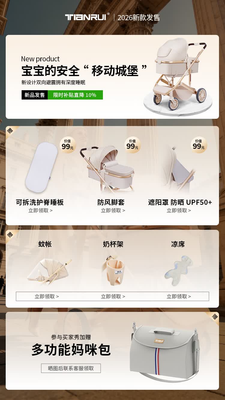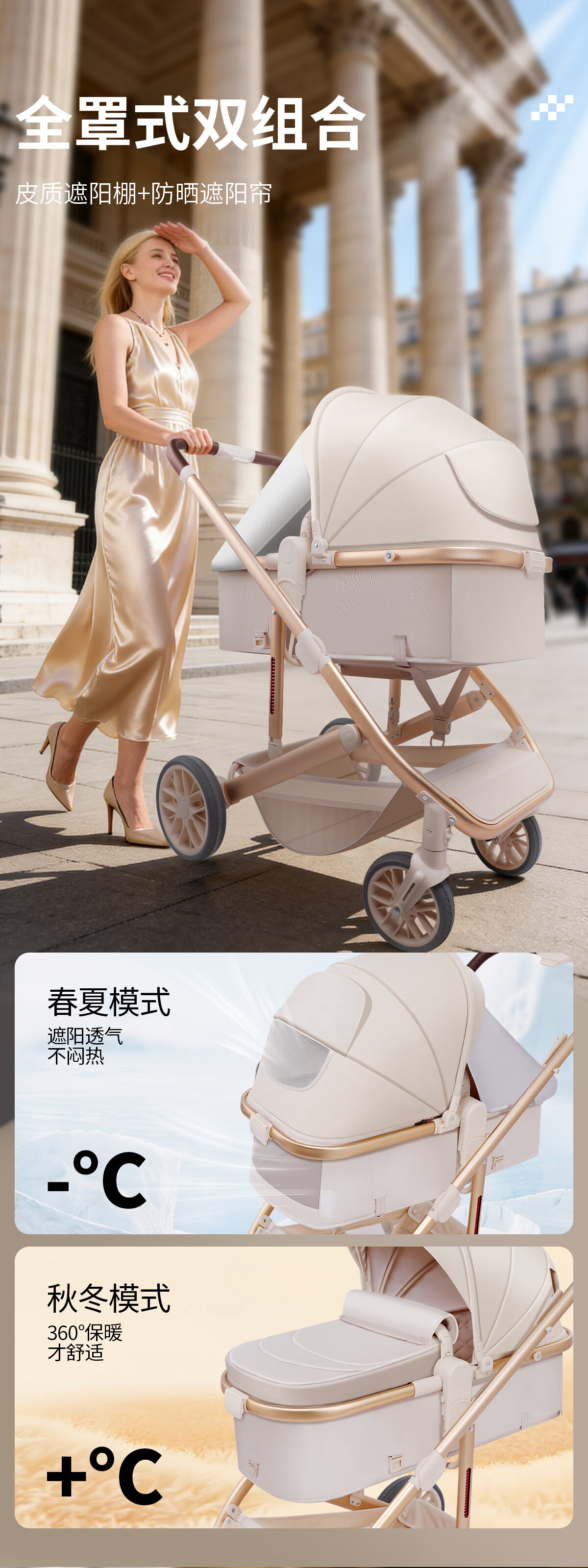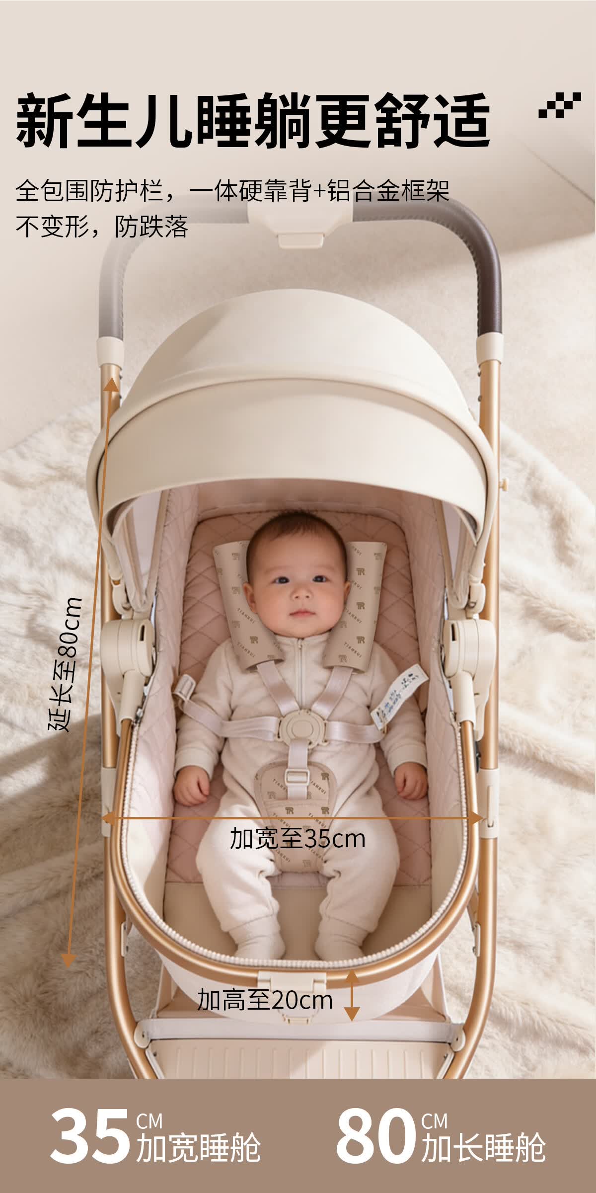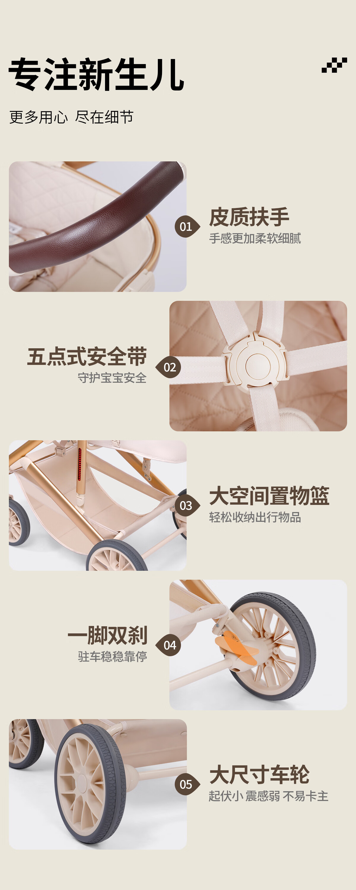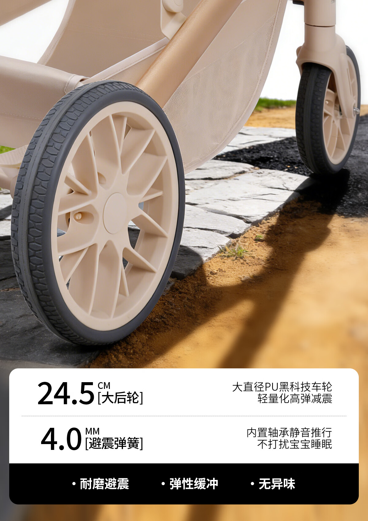 TianRui婴儿推车0-3岁可坐可躺一键折叠高景观轻便避震新生儿宝宝婴儿车 摩卡绿-探险家【云感悬浮舱】