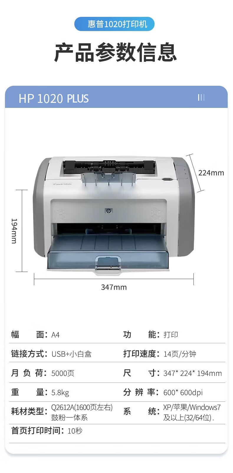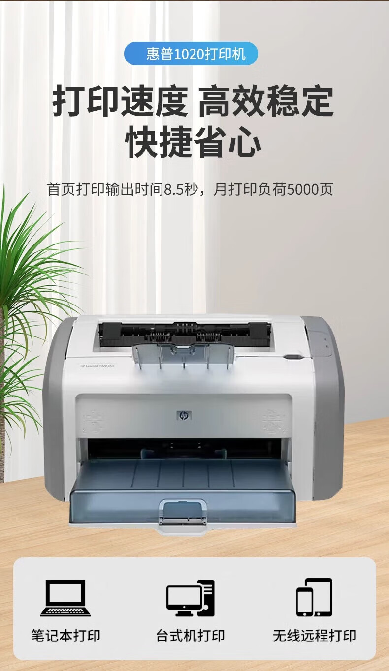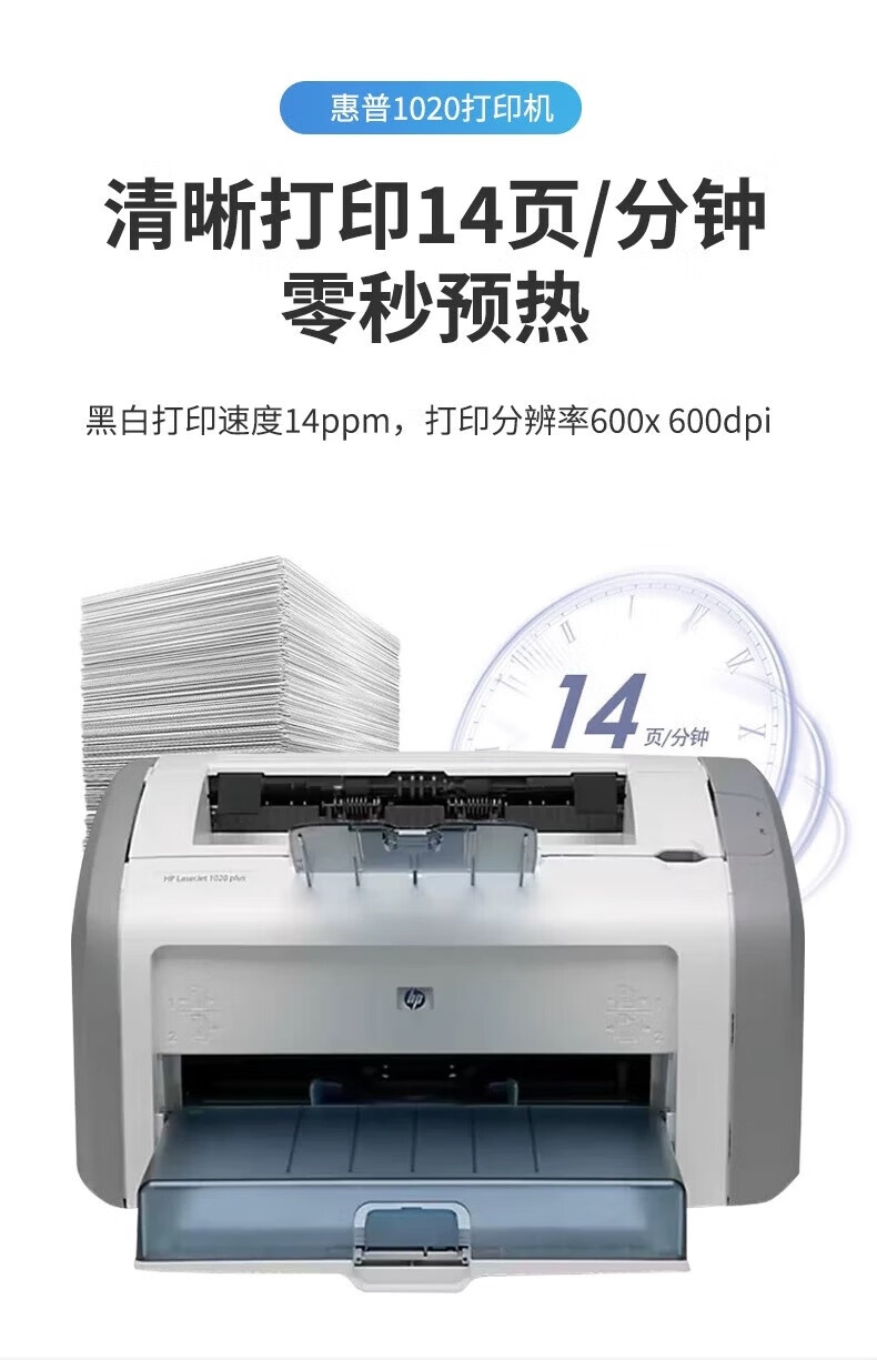 惠普(HP)全新HP1020plus打印机经典黑白A4激光财务家用办公学生选支持手机 HP1020PLUS【含一个原装硒鼓】 官方标配(电脑使用)