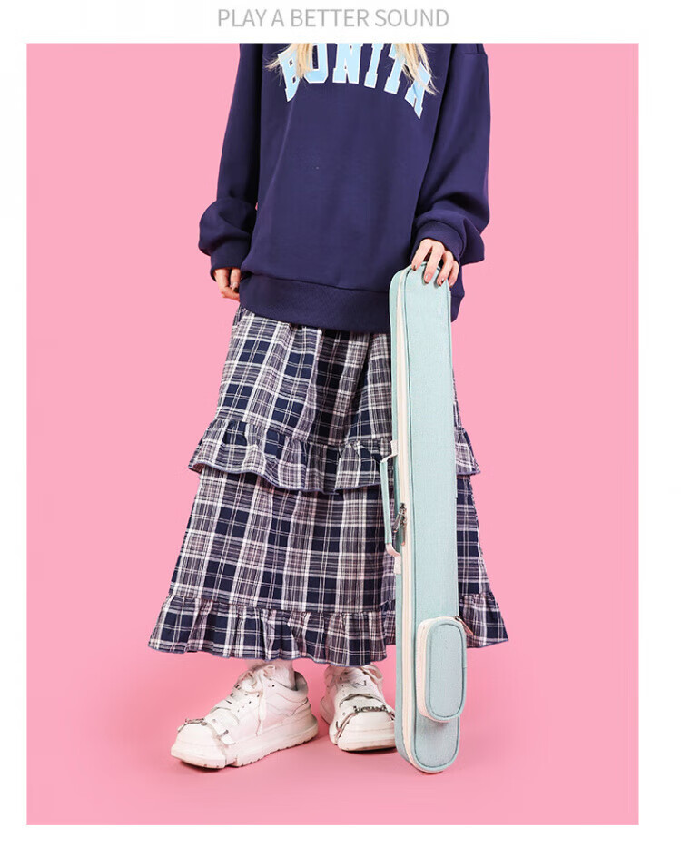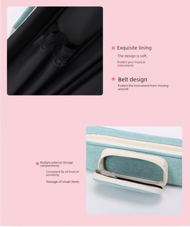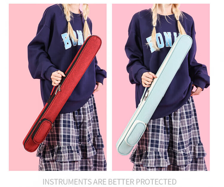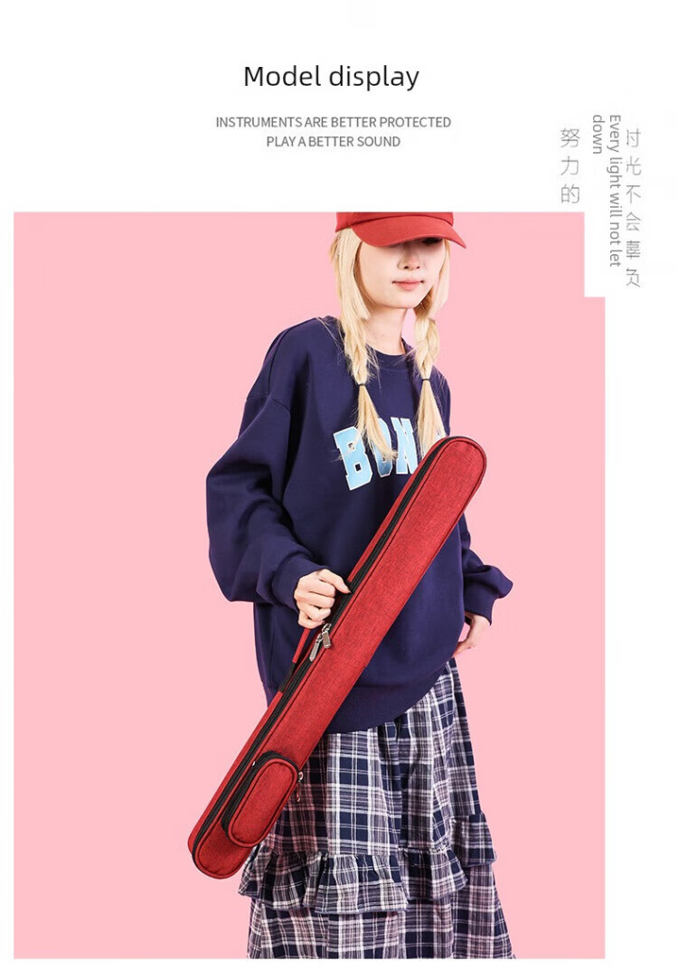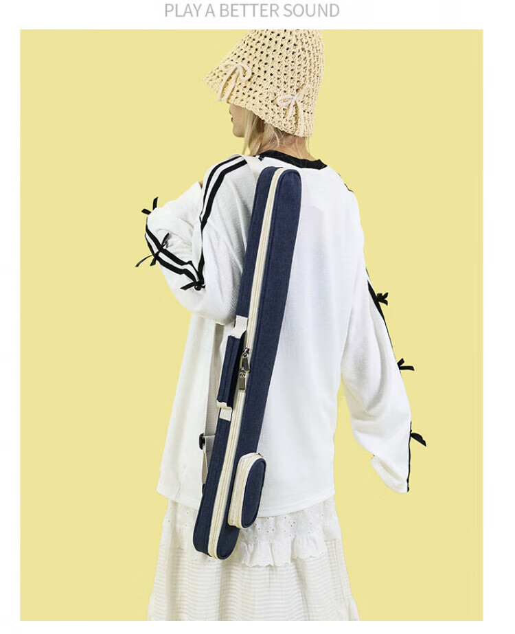 DEATKN德国长笛化妆品袋竹笛袋便携式学生长笛保护套袋加厚防水长笛盒管 (带兜款)浅蓝色小号笛子包