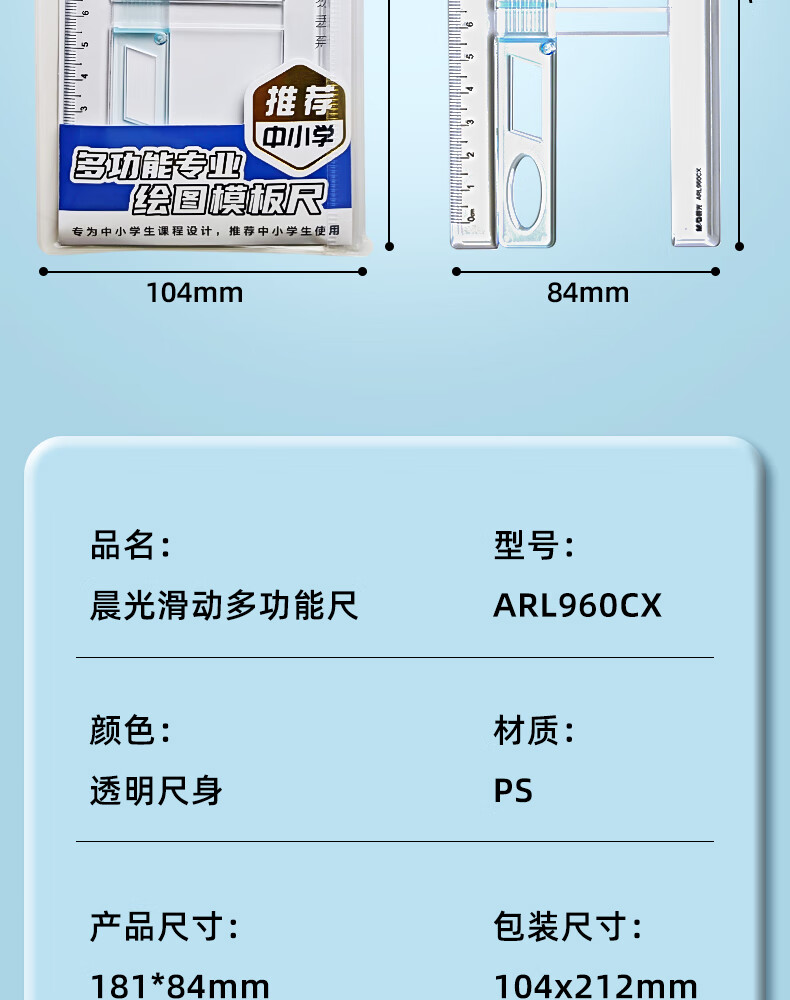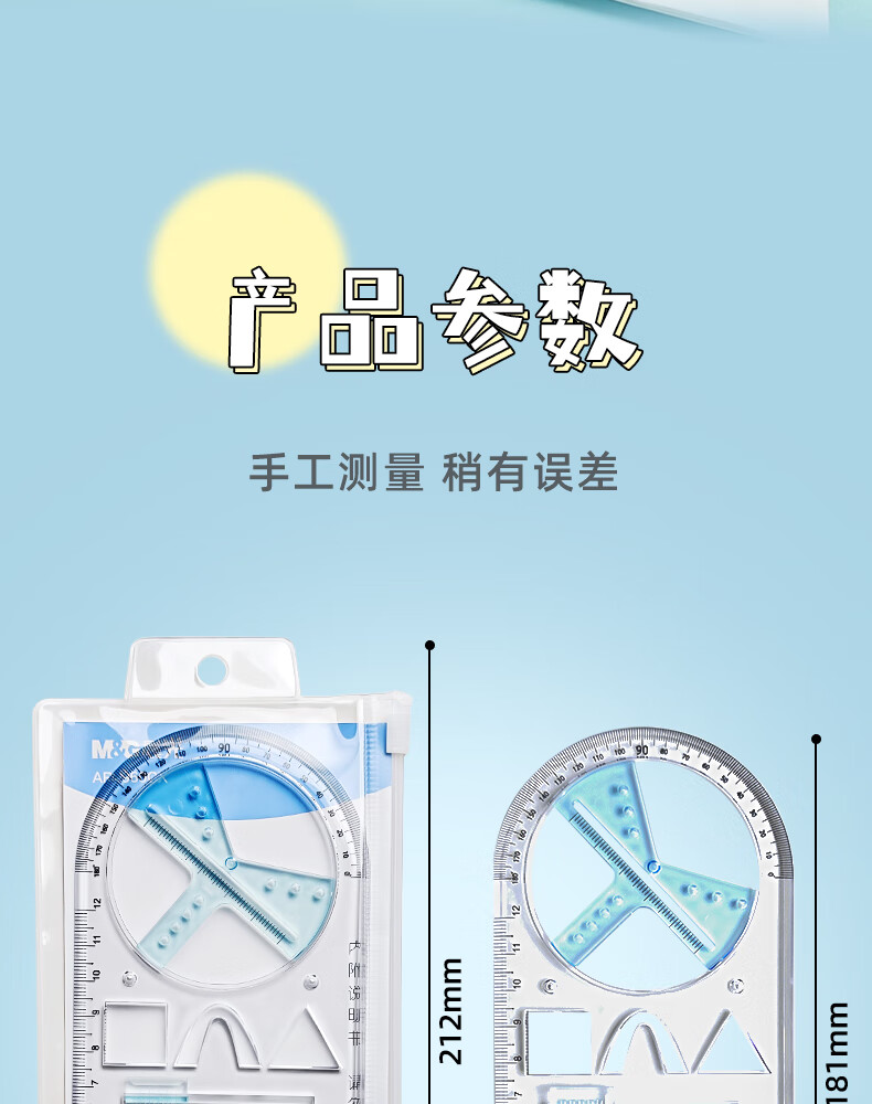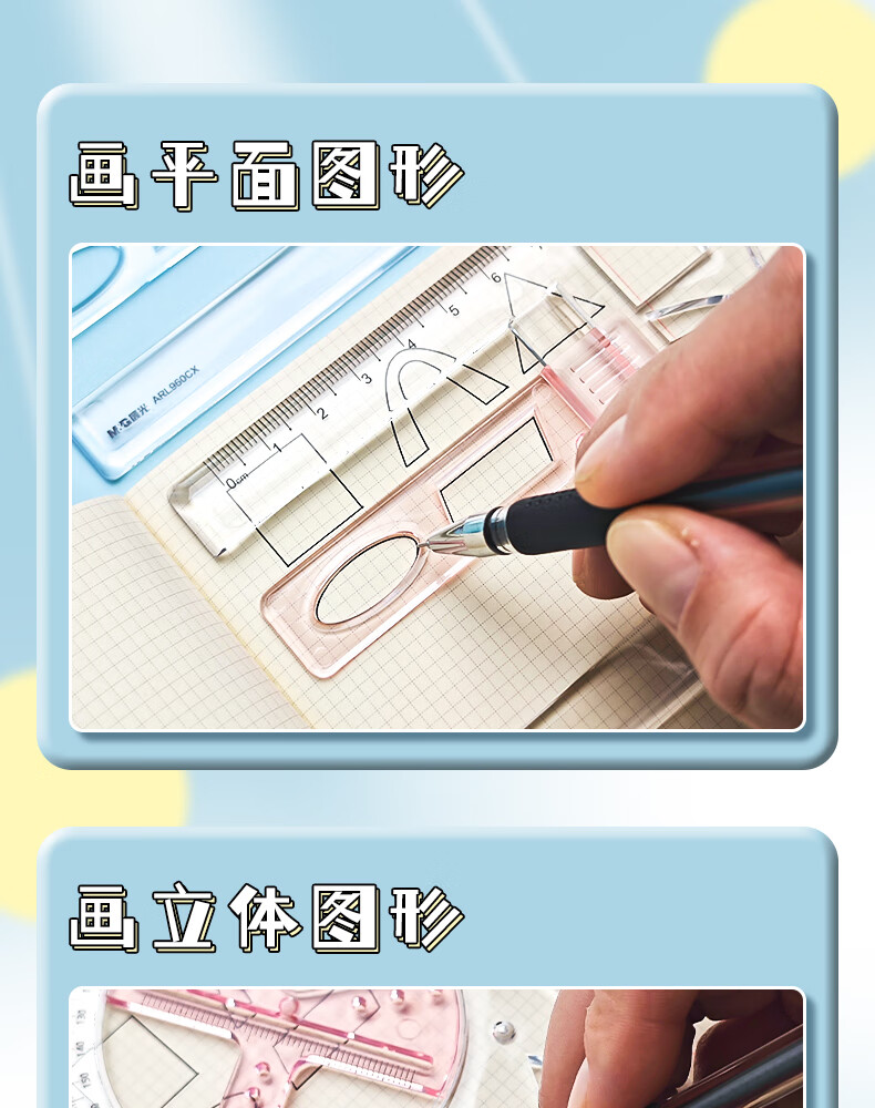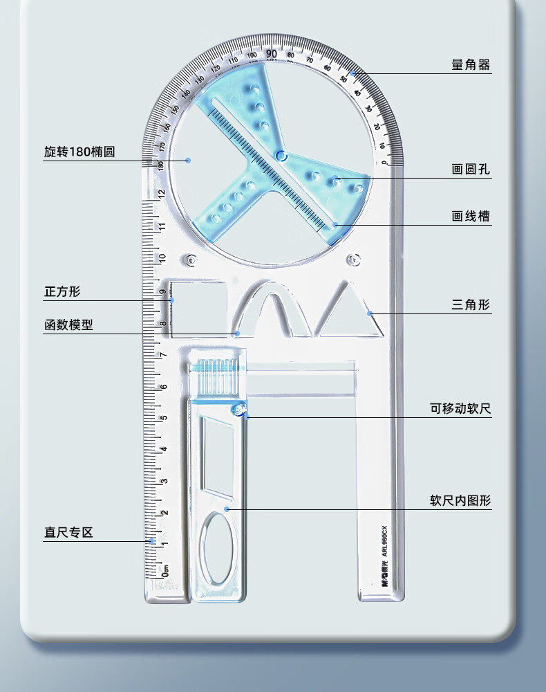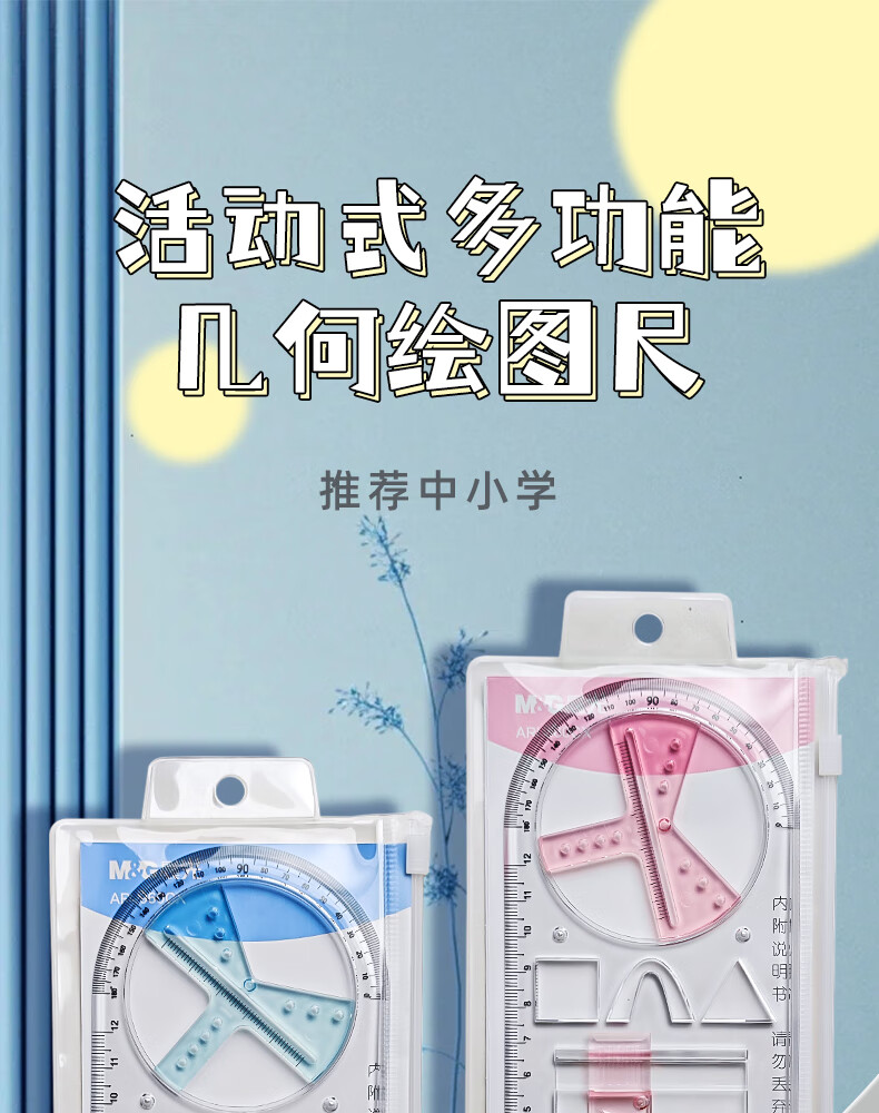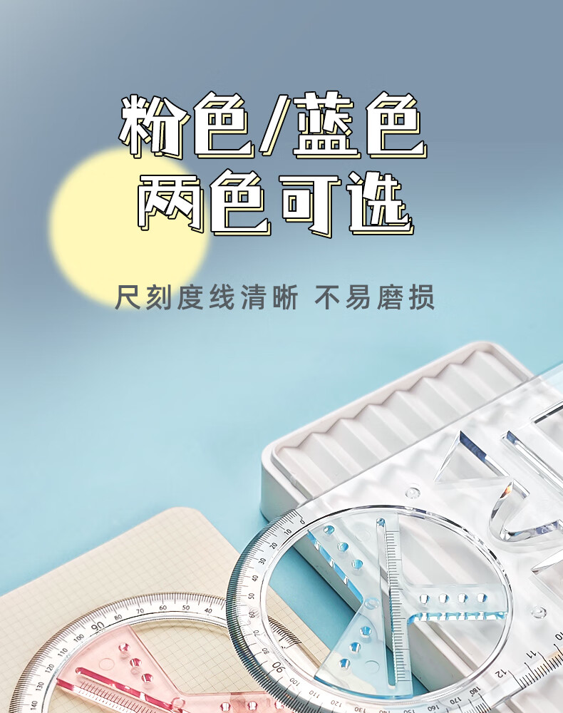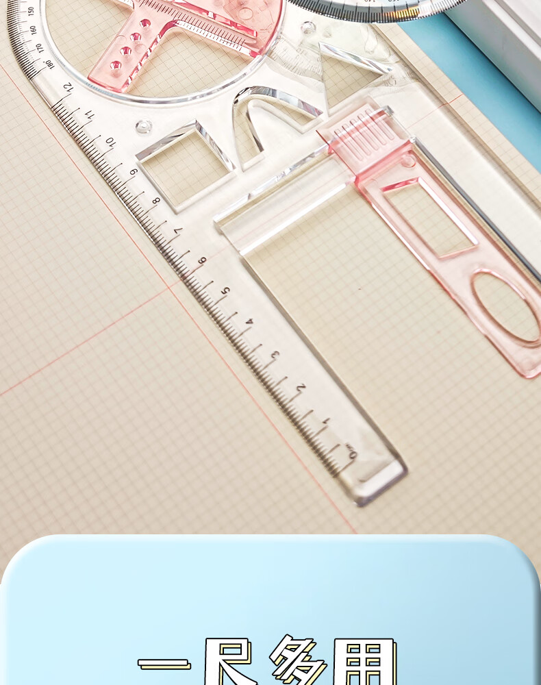 晨光(M&G)晨光活动角多功能尺中学生几何绘图尺初高中几何函数三角尺量角器 【几何函数多功能绘图尺】粉色-推荐中小学 晨光