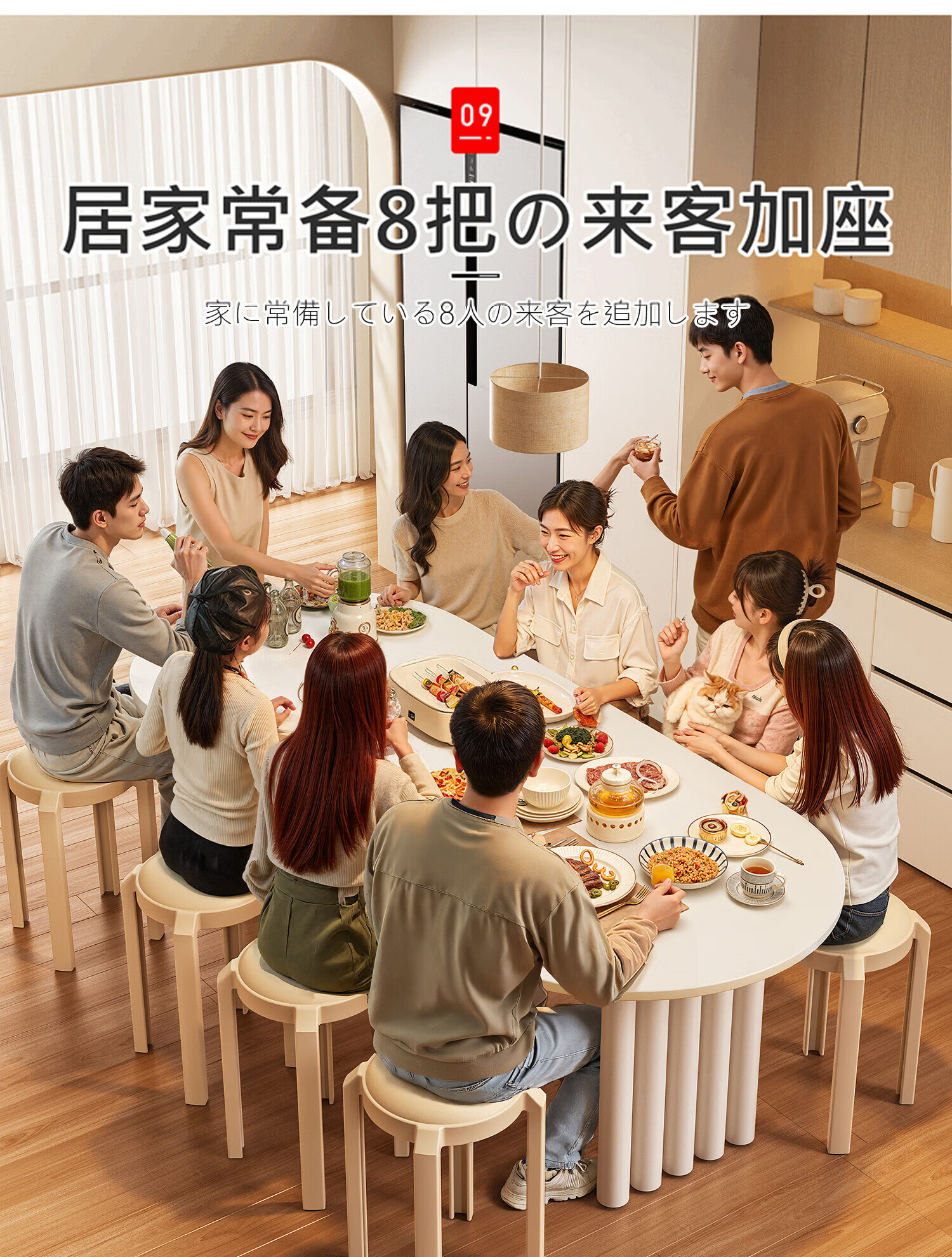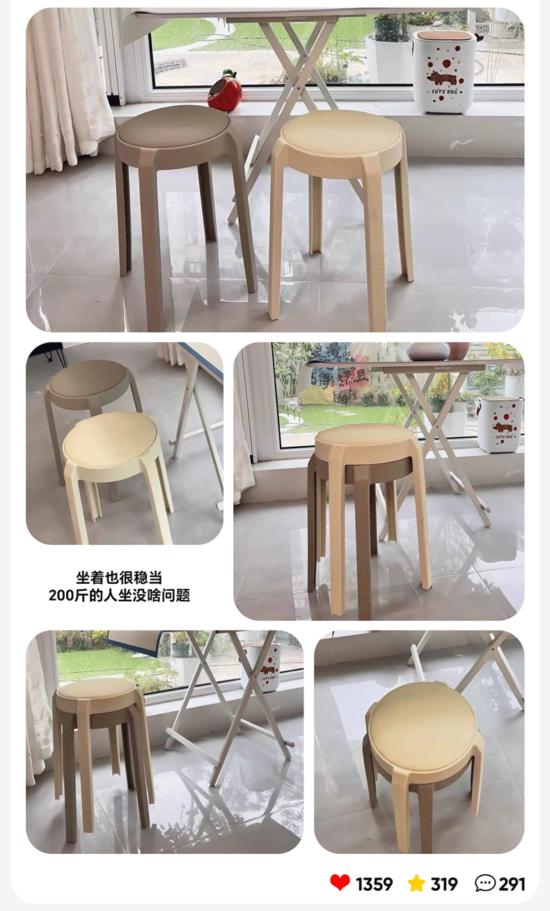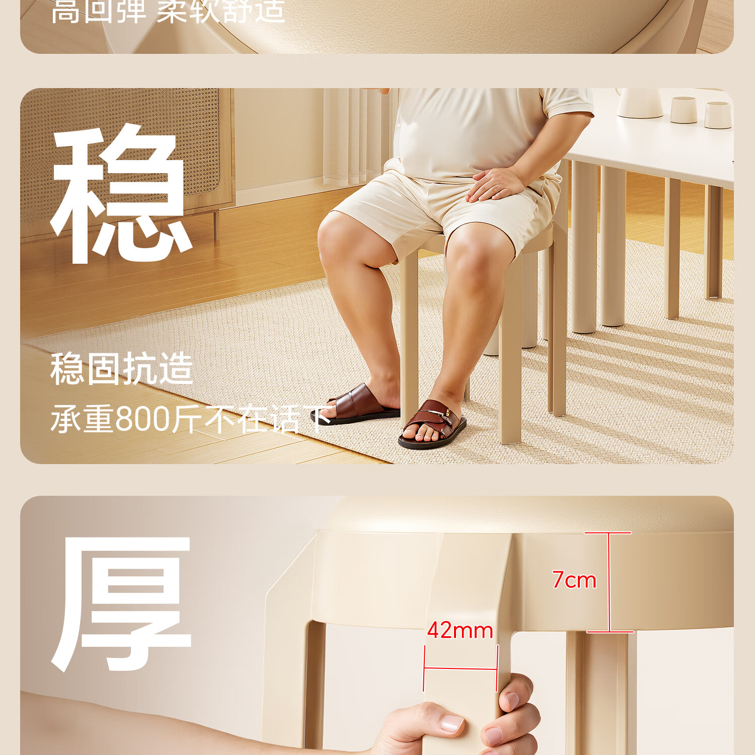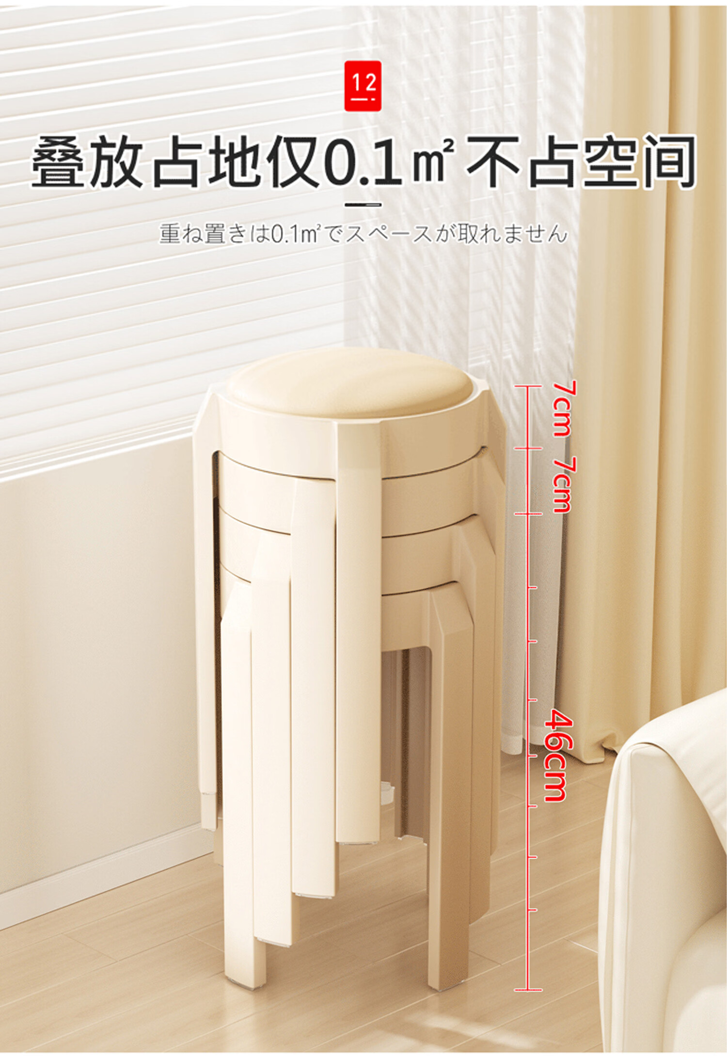 吱凡日本软包皮革塑料凳子家用加厚椅子结实耐用高级感可叠放餐桌圆凳 【出口品质】4把装-立春【高弹云感坐垫-坐坏免单】