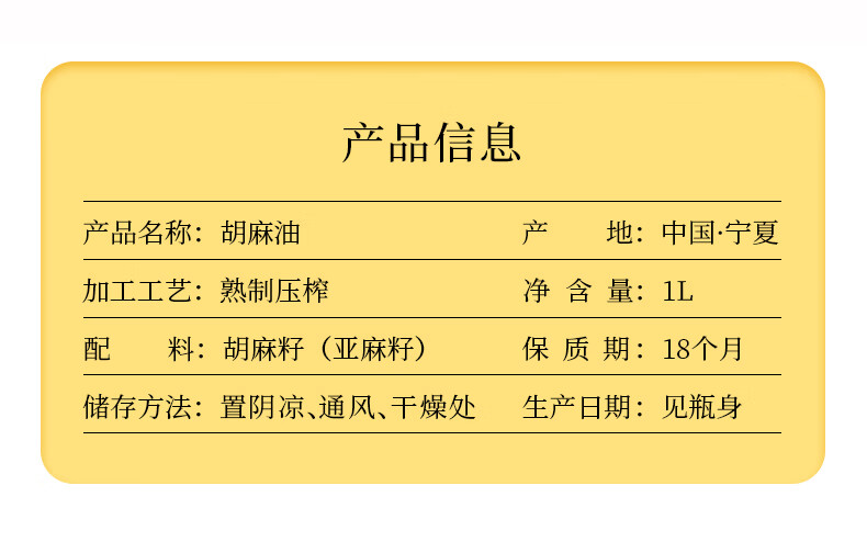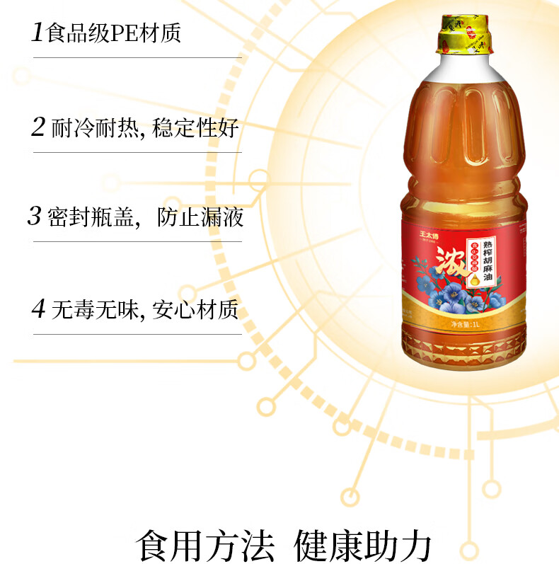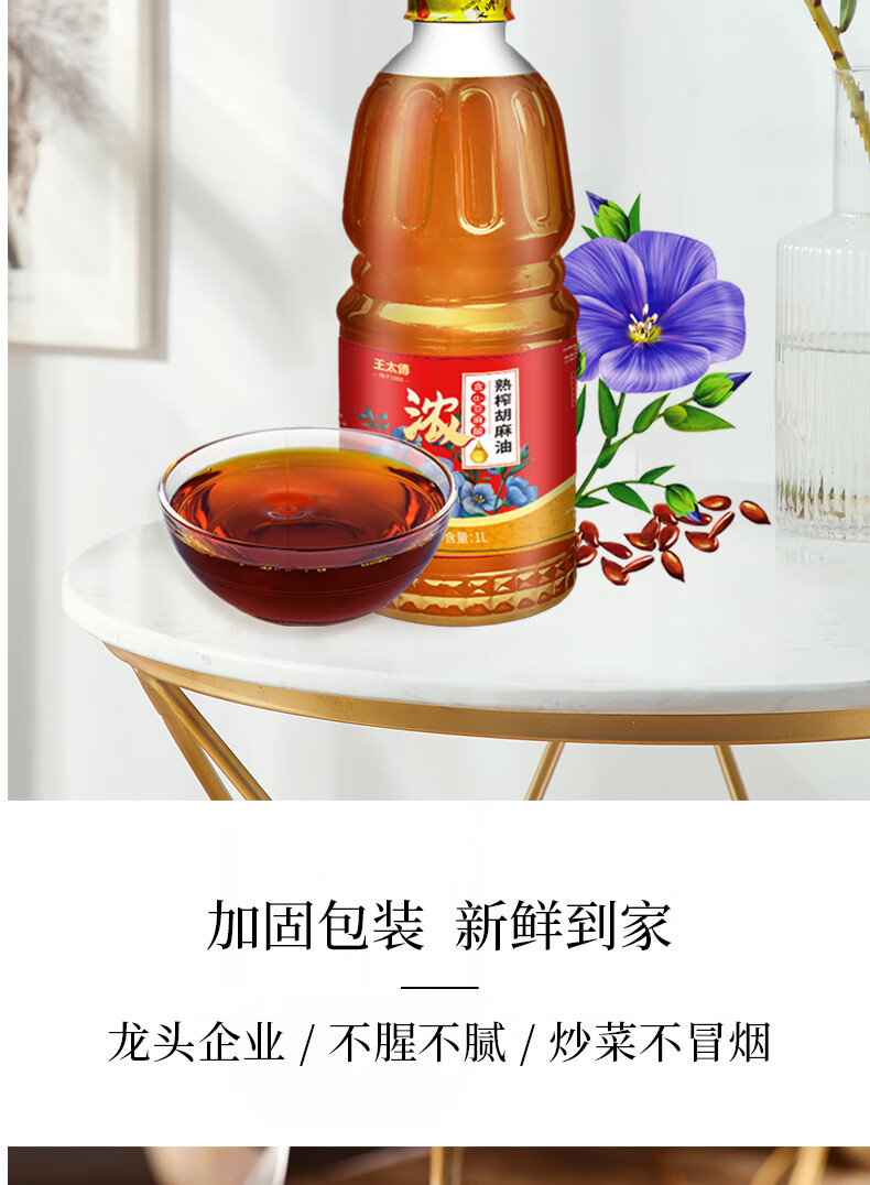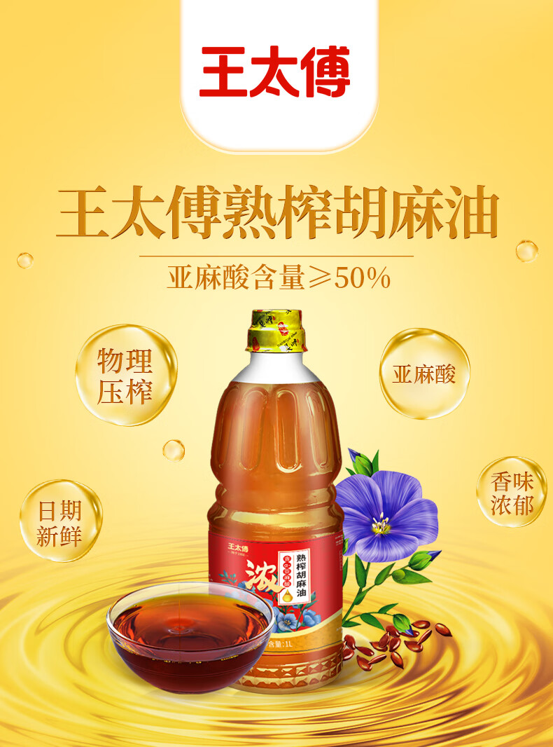 王太傅宁夏胡麻油食用油1L熟榨亚麻籽油正宗家庭小瓶装纯正品热炒
