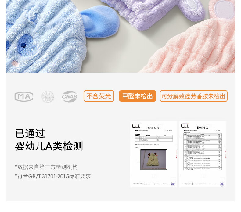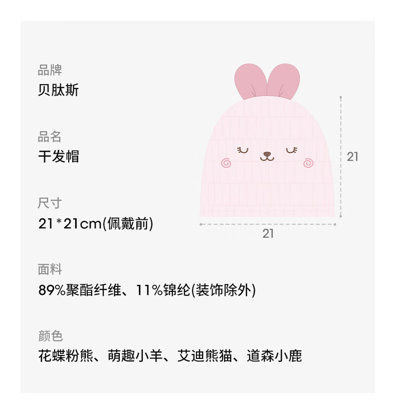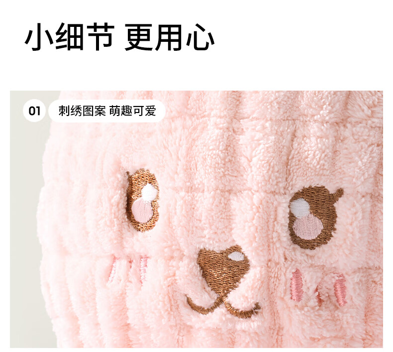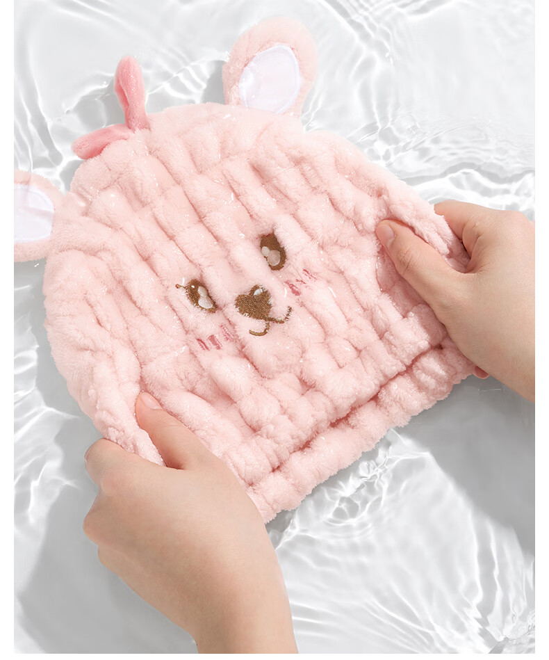 贝肽斯儿童毛巾干发帽女童可爱加厚吸水包头巾速干吸水毛巾新款浴帽 芭芭拉粉兔【柔软珊瑚绒-7A抗菌】-儿童款