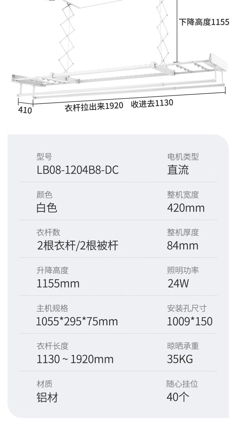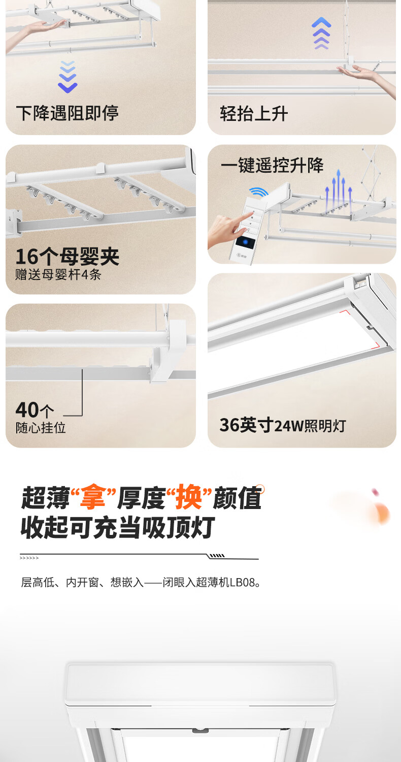 晾霸智能晾衣机LB08电动晾衣架阳台智能升降挂衣架隐藏式隐形晾衣杆