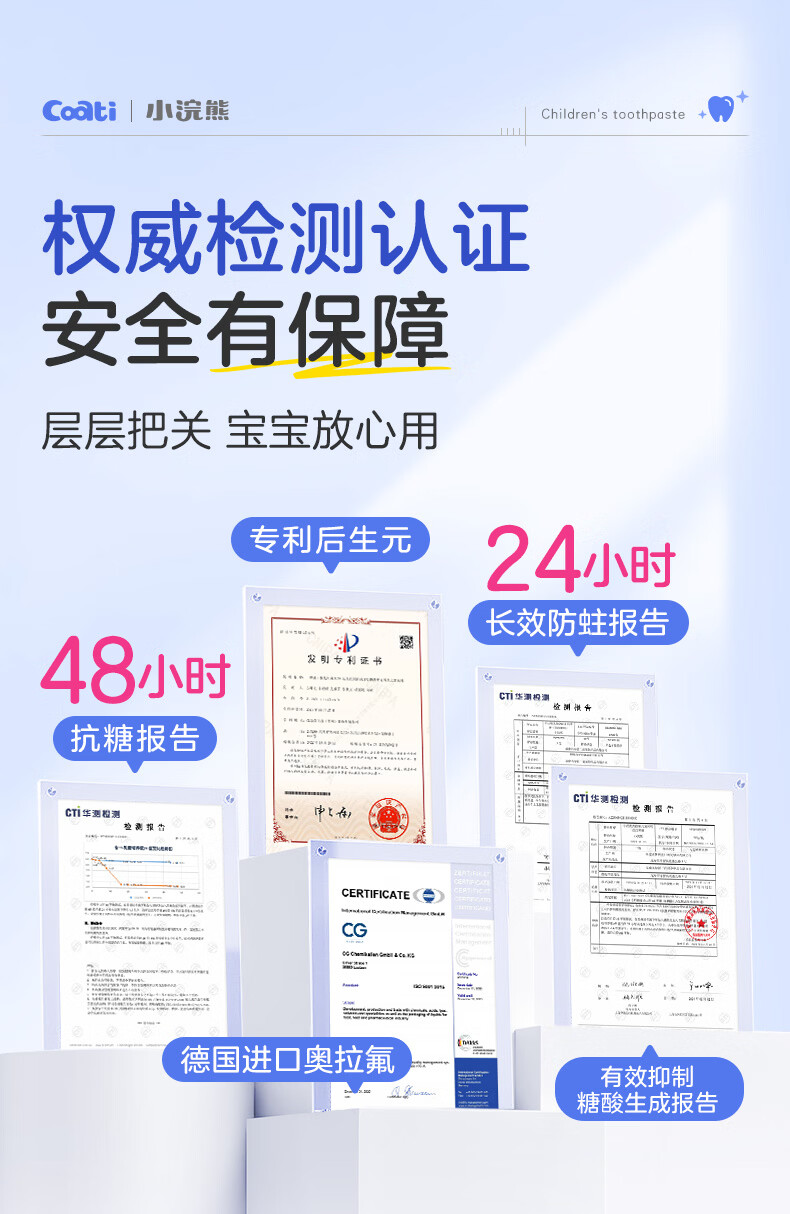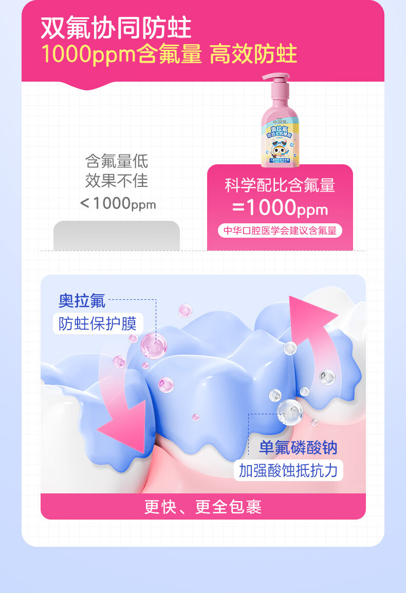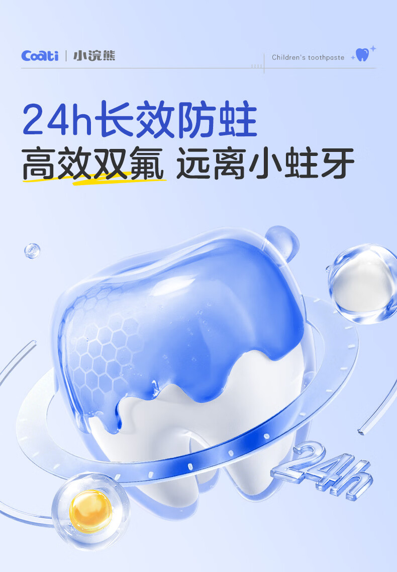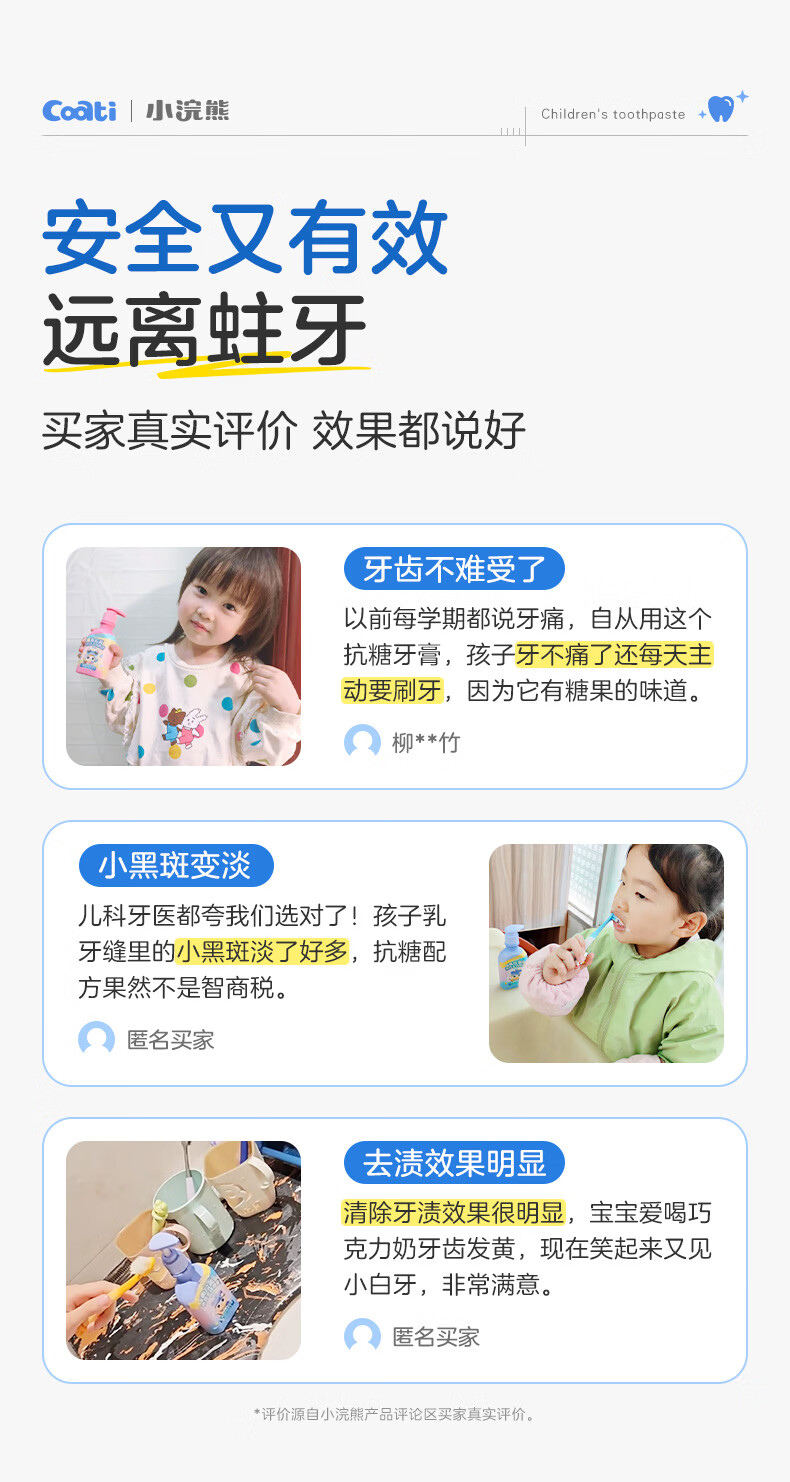 小浣熊儿童牙膏 宝宝抗糖酸牙膏 按压式3-6-12岁含氟防蛀健齿换牙期牙膏 (草莓+葡萄)防蛀益齿牙膏150g*2瓶