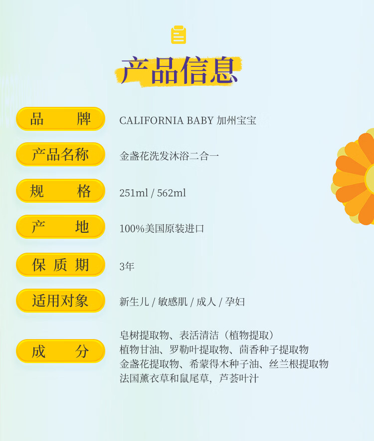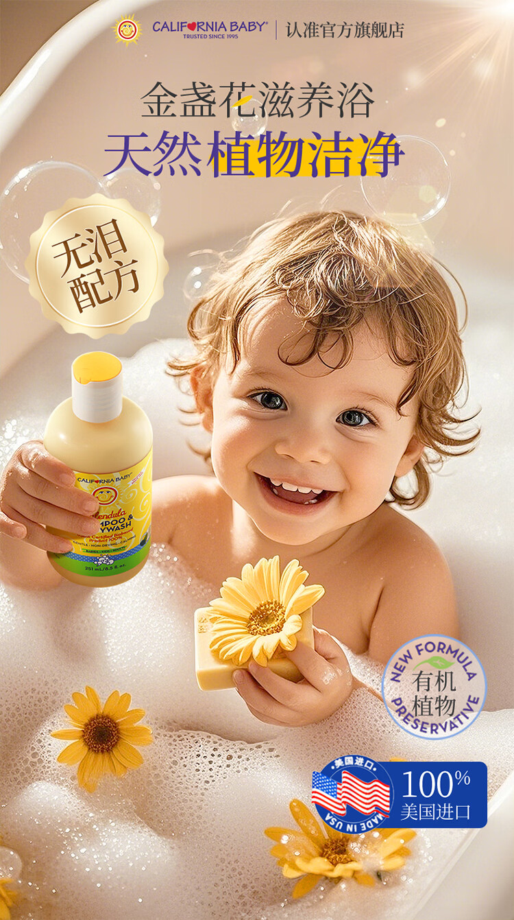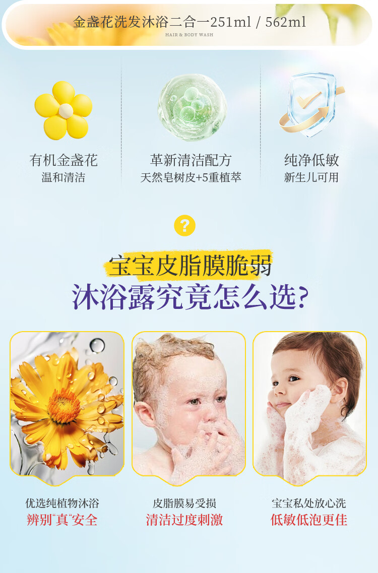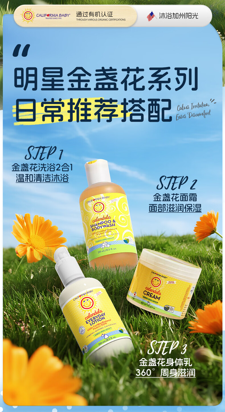 加州宝宝金盏花面霜滋润保湿儿童面霜婴儿润肤舒缓身体乳婴幼儿 【一瓶全家用】金盏花洗沐二合一562ml
