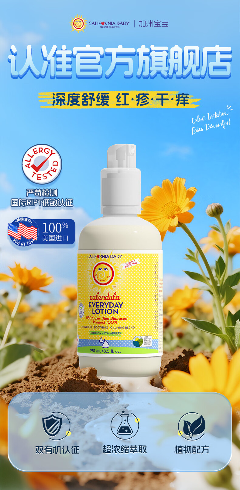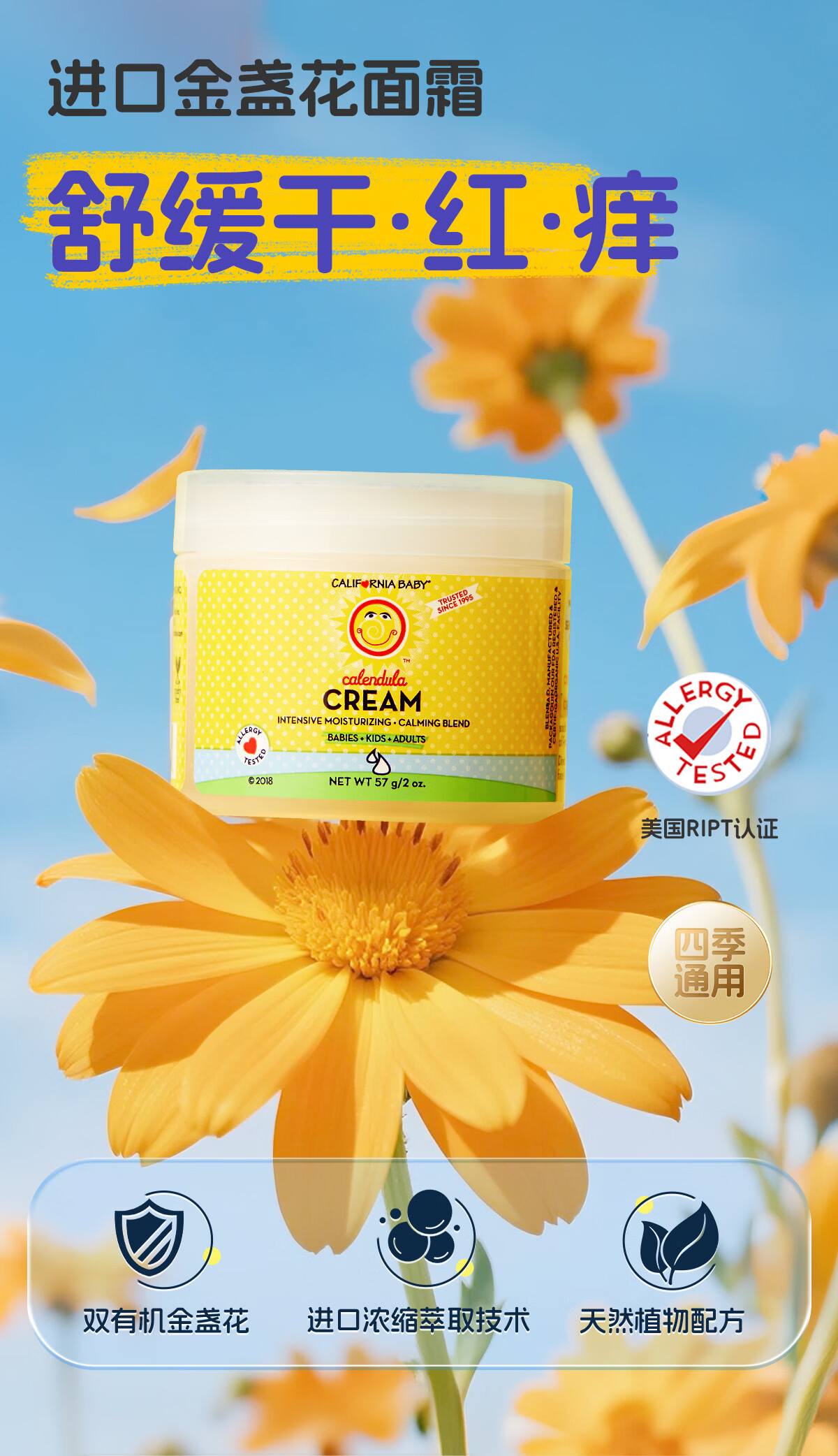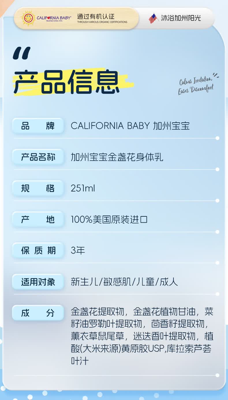 加州宝宝金盏花面霜滋润保湿儿童面霜婴儿润肤舒缓身体乳婴幼儿 【一瓶全家用】金盏花洗沐二合一562ml