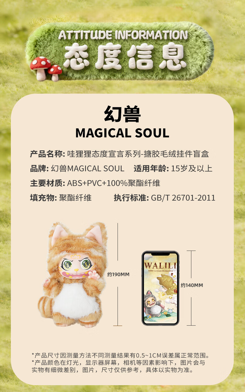MAGICAL SOUL 幻兽盲盒 哇狸狸毛绒公仔挂件 幻兽周边搪胶玩偶潮玩惊喜礼物陪伴娃娃 哇狸狸-单个盲盒(有概率出隐藏款)