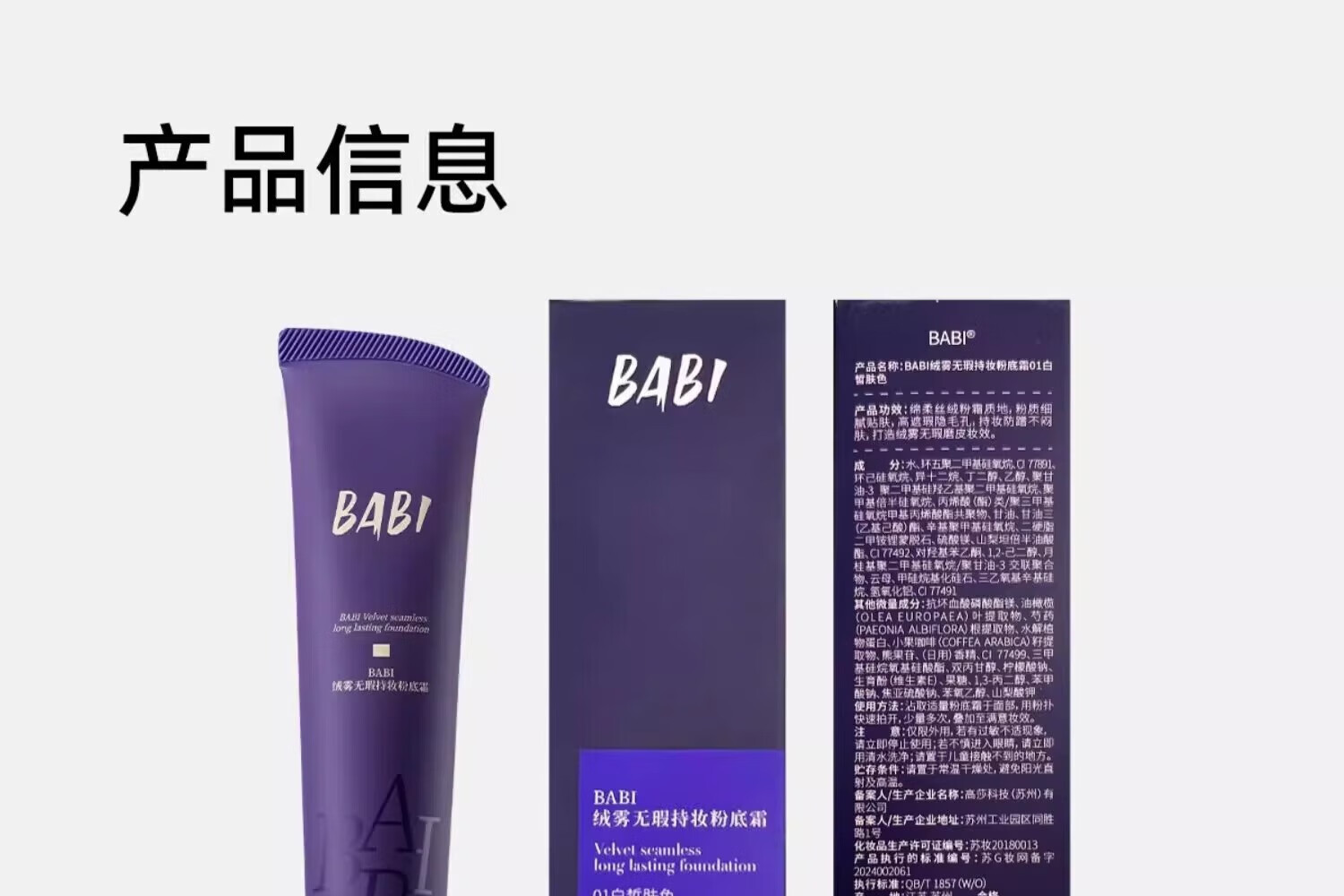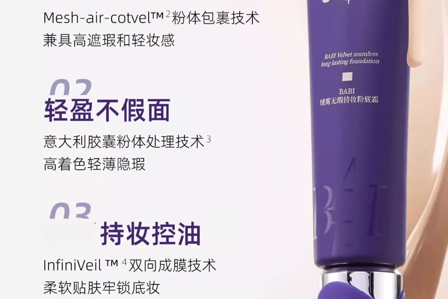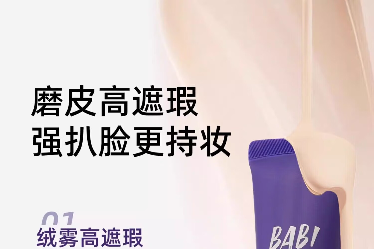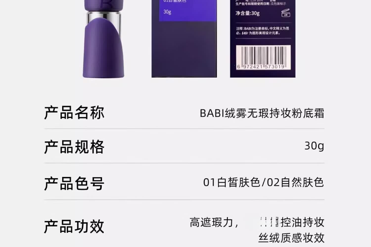 BABI粉底液绒雾无瑕持妆粉底霜油皮干皮轻薄水润持久遮瑕控油不易脱妆 【油皮适用】02自然肤色 30g