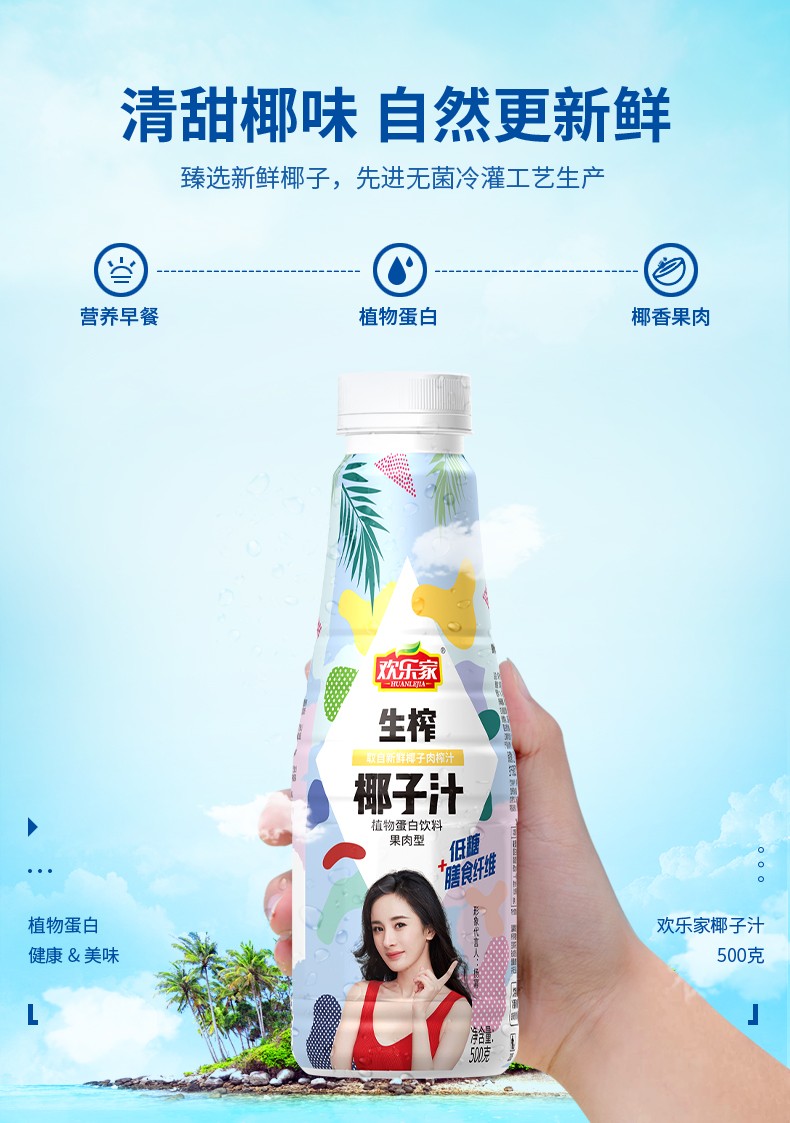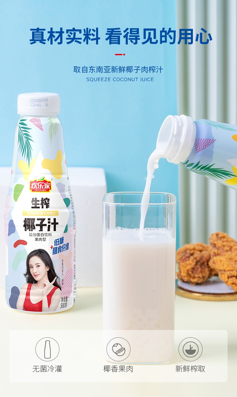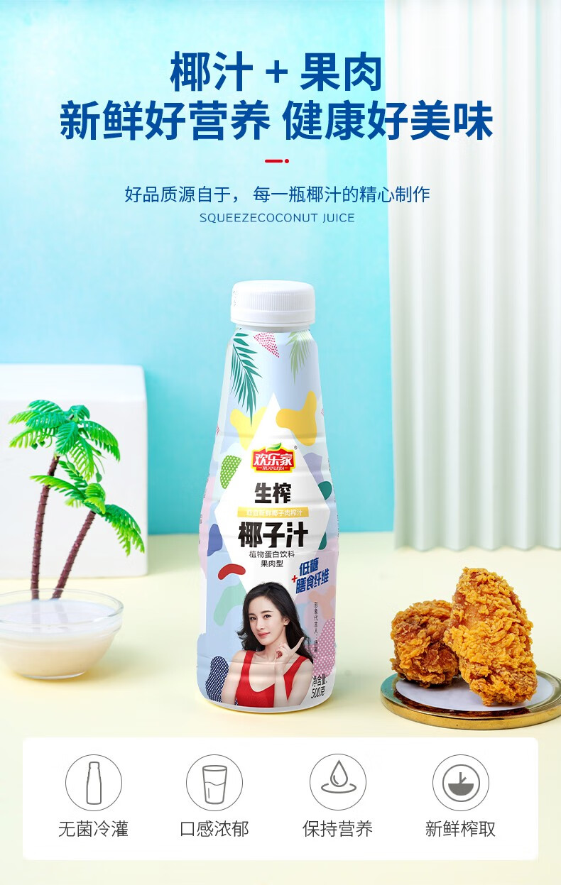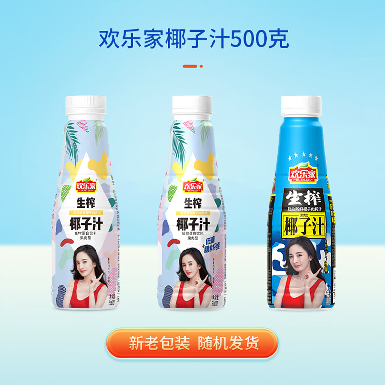 欢乐家 果肉椰子汁 果肉型植物蛋白饮品饮料 椰汁椰奶 椰子汁500g*5瓶