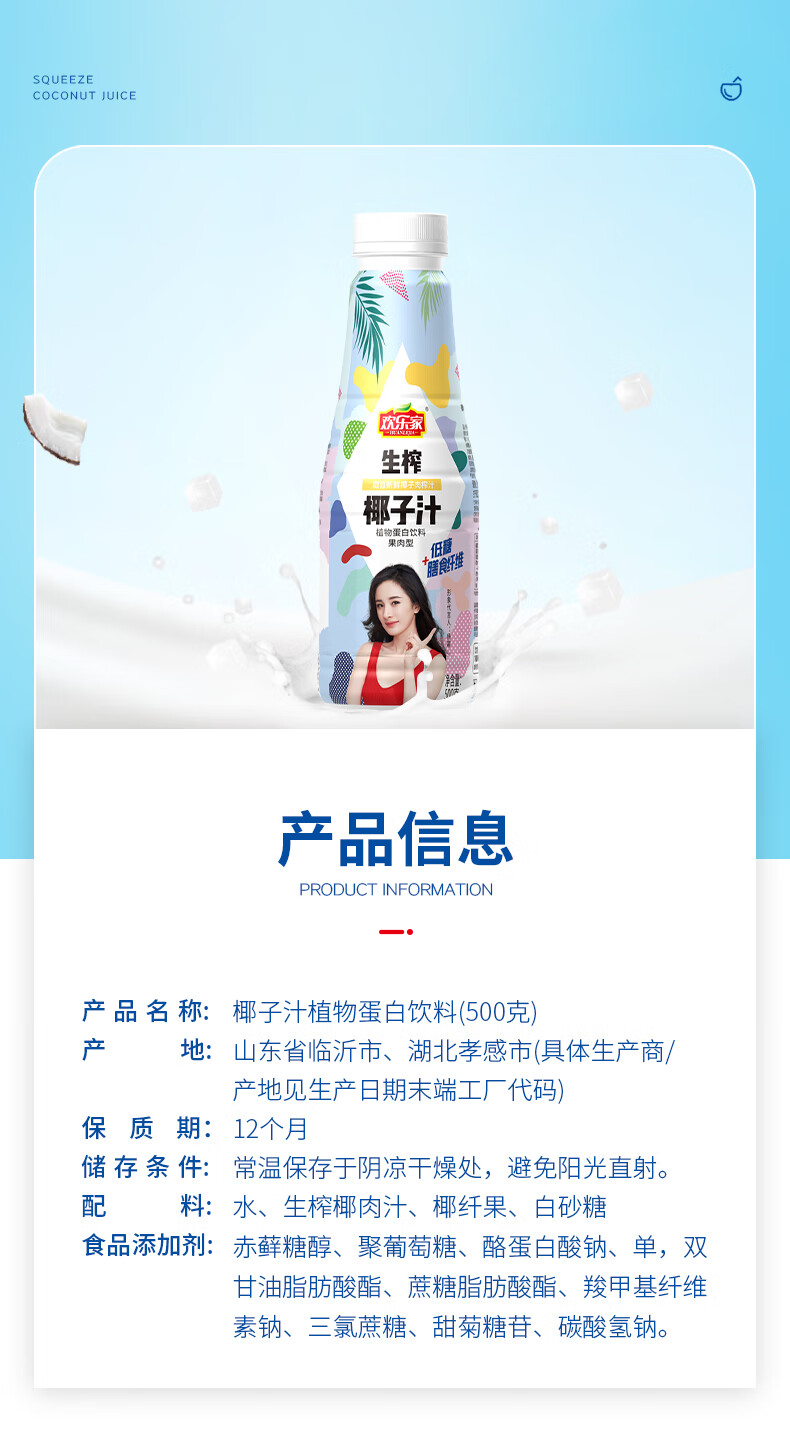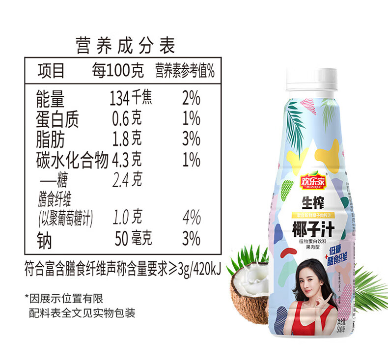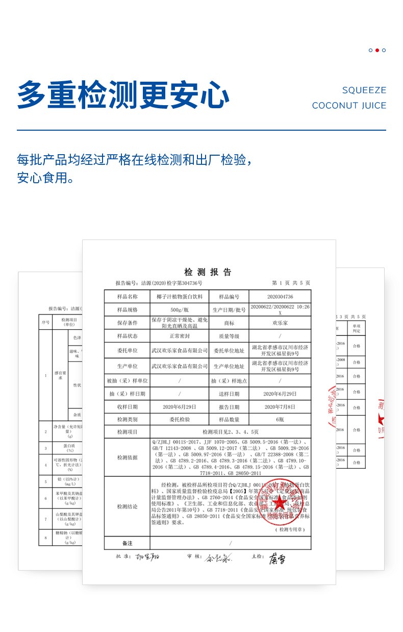 欢乐家 果肉椰子汁 果肉型植物蛋白饮品饮料 椰汁椰奶 椰子汁500g*5瓶