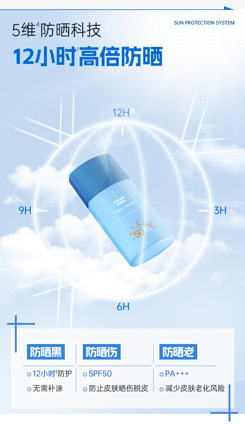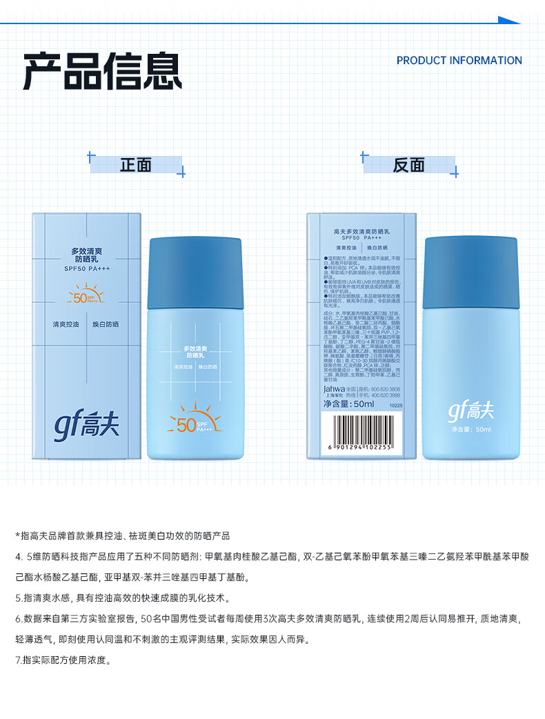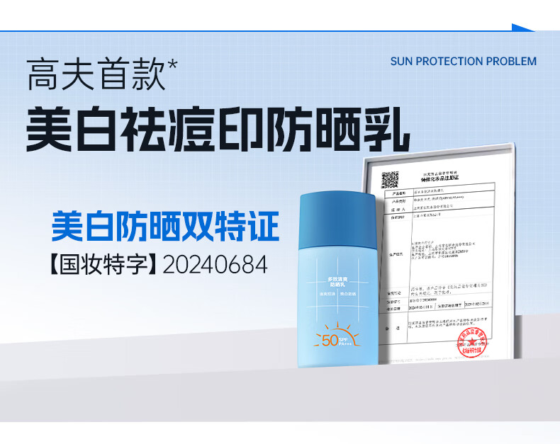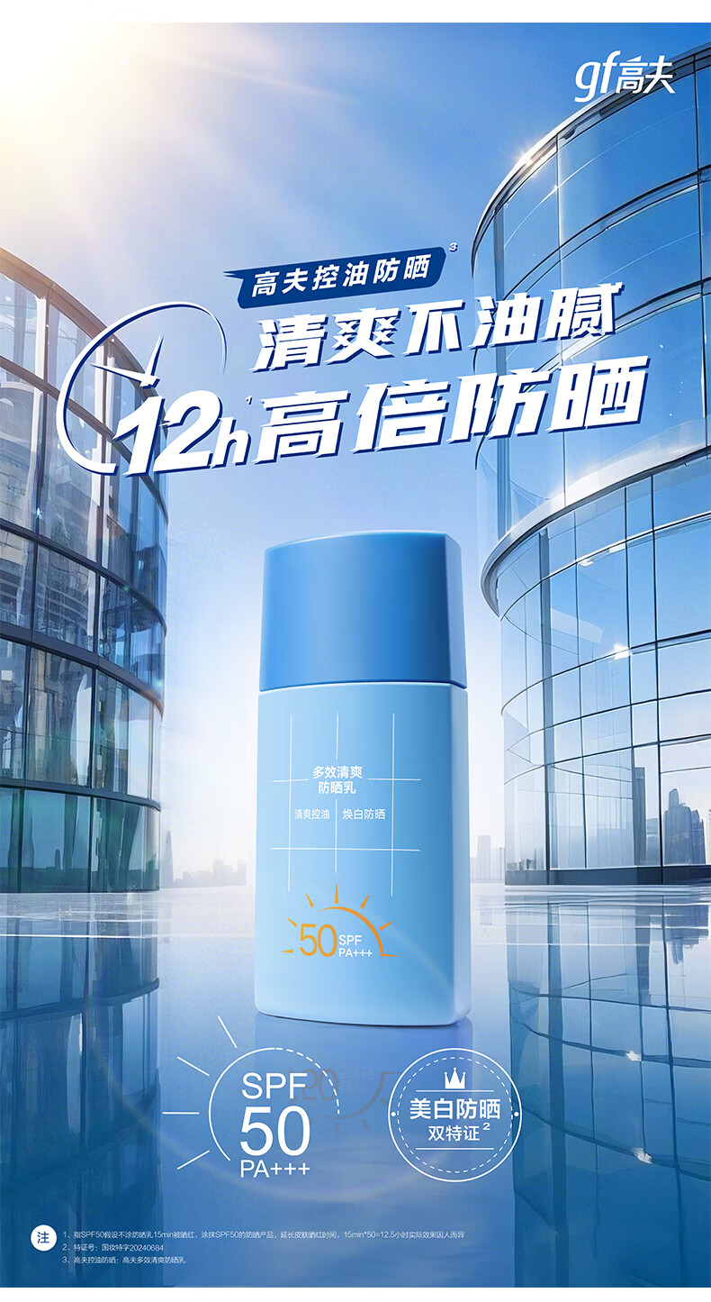 高夫【毕雯珺同款】小蓝盾多效清爽防晒霜50ml 全天控油美白男女通用