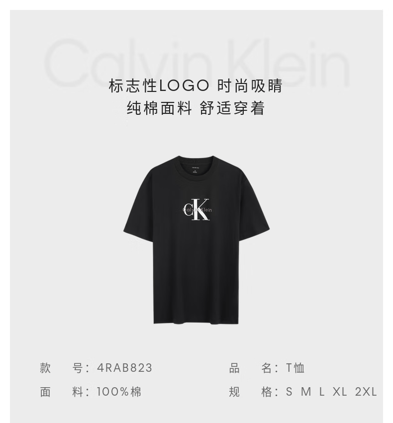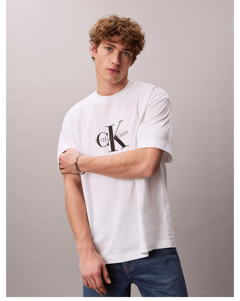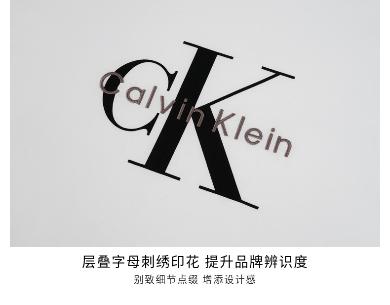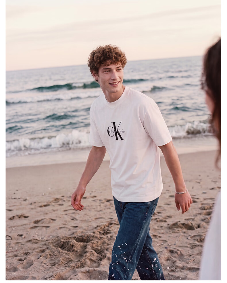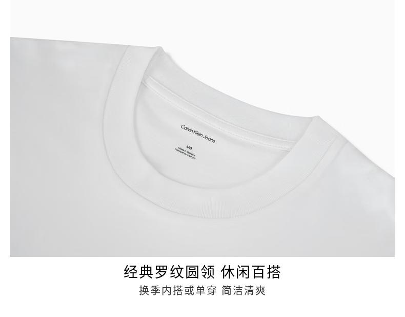 Calvin KleinJeans夏季男女情侣中性休闲通勤ck字母纯色纯棉宽松短袖T恤上衣 YAF-牛乳白 S