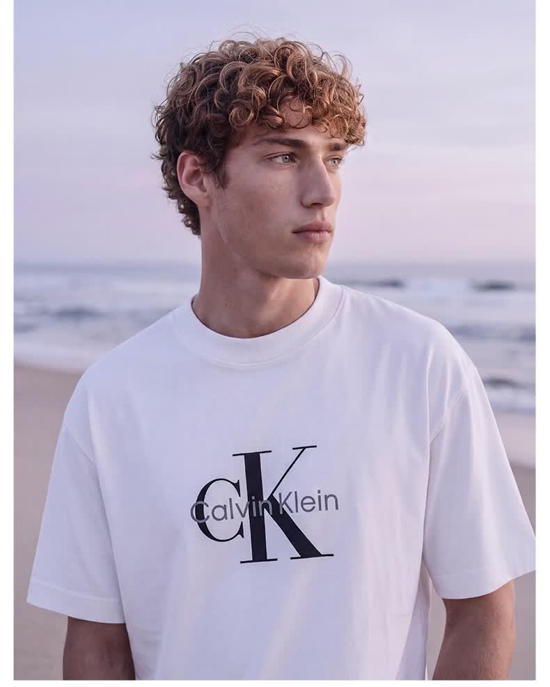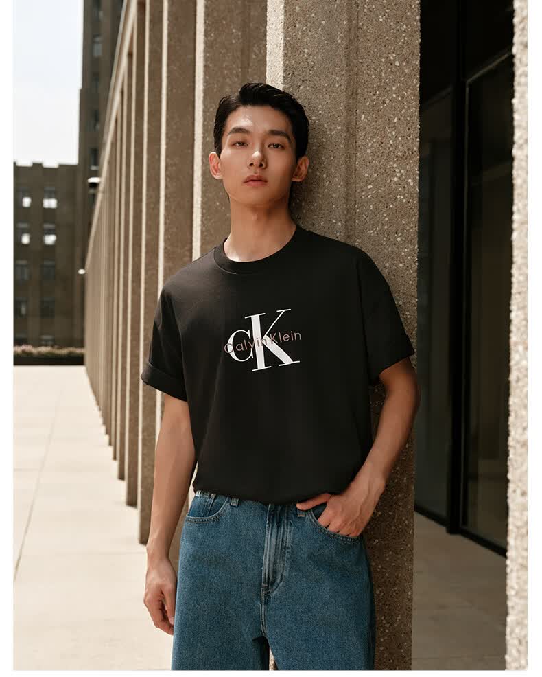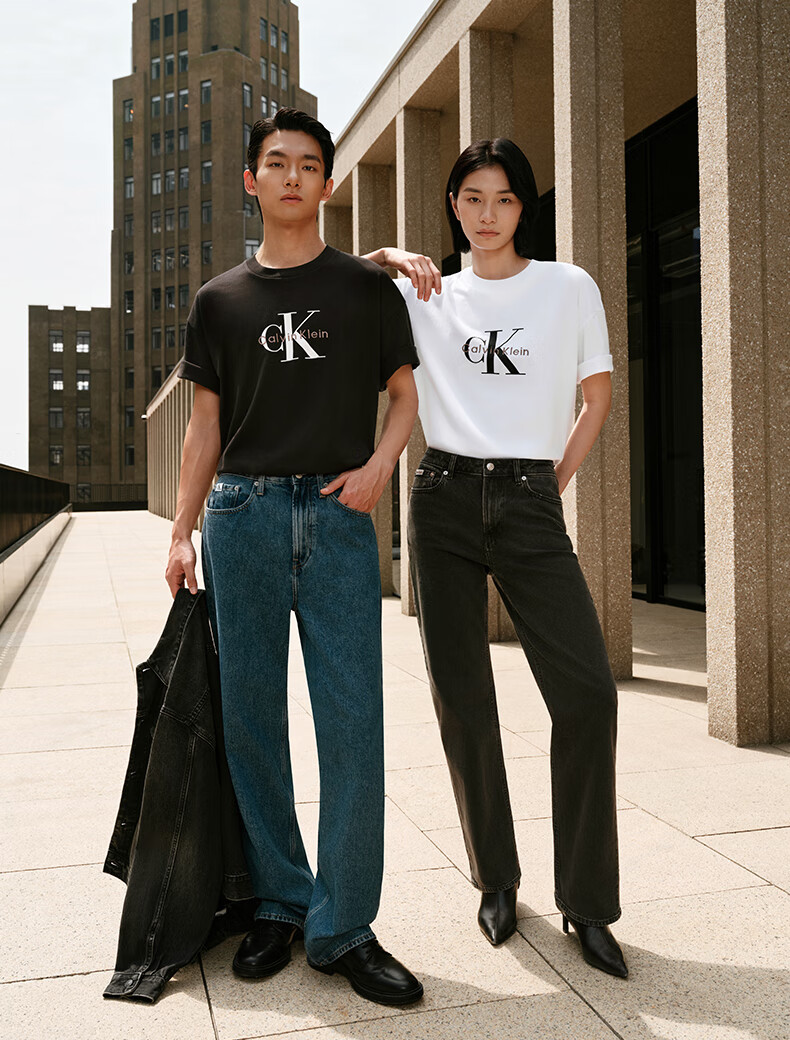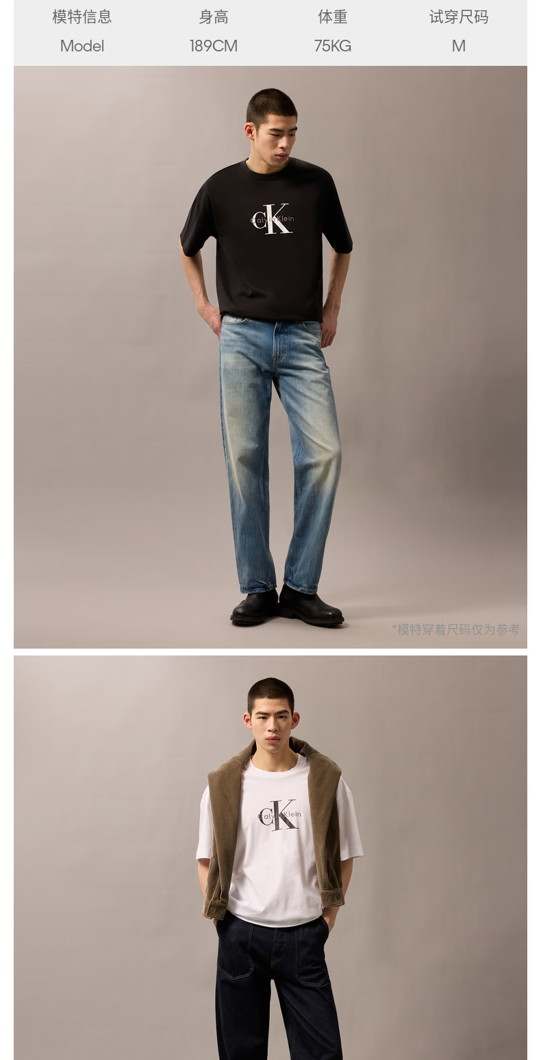 Calvin KleinJeans夏季男女情侣中性休闲通勤ck字母纯色纯棉宽松短袖T恤上衣 YAF-牛乳白 S