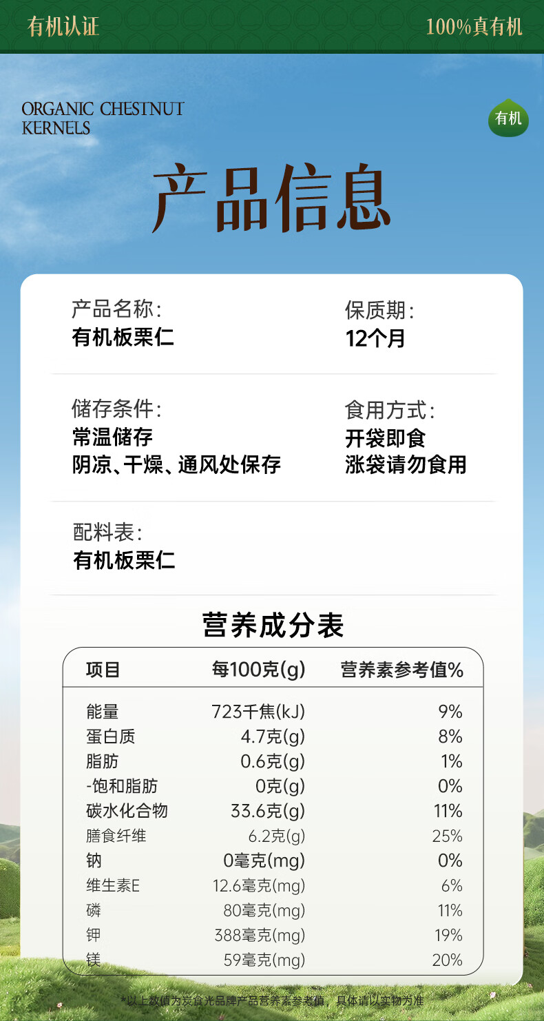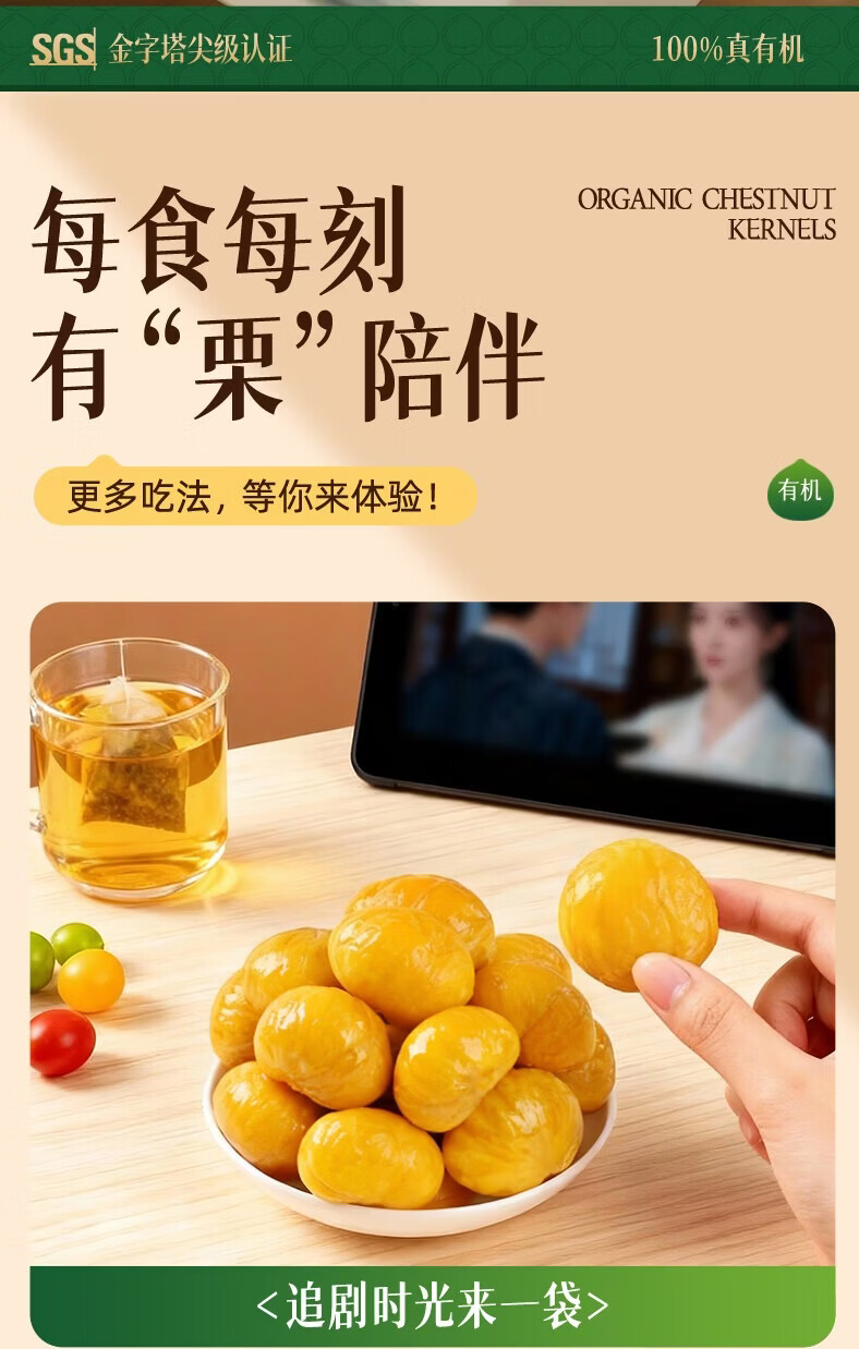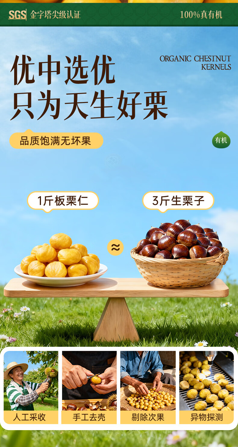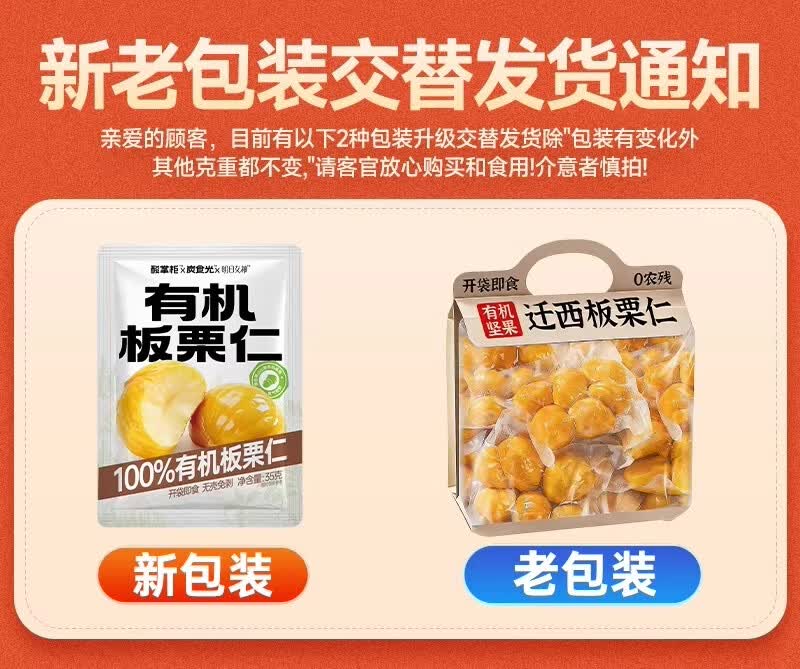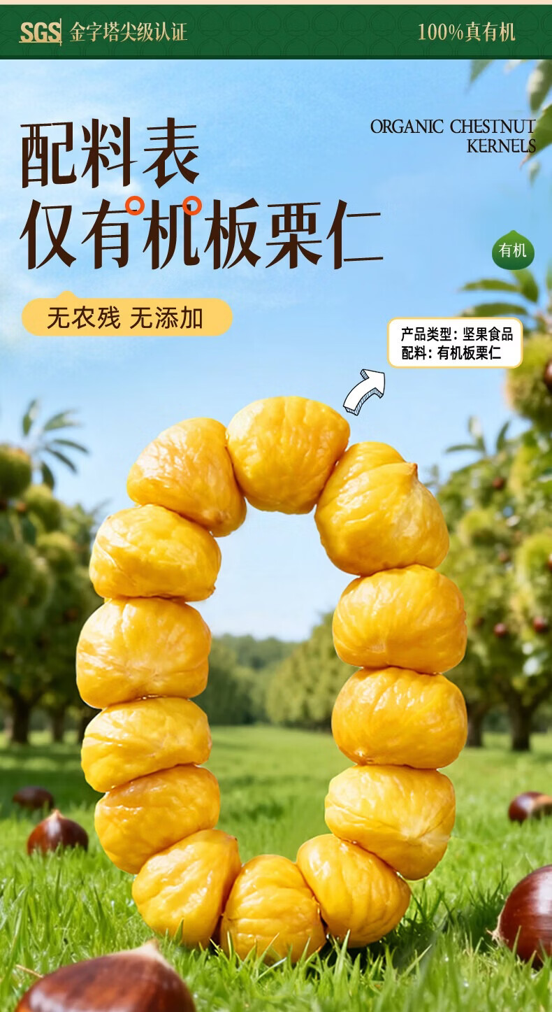 炭食光有机坚果板栗仁迁西特产即食独立小包装350g炒干货年货送礼零食品