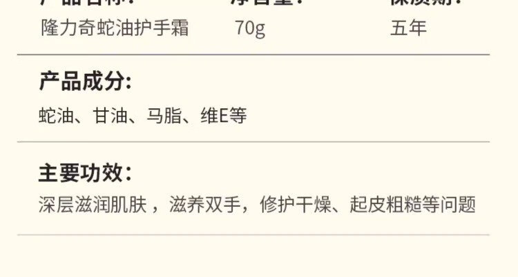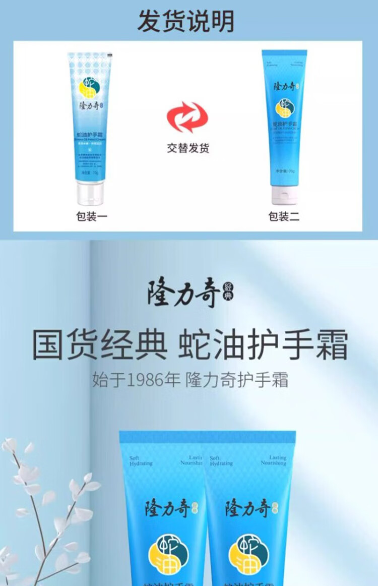 隆力奇蛇油护手霜护手防干防裂滋润保湿不油腻秋冬家用学生办公 蛇油护手霜70g*3支