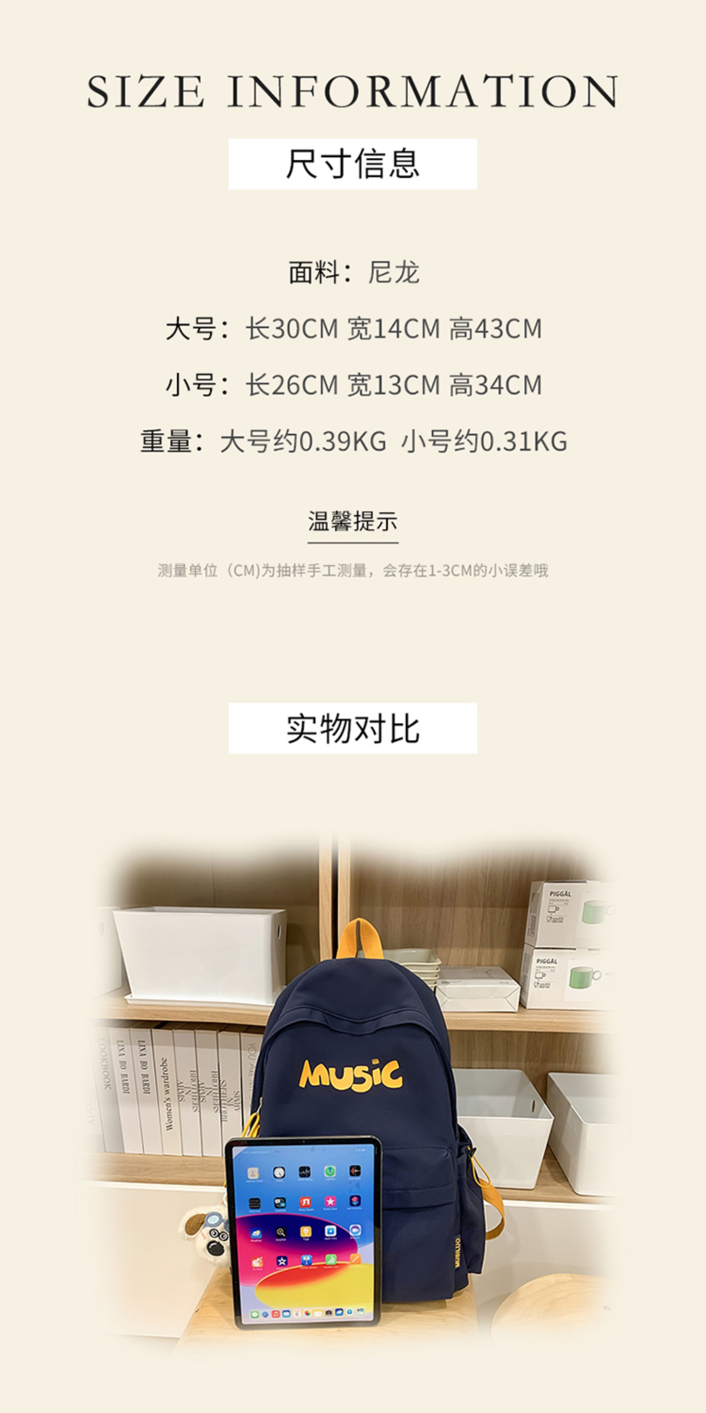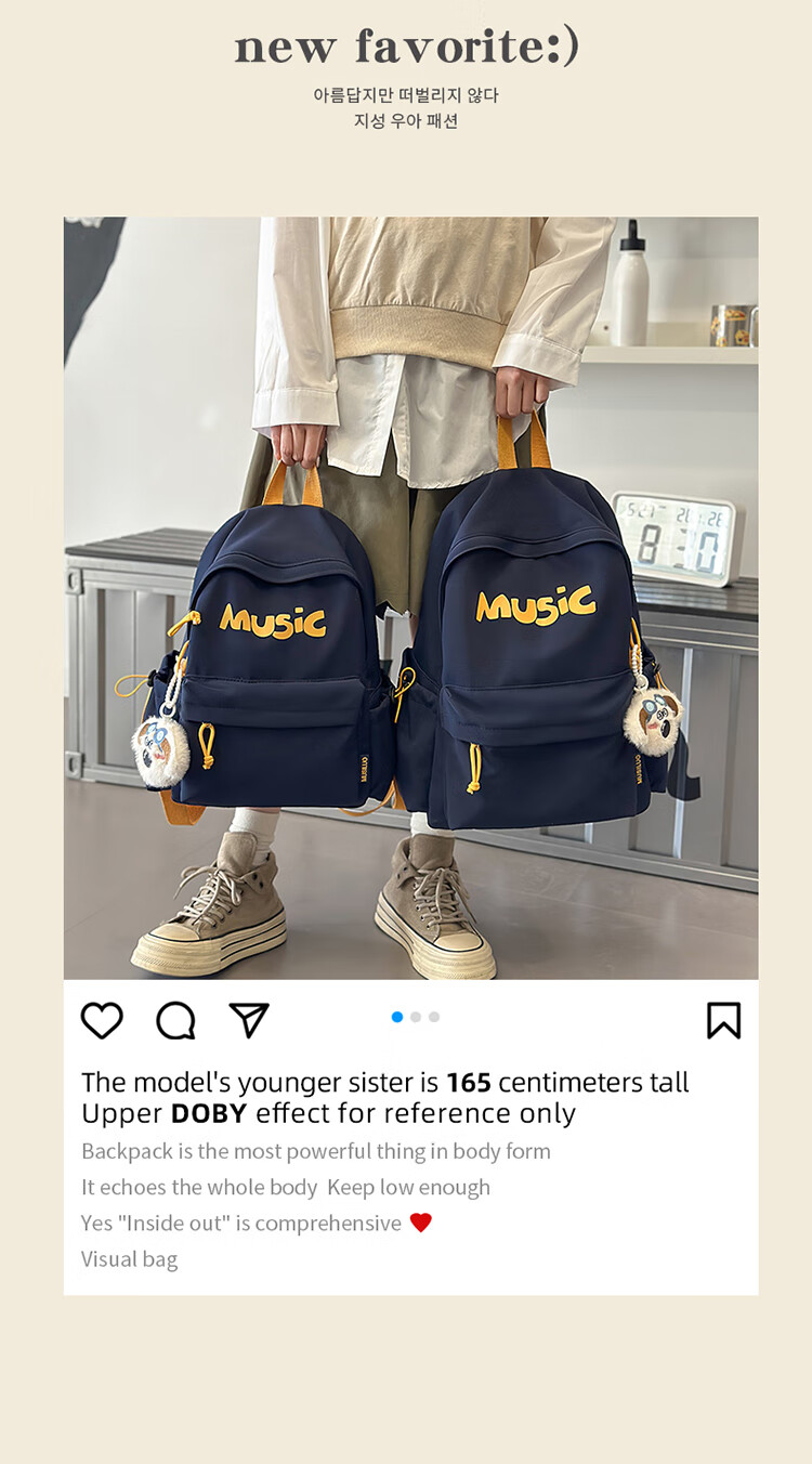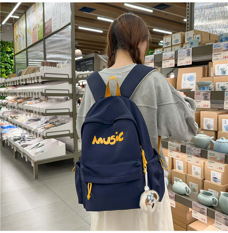 CLBD书包女高颜值ins韩版可爱初高中生双肩包大容量简约小学生背包潮 蓝色 大号