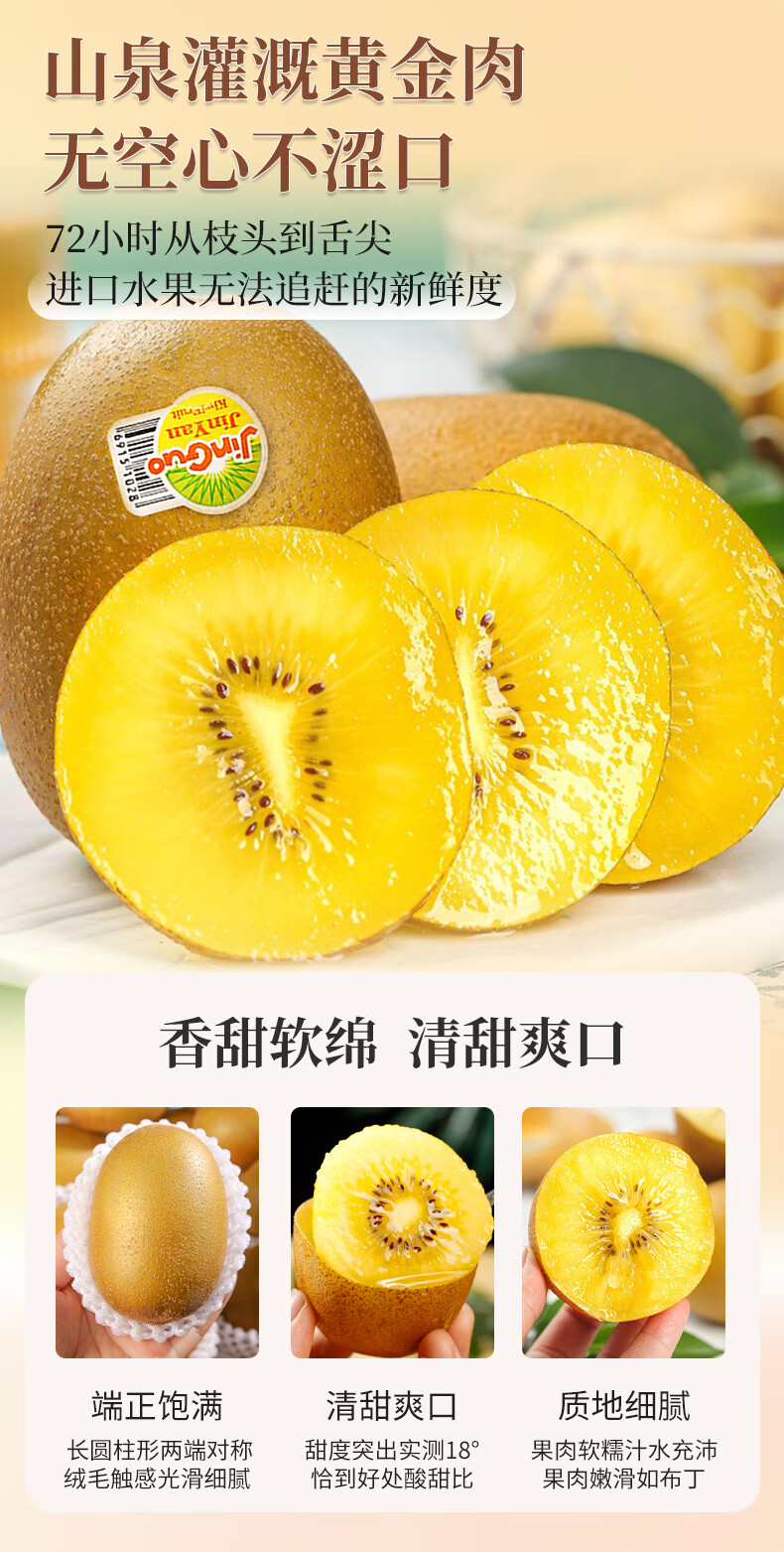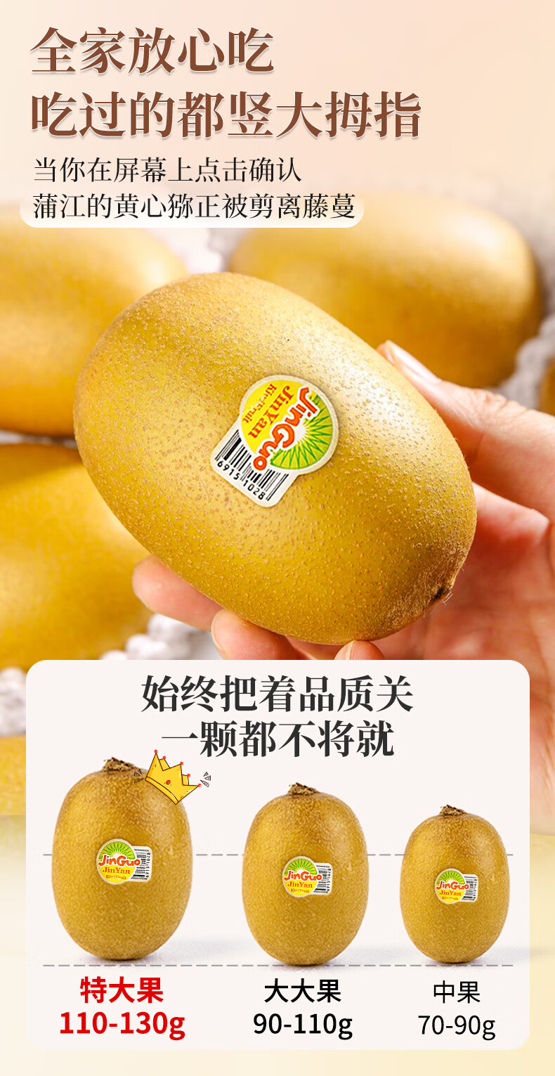 松林美果【顺丰速递】黄金奇异果阳光金果孕妇水果G3猕猴桃商端礼盒黄心 16枚特大果(130-150g)